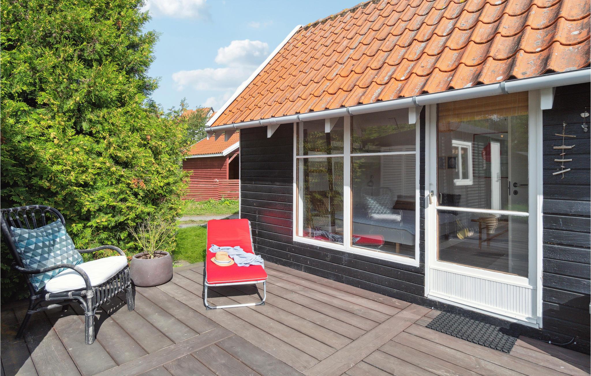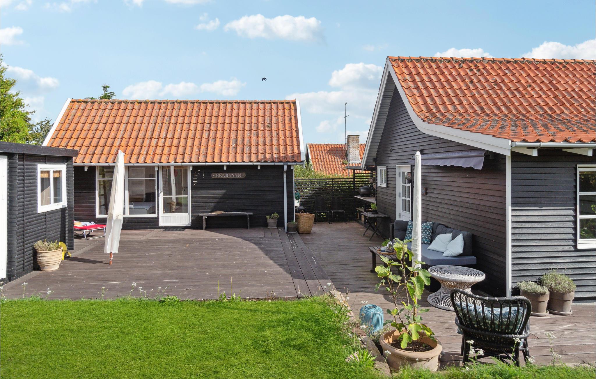 Dejligt feriehus i Melsted nær strand og hav med terrasse, brændeovn og shelter for en afslappende Bornholmerferie.