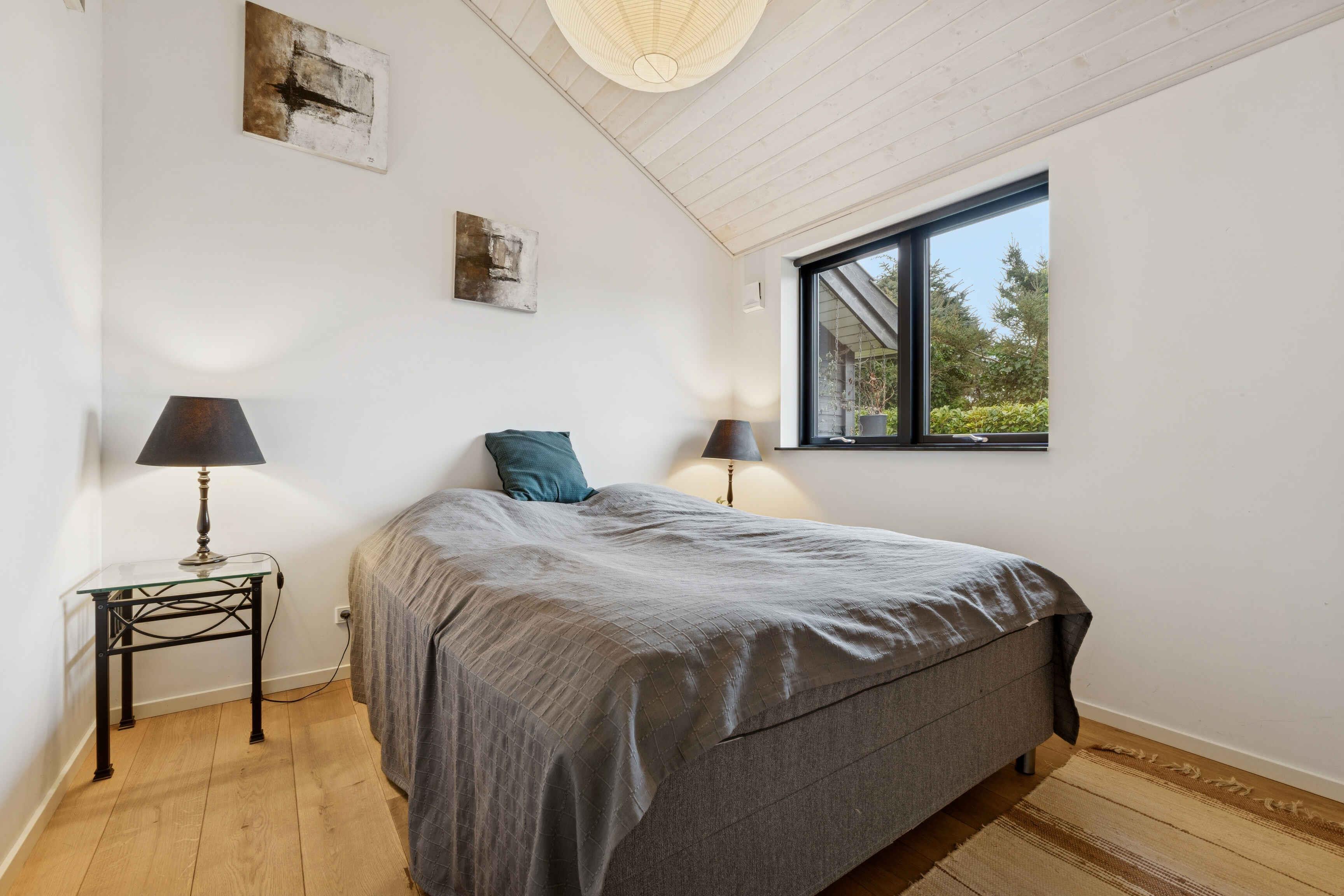 Dette nye og indbydende sommerhus på 135 m² byder på stilfuld indretning og god plads til afslapning. Huset har 2 soveværelser og 6 sovepladser og er velegnet til både familier og mindre grupper, der ønsker komfort og rolige rammer om ferien. Indretningen er moderne og gennemtænkt med fokus på lys, funktionalitet og atmosfære. Der er mulighed for ekstra seng og værelse til en tredje person, og morgenmad kan arrangeres efter aftale. Her er rammerne sat for et behageligt ophold med plads til både samvær og privatliv. Huset er privat beboet når det ikke udlejes, der skal forventes at ejerens ting er i huset men der er skabt plads til at gæsterne kan være der. Fra huset er der kun 200 meter til stranden, hvor en sandstrand med klart vand venter. Den korte afstand gør det nemt at tage spontane ture til vandet, uanset om dagen byder på badning, gåture langs kysten eller afslapning i solen. Området omkring sommerhuset er særligt attraktivt for feriegæster, der ønsker nærhed til både strand og byliv. Stranden er børnevenlig og indbydende med god plads og rolige omgivelser. Vandets klarhed og sandbunden gør området ideelt til badeferie og afslapning ved kysten. Kun 500 meter fra huset ligger butikker og indkøbsmuligheder, hvilket gør hverdagen nem under ferien. Kombinationen af kort afstand til strand, indkøb og rolige omgivelser giver stor fleksibilitet og gør området velegnet til både korte ophold og længere ferier. Sommerhuset er et oplagt valg for jer, der ønsker et nyt, velindrettet hus tæt på strand og faciliteter – med gode muligheder for både ro, oplevelser og komfort. Obs, udlejes ikke til erhversmæssigt brug.