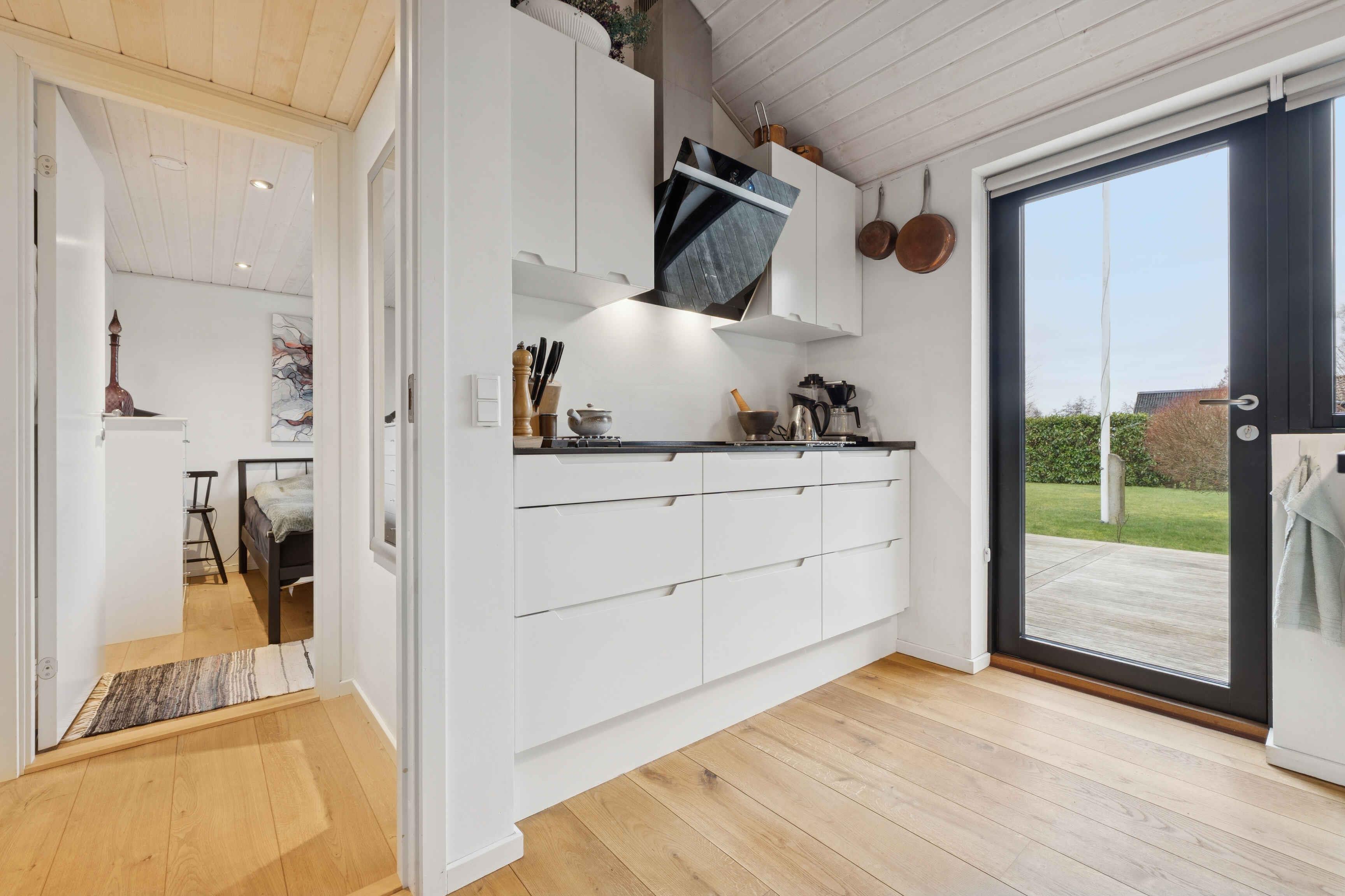 Nyt og stilfuldt sommerhus tæt på sandstrand og byliv i Middelfart med plads til hele familien.