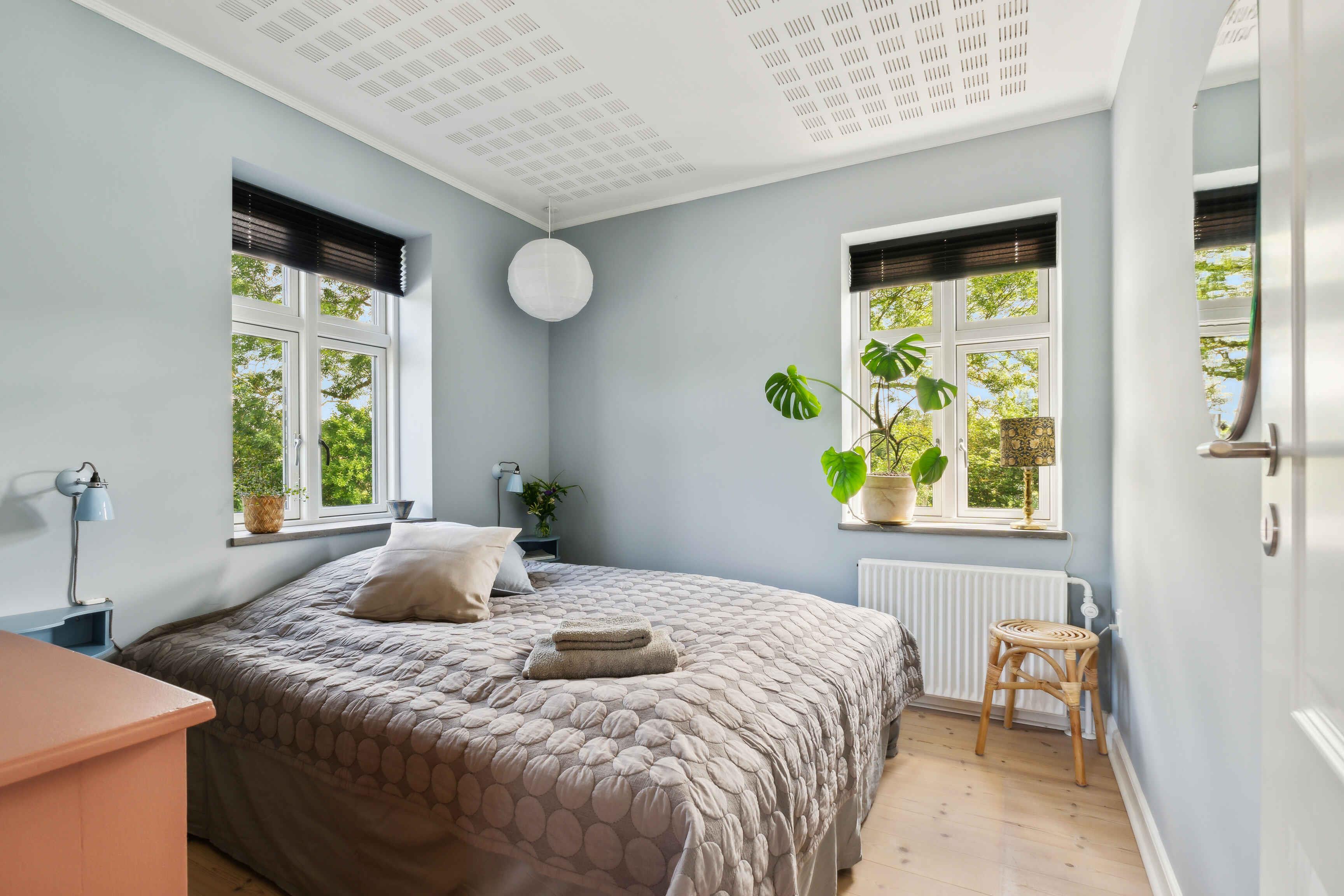 Velkommen til vores smukke, klassiske villa, Bimosegaard. Denne charmerende gule villa ligger på kanten mellem landsby og skovbryn med vild natur. Husets 144 kvadratmeter indbyder til ren hygge, ro og afslapning, ideelt til en nærværende ferie med familie og venner. Grunden er stor og haven er indhegnet, så du kan lade småbørn og eventuelle hunde lege frit under æbletræerne. Vi har fokus på at hjælpe og bevare Danmarks natur og biodiversitet, til gengæld får vi dufte, lyde og oplevelser til glæde for både krop og sind. Til daglig bruges Bimosegaard, som ejes af Stresslæge.dk, til retreats for stressramte. Huset er derfor indrettet med henblik på at være et frirum for nervesystemet. Her kan man koble af fra hverdagen, sidde med sig selv og være i stilheden. Her er ingen tv, dog gratis WIFI – grib muligheden for at få en pause fra det digitale og lad naturen fylde. Huset er rummeligt og velindrettet med plads til op mod 10 overnattende gæster, hvilket gør det perfekt til større familier eller vennepar, der ønsker at tilbringe kvalitetstid sammen - og hver for sig. De store vinduer i huset sikrer et fantastisk lysindfald og giver en flot udsigt til de naturskønne omgivelser. Indvendigt er farver og møbler smukt afstemt med hjælp fra indretningsdesigner, med ro og harmoni for øje. Fordelt på 2 etager, finder I 5 soveværelser med dobbeltsenge. Der er både toilet med bad, samt møblerede træterrasser med udsigt over haven på begge etager. I huset finder I et veludstyret køkken med spiseplads til 5 personer. Dertil bord i stuen, som foldes ud ved slagbænkene og med et par stole for enden. Der er ekstra stole i kælderen til bordet i stuen, hvor der også er 2 trip-trap børnestole til småbørn (dog ikke spædbørns indsats). Derudover er der en weekendseng med madras. Stuen er indrettet med daybeds og puffer, som skaber en varm og indbydende atmosfære til gode samtaler og nærværende aftener med dem I holder af. I gårdhaven findes endnu en terrasse, udstyret med havemøbler og med mulighed for at benytte husets grill. Her kan grillaftener og et godt glas vin nydes, imens solnedgangslyset sejler ind over haven. Der er desuden flere mindre hyggekroge rundt omkring på matriklen, så uanset hvilken tid på dagen, kan du få kølende skygge eller mærke solens stråler. Fra gårdparkeringen, kan du ad en lille sti igennem det gamle stengærde finde vej til udlejers private vilde marker og enge, hvor I er velkomne til at gå ture og nyde naturen. Her kan du se rådyrene i de tidlige morgen- og aftentimer eller gæs, der holder middagshvil - foruden mange andre dyr, der nyder godt af den blandede fauna. Der er ca. 200 meter til den nærliggende strand, som indbyder til bade- og strandaktiviteter for store såvel som små. De omkringliggende områder byder desuden på smukke vandrestier og gode cykelruter for de eventyrlystne. Book jeres ophold i dag og se frem til en mindeværdig ferie i vores fantastiske omgivelser! Obs, udlejes ikke til erhversmæssigt brug.