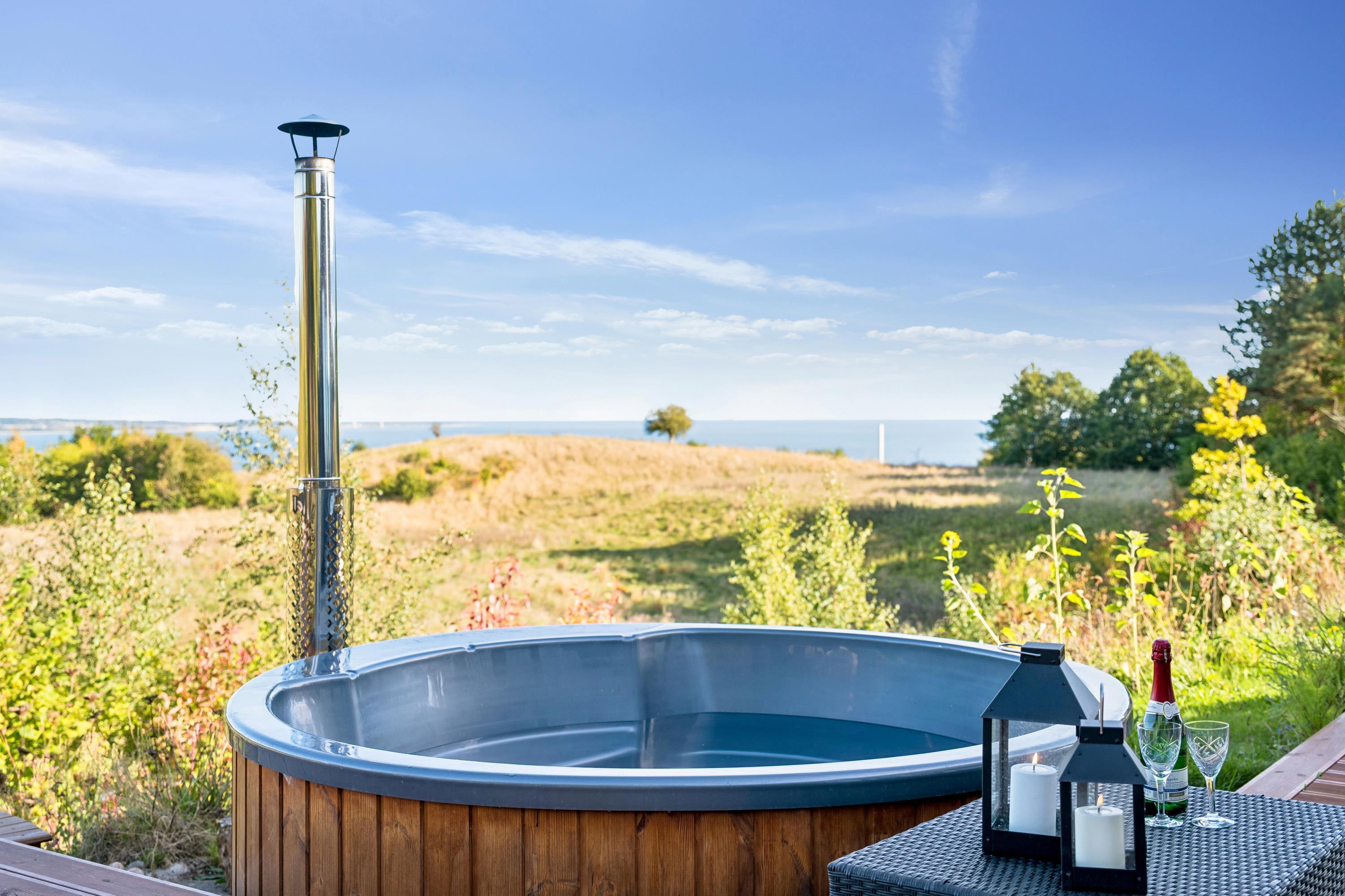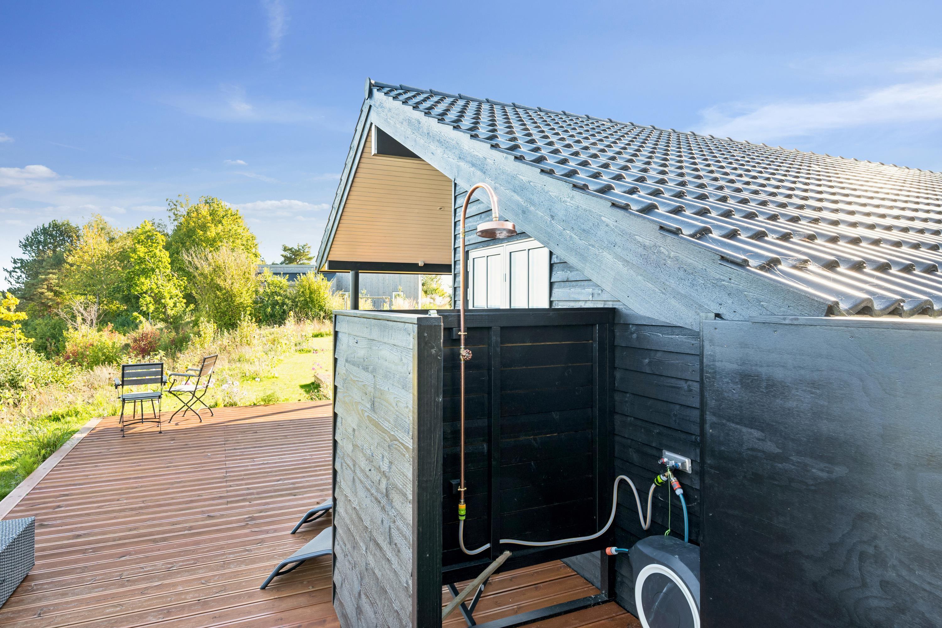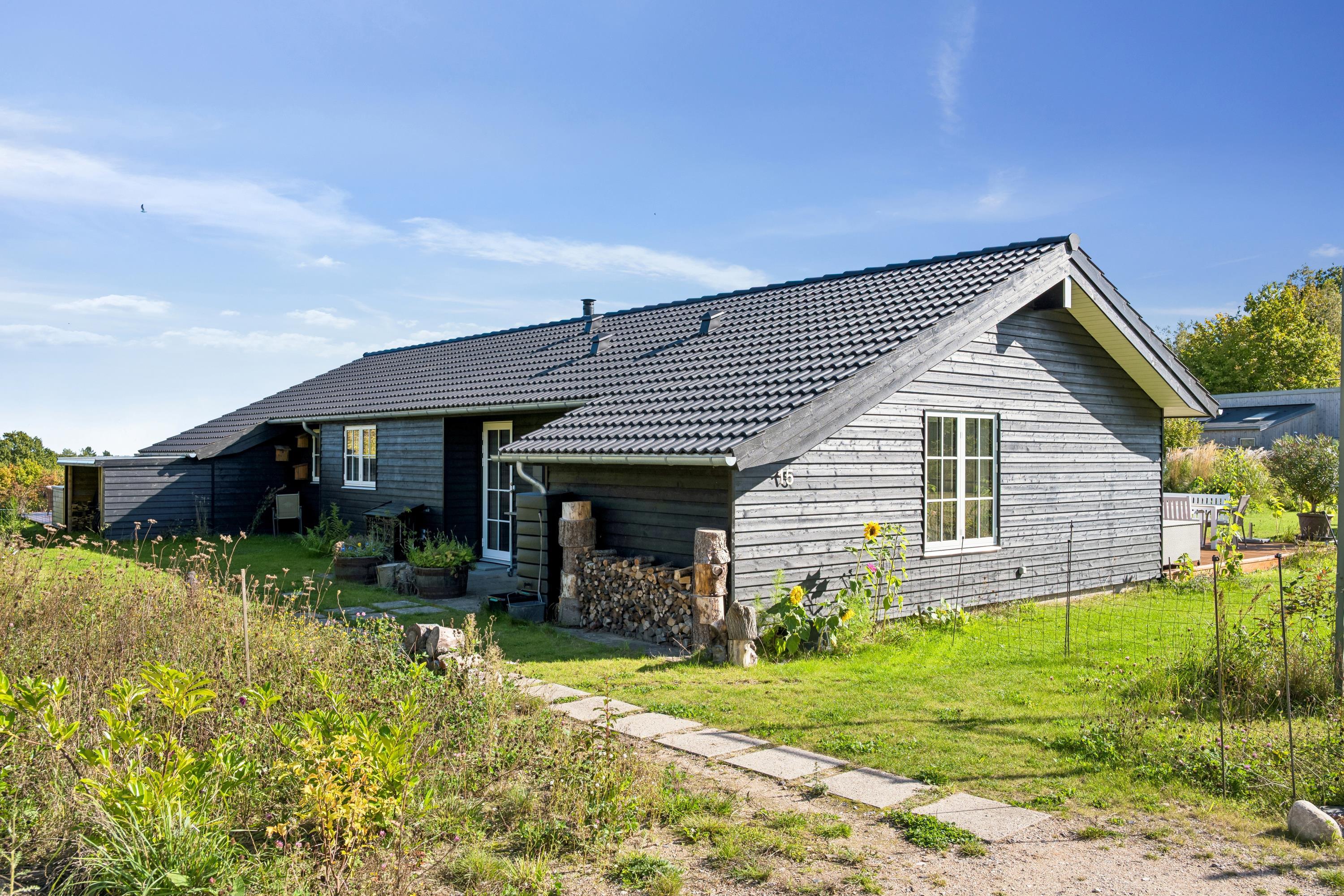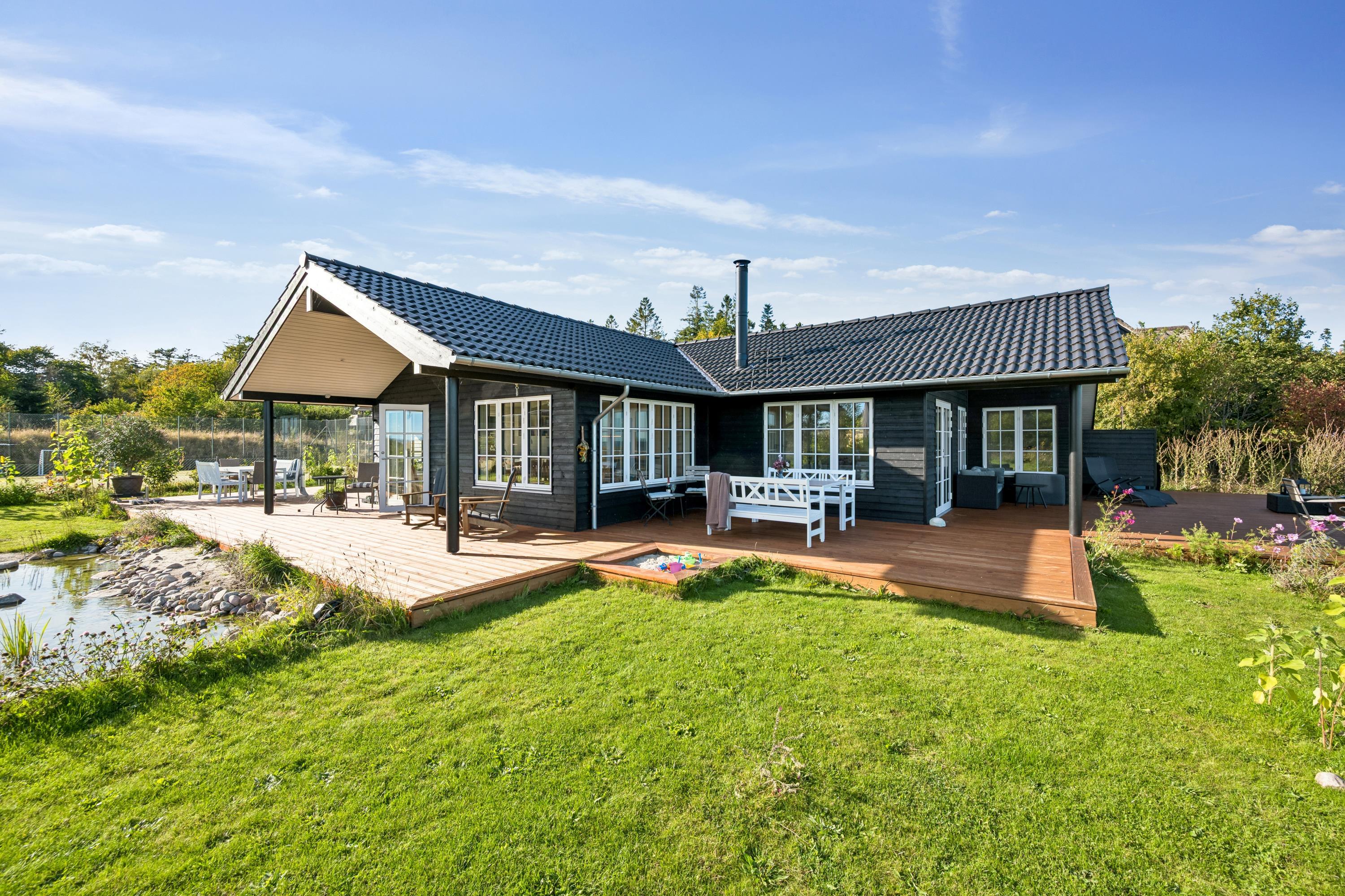 Udenfor venter et sandt ferieparadis. Grunden er stor og varieret – med både smukt anlagte områder og mere vild natur. Her er masser af plads til leg, boldspil og udforskning. Børnene kan glæde sig til sandkasse, gynge og rutsjebane, mens de voksne kan samles ved bålpladsen til snobrød eller skumfiduser på en lun sommeraften. Et helt særligt højdepunkt er den store, privatindhegnede tennisbane, hvor både begyndere og øvede kan udfordre hinanden. Efter en aktiv dag kan I sænke jer ned i det varme vildmarksbad, nyde roen og lade blikket glide ud over solnedgangen ved Fuglsø Vig.