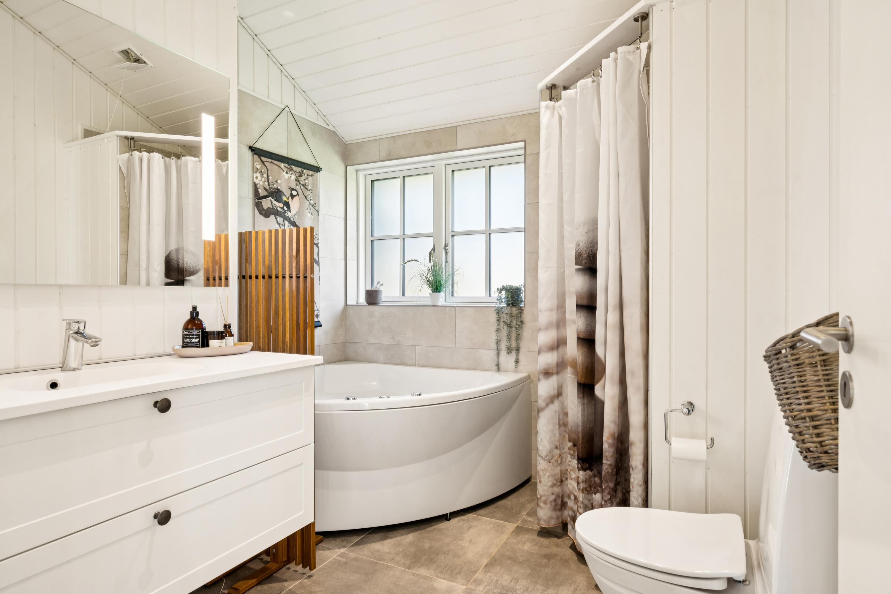 Der er fire rummelige soveværelser, alle med dobbeltsenge. To flotte badeværelser gør huset oplagt til flere familier, og i det ene finder I et spabad, perfekt til afslapning efter en dag fuld af oplevelser. Til de mindste feriegæster er der højstol og barneseng.