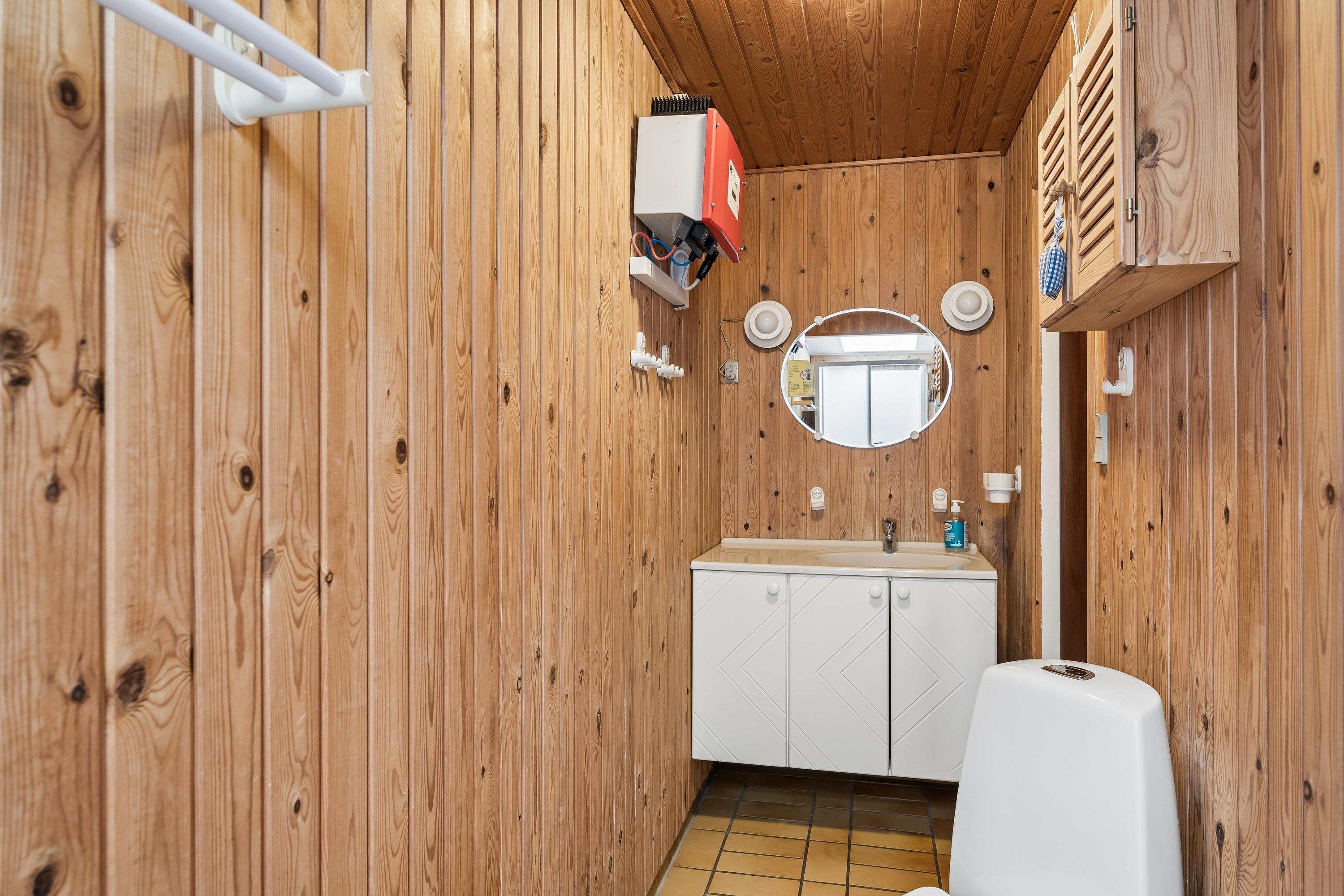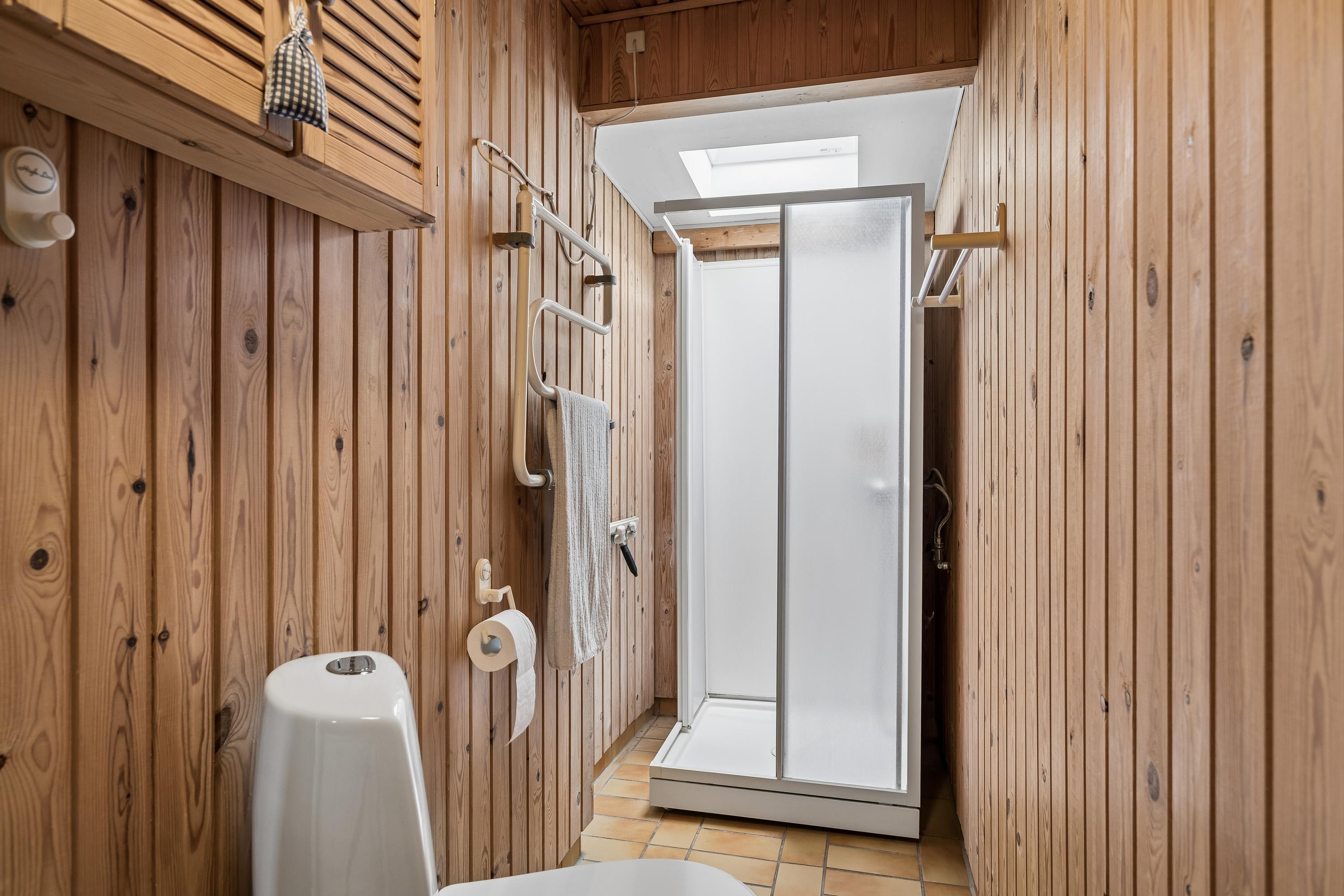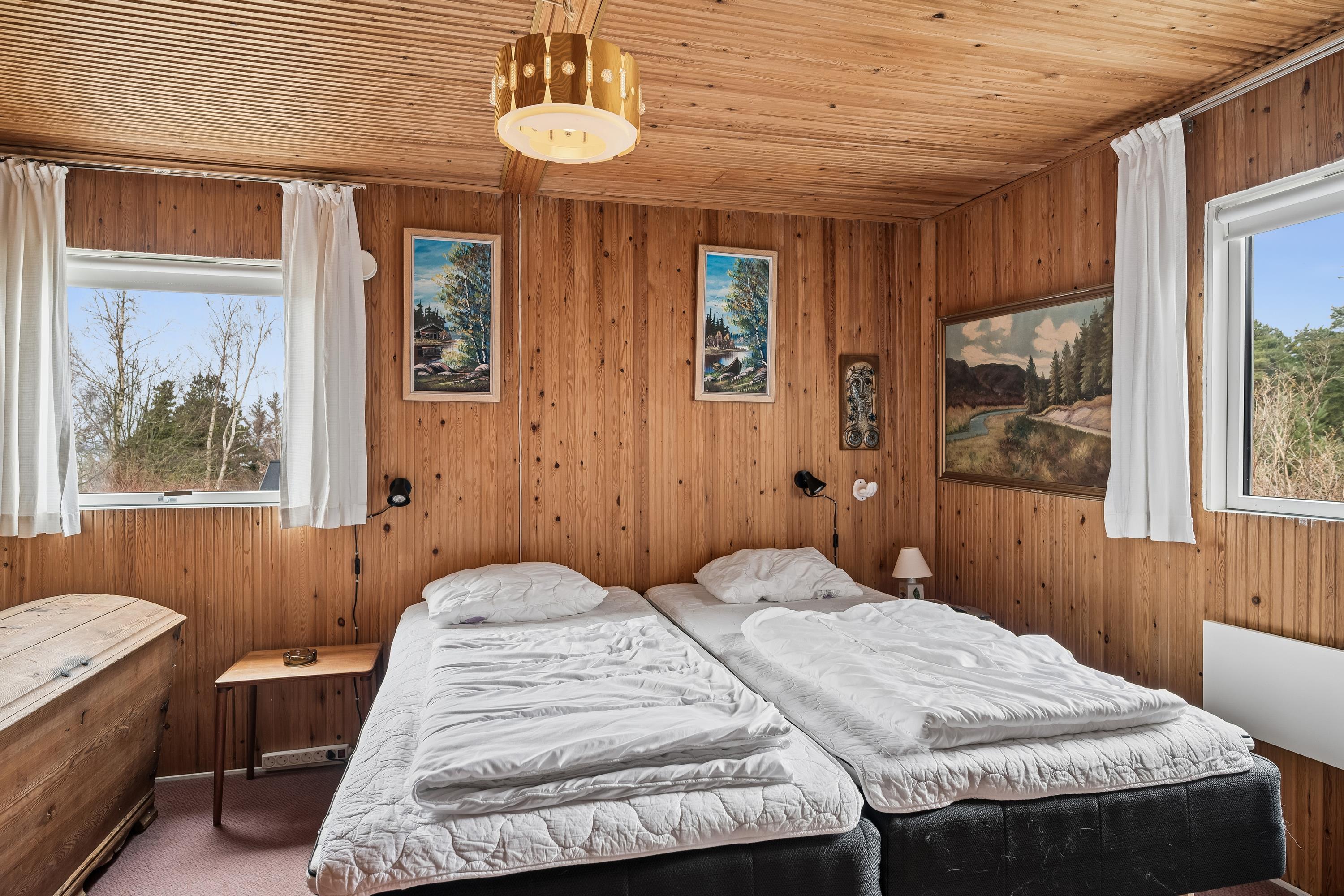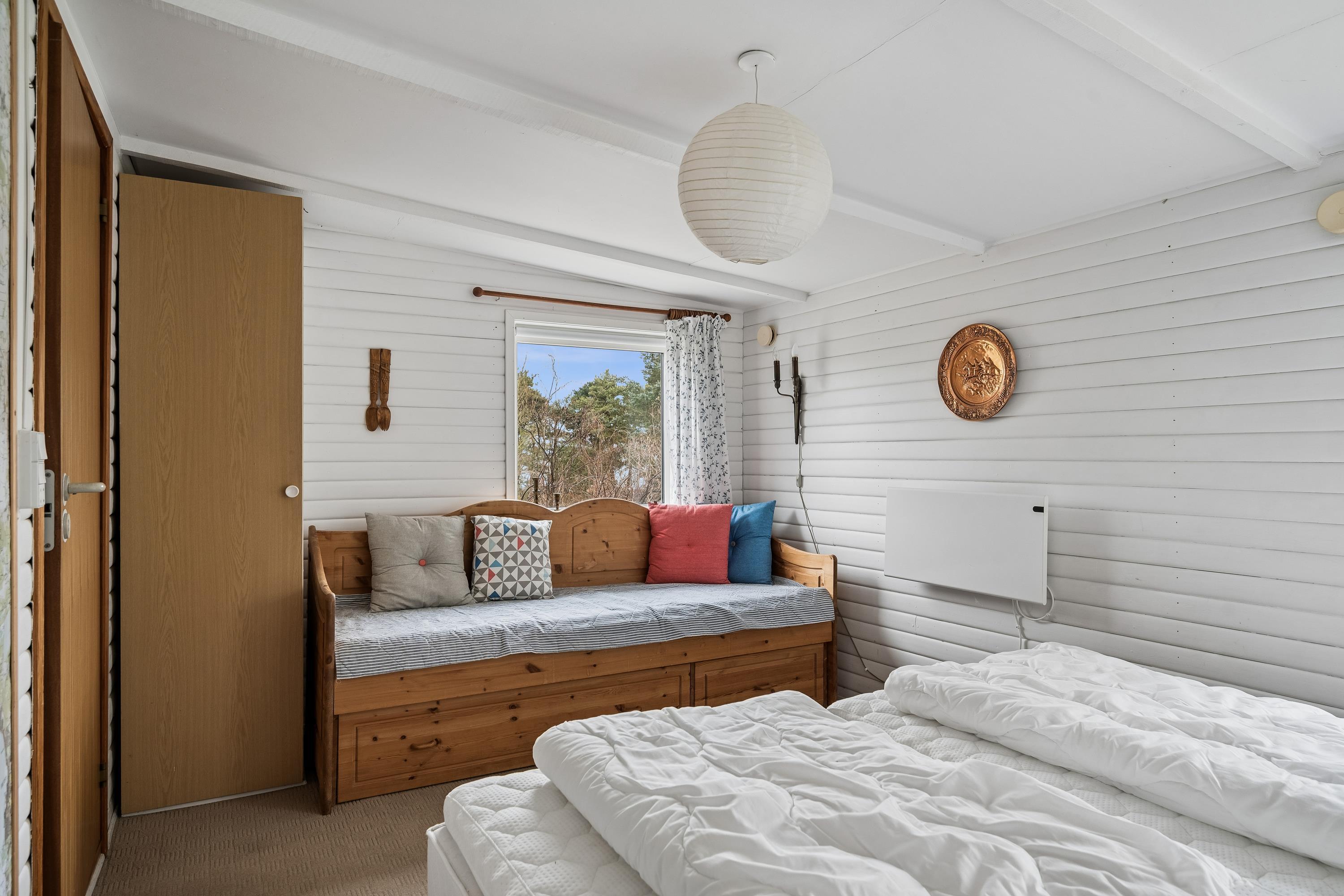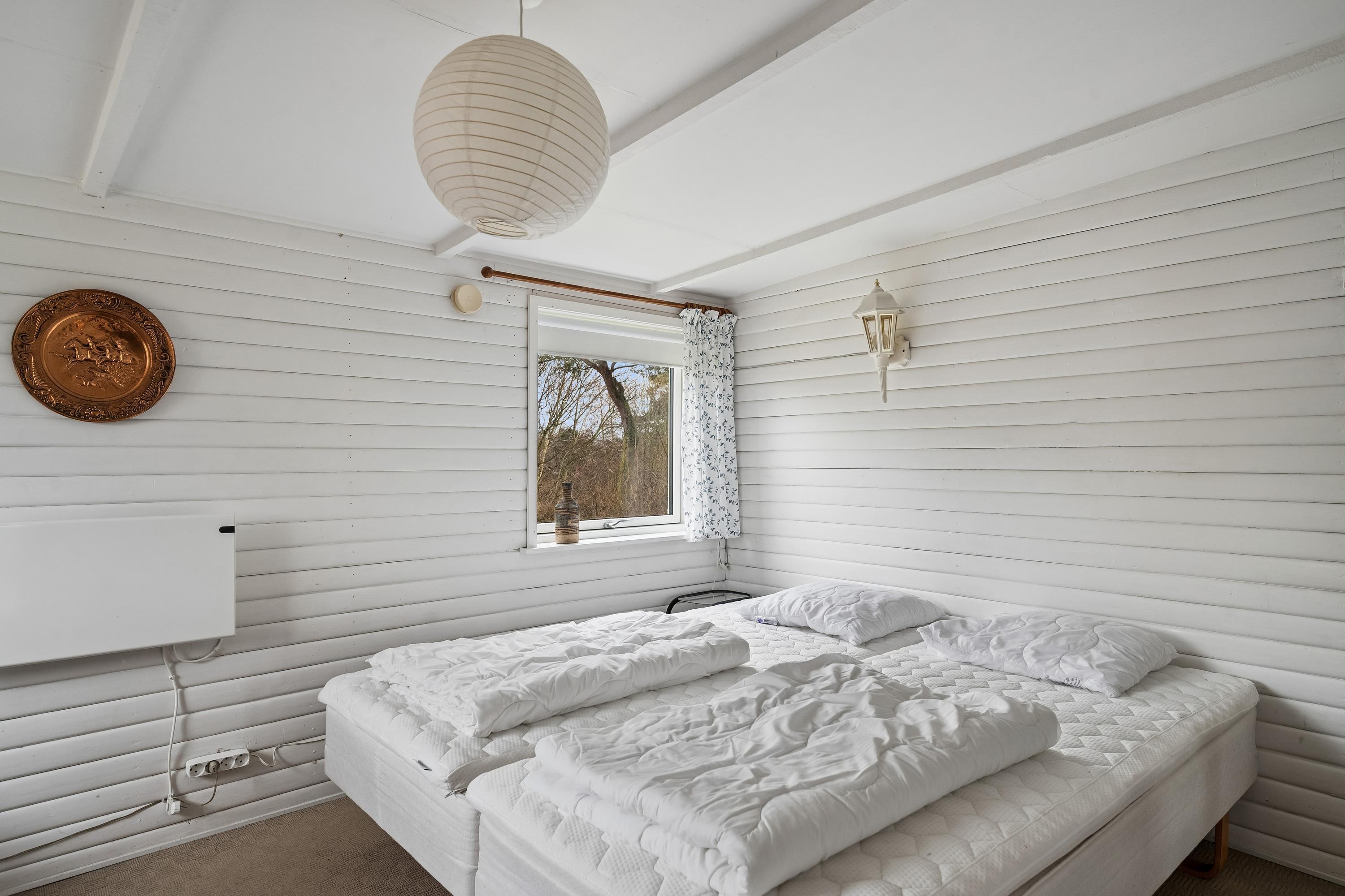 Huset har gode sovepladser fordelt på to værelser: ét med dobbeltseng og ét med både dobbeltseng og enkeltseng. Derudover er der en ekstra soveplads i stuen. Badeværelset fremstår pænt og funktionelt med brusekabine, og i depotrummet findes en vaskemaskine til fri afbenyttelse.