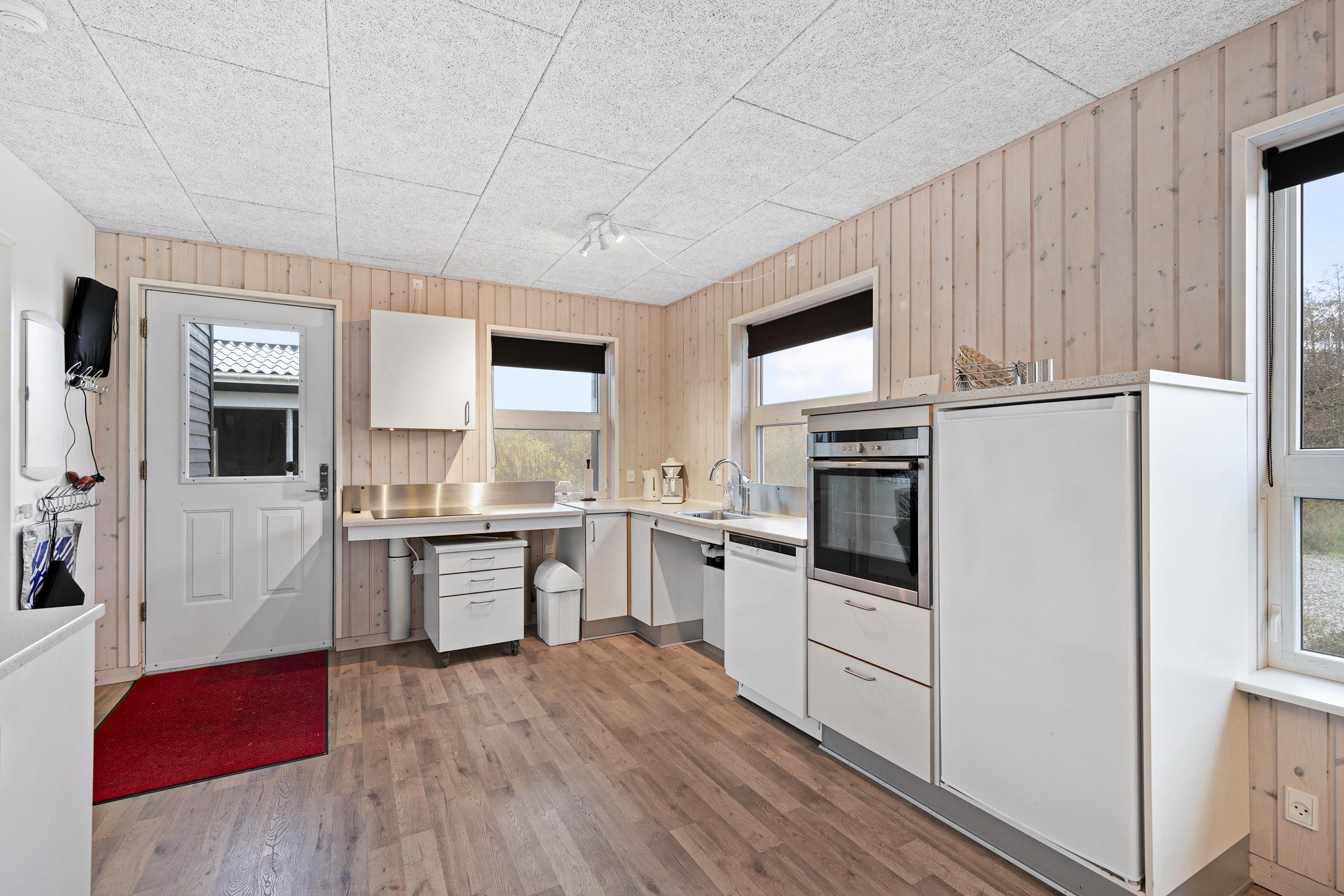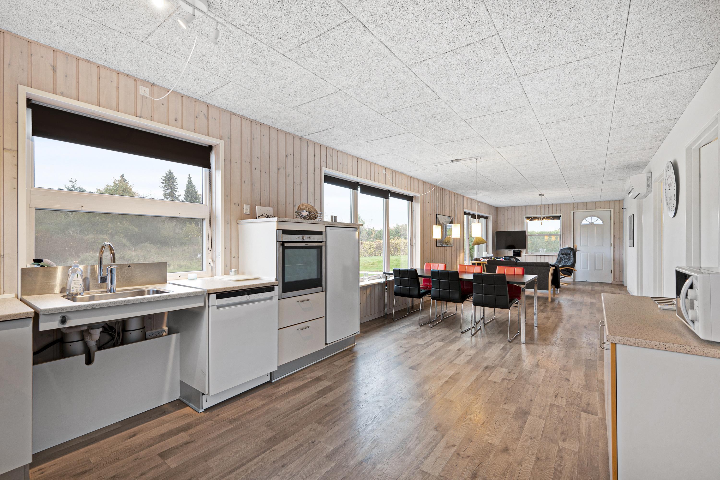 Handicapvenligt feriehus i Knebel med brede døre, justerbart køkken og børnevenlig strand tæt på.