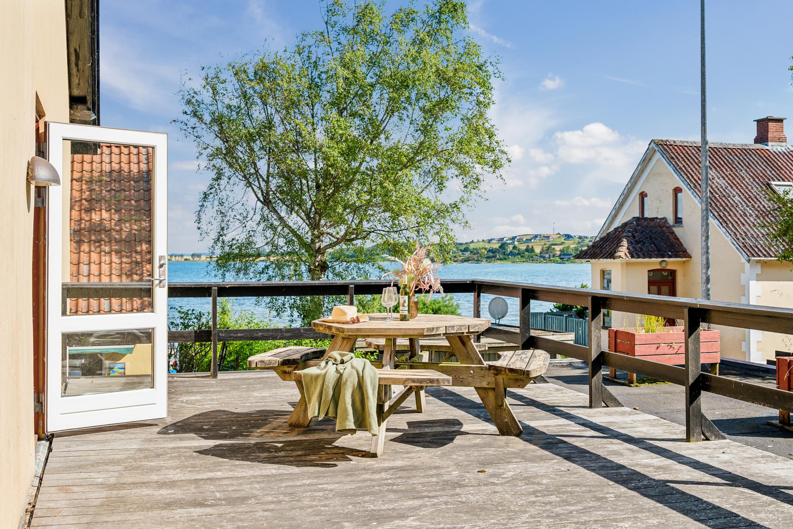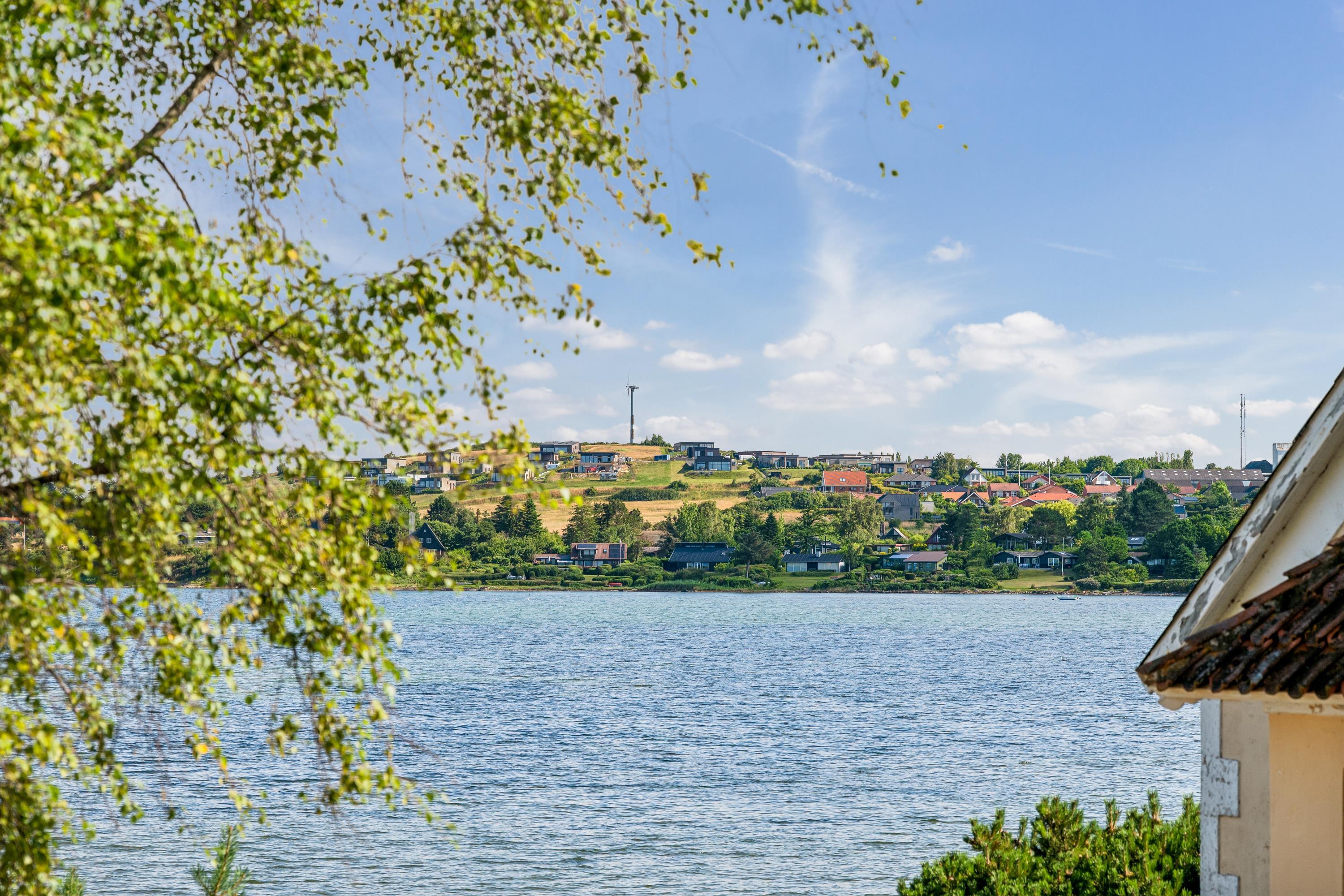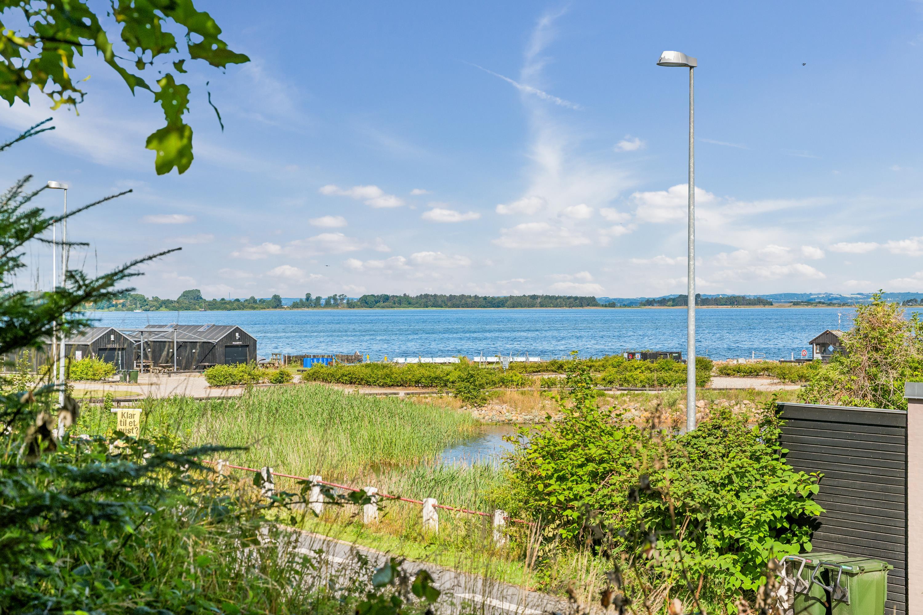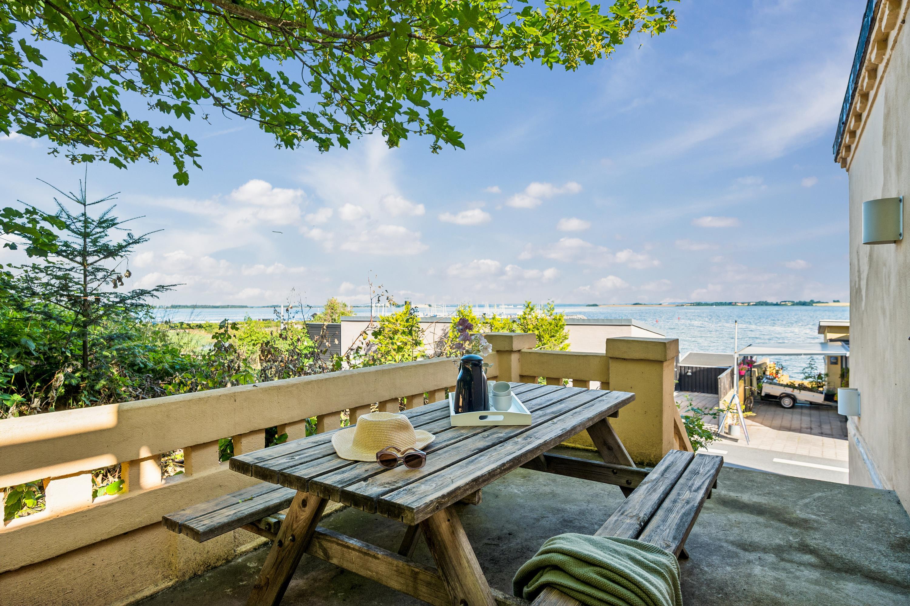 Charmerende feriehus i Knebelbro med udsigt over Knebel Vig og hyggelig terrasse.