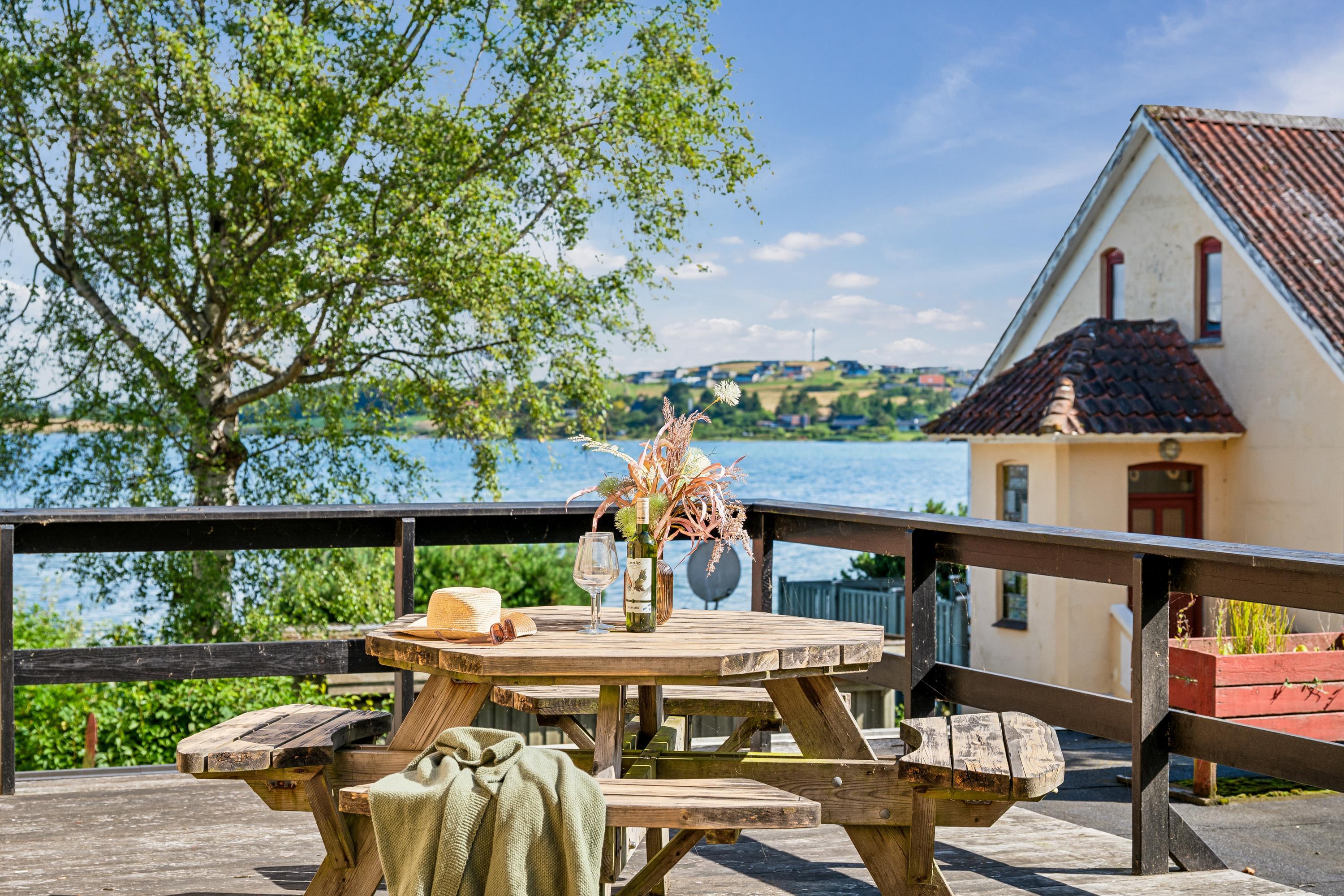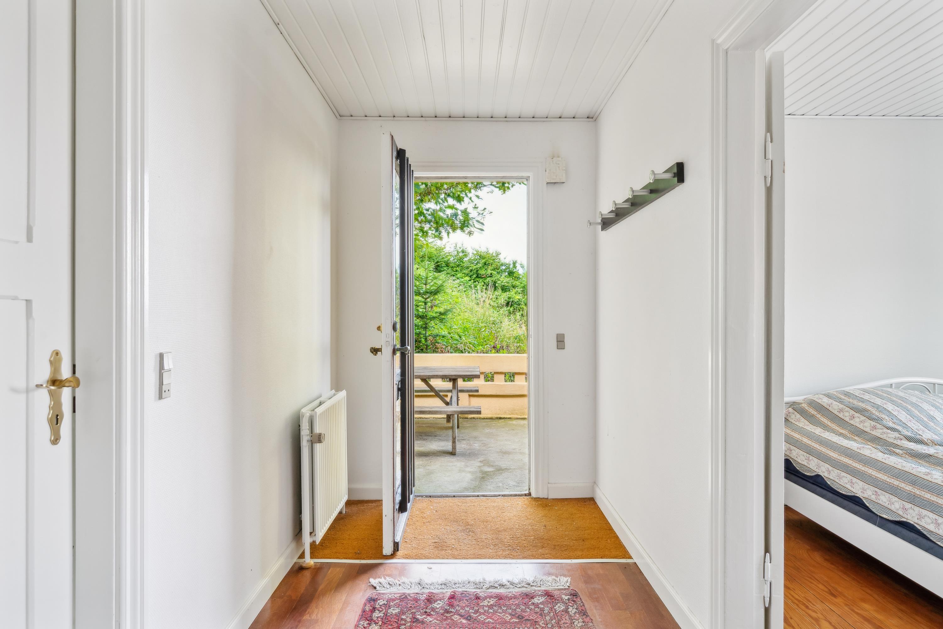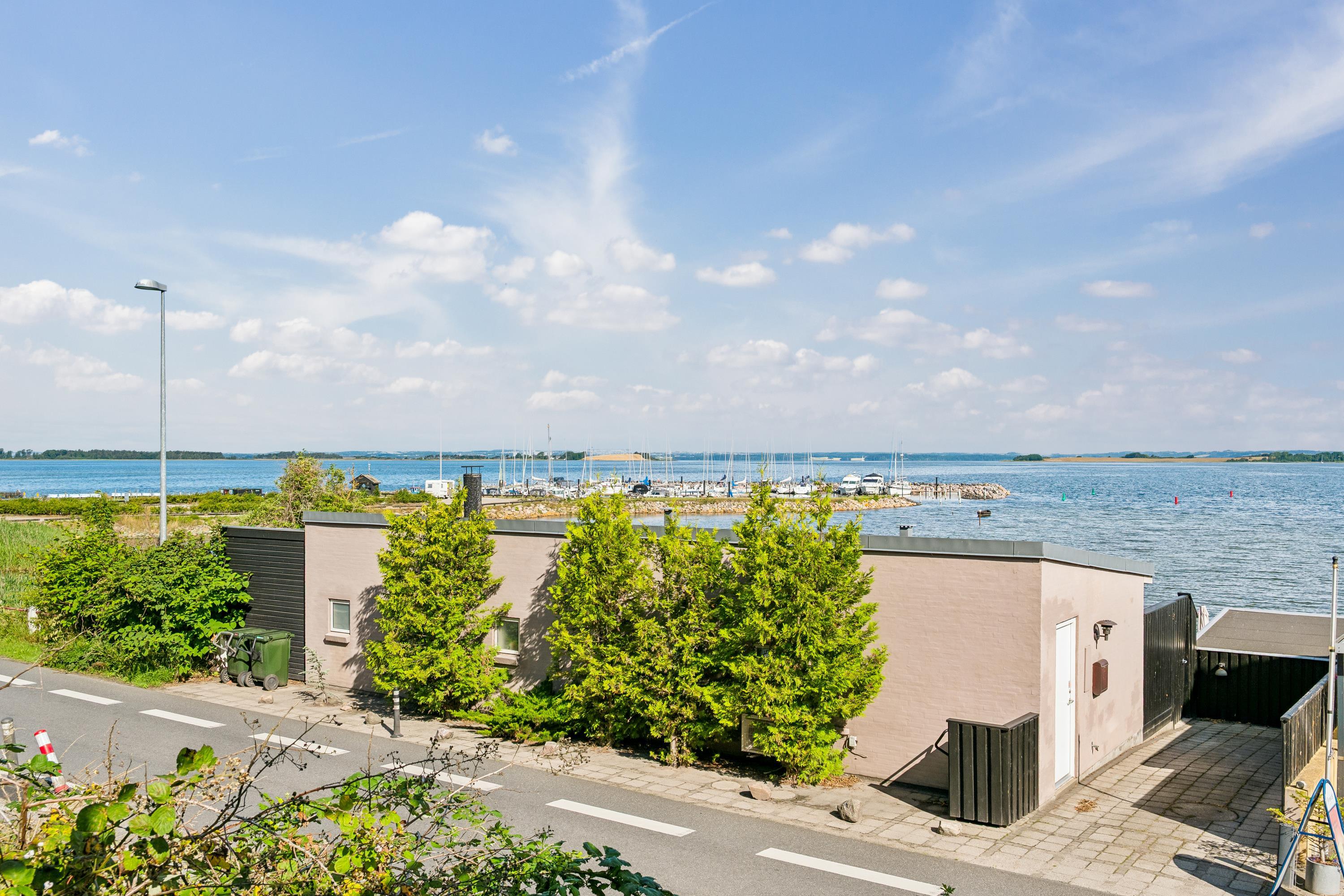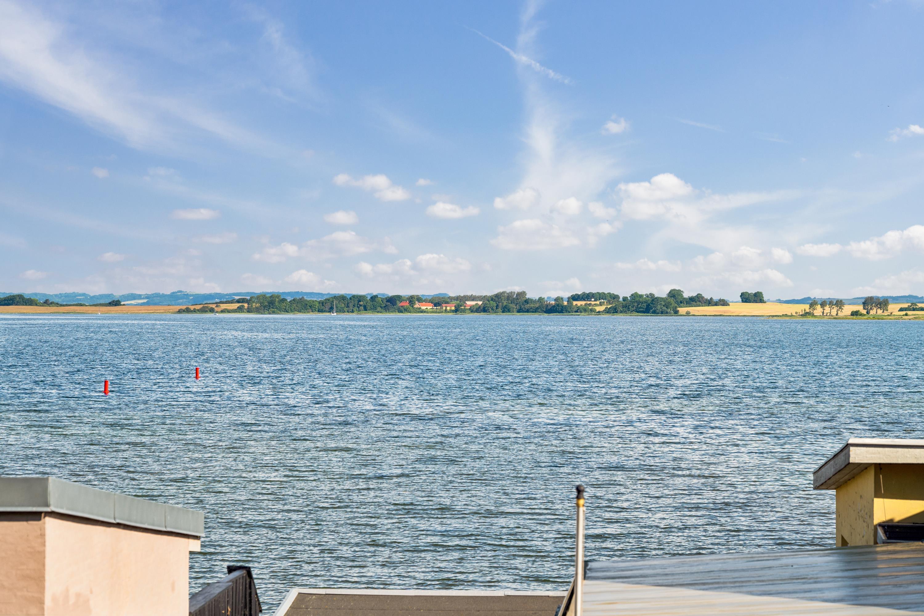 Charmerende feriehus i Knebelbro med udsigt over Knebel Vig og hyggelig terrasse.