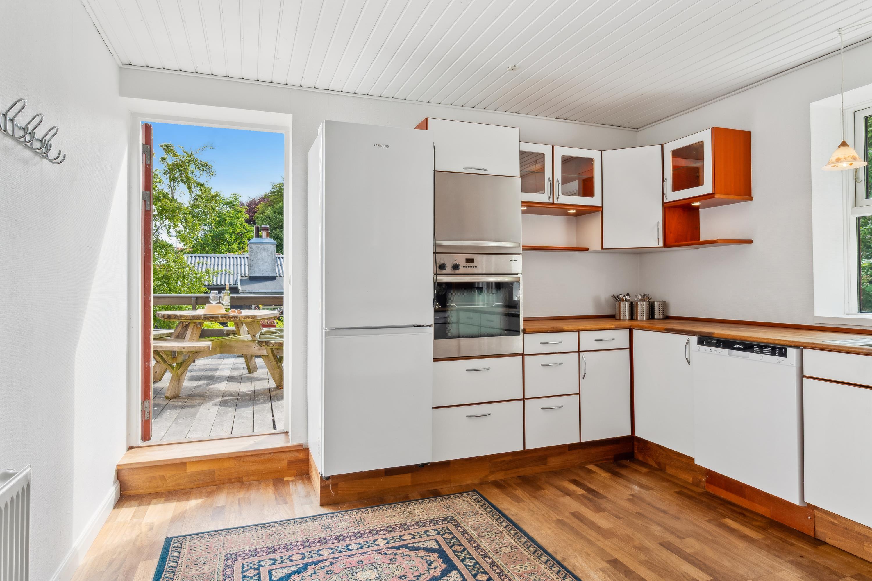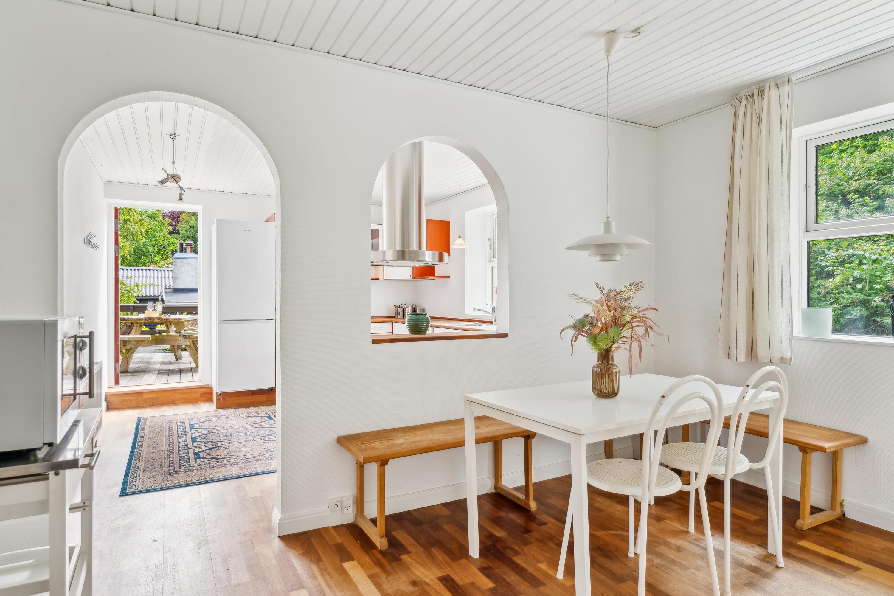 Dette ældre og delvis renoverede hus finder man i den lille by Knebelbro på Mols. Herfra er der den skønneste udsigt over Knebel Vig. Underetagen indeholder 3 gode værelser med dobbeltsenge, samt badeværelse og en mindre køkkenafdeling. Opgang til 1 salen hvor man finder en god opholdsstue med b.la. brændeovn samt et stort soveværelse med dobbeltseng. Stort køkken med opvaskemaskine og en spiseafdeling samt udgang til en skøn terrasse.