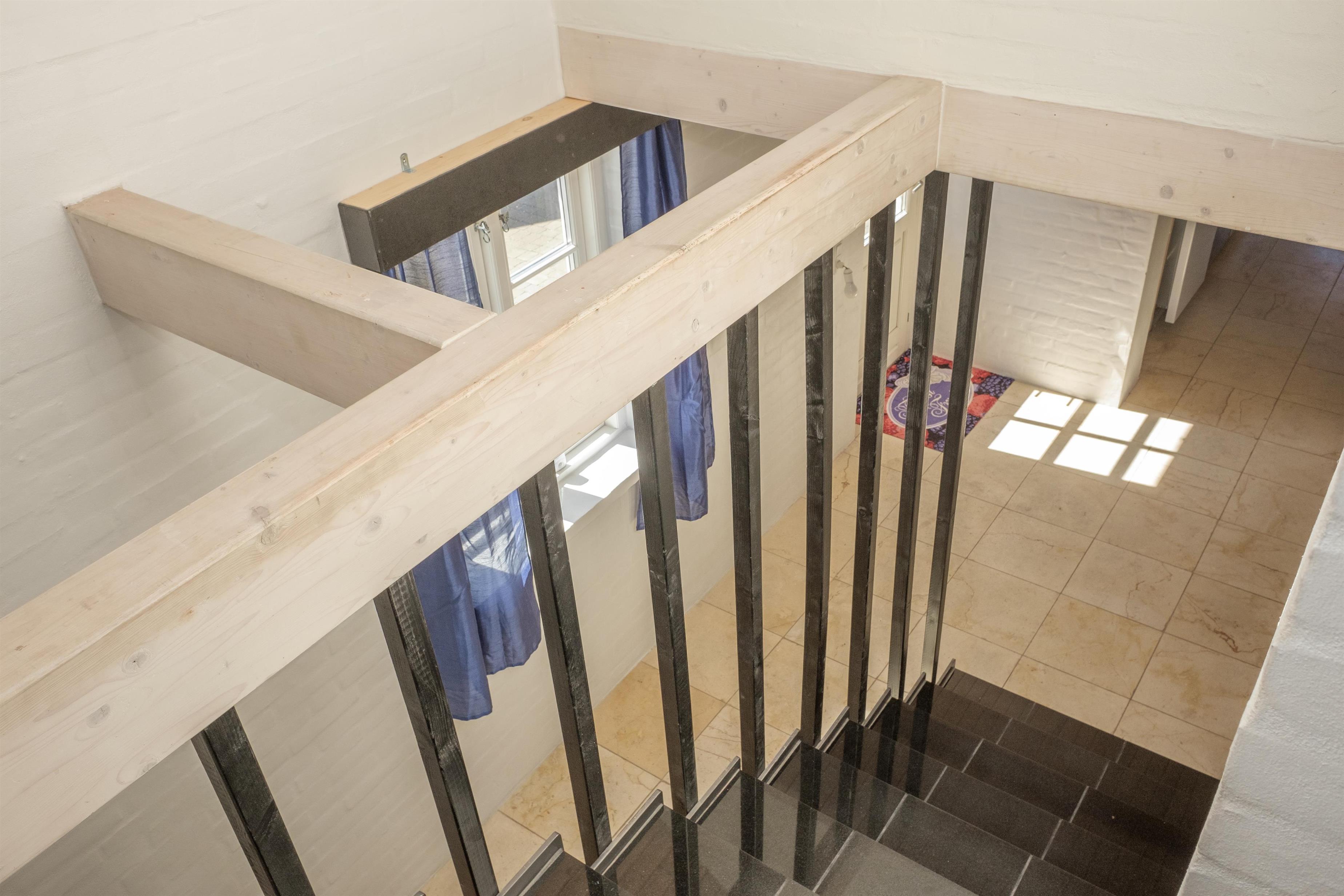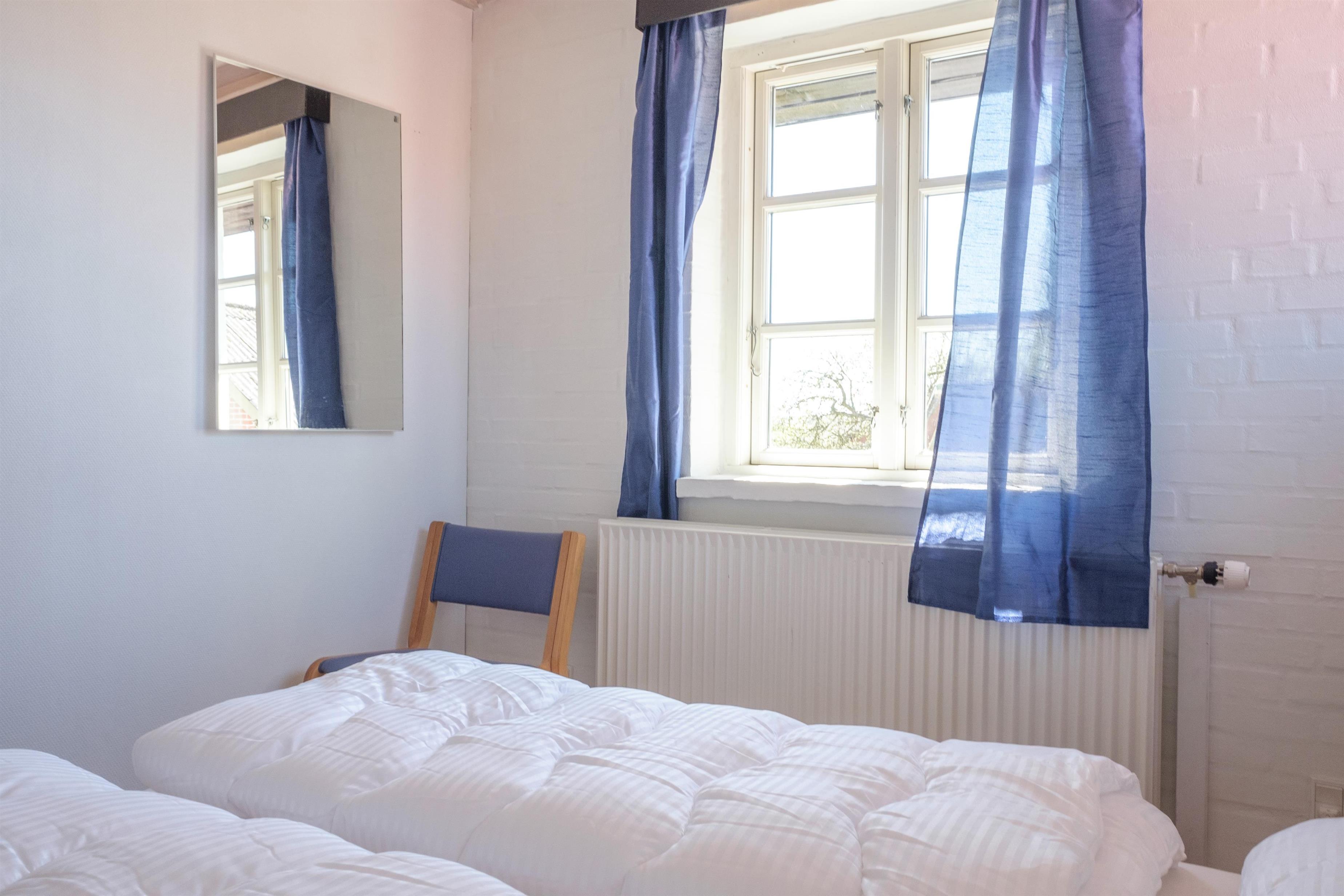 På 1. salen findes der 4 værelser: 3 med enkeltsenge og 1 med dobbeltseng, hvorfra der er udgang til balkon med udsigt ud over Kalø Vig. Endvidere fællesrum, stort badeværelse samt walk-in closet.