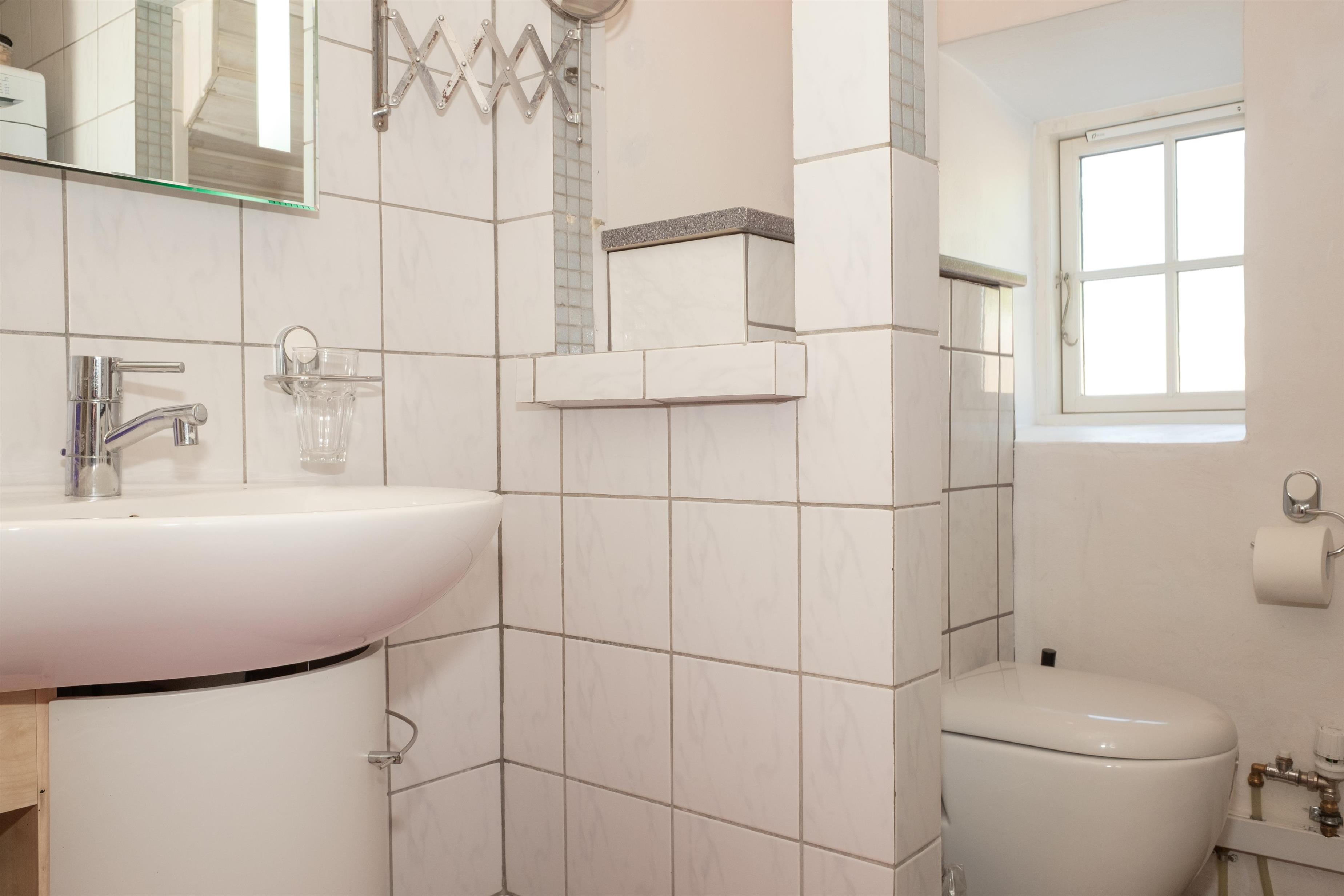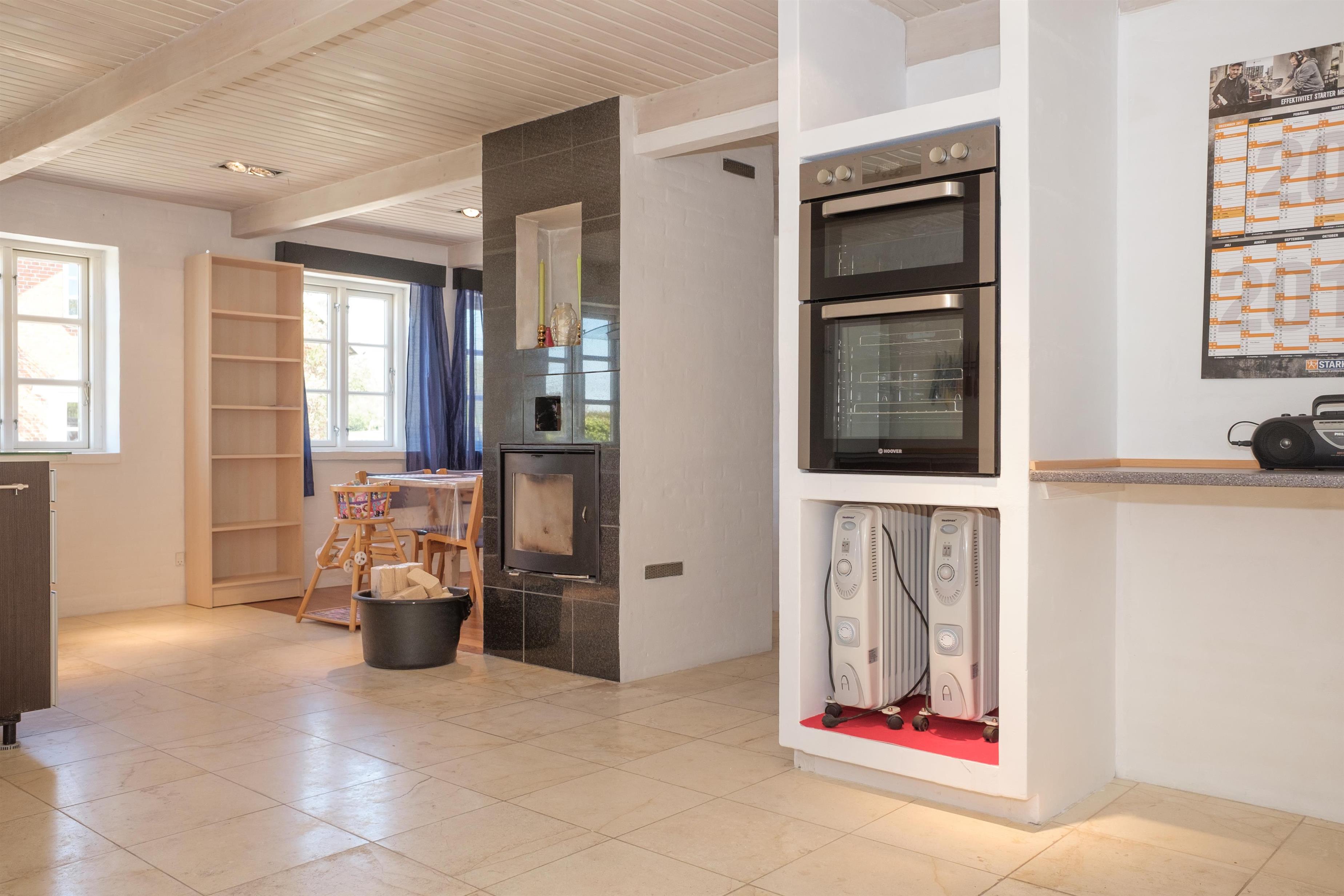 Huset er i stueplan indrettet med stort køkken/alrum med brændeovn – her er der masser af plads til at samles om fælles madlavning og spisning, også hvis der skal holdes fest i familien. Endvidere er der en stor stue med udgang til den dejlige have – her findes husets anden brændeovn. Derudover er der i stueetagen 2 værelser med dobbeltsenge og badeværelse.