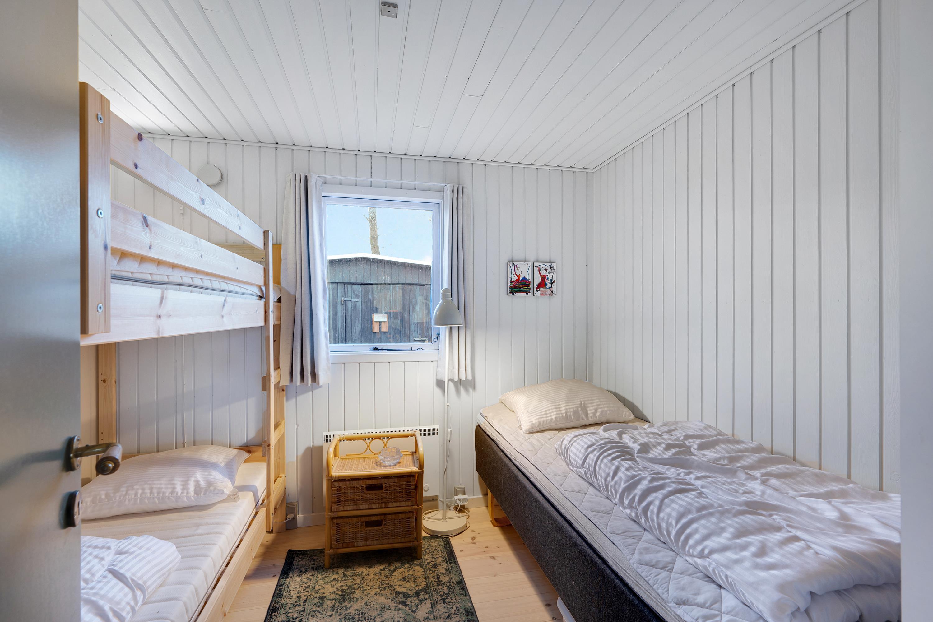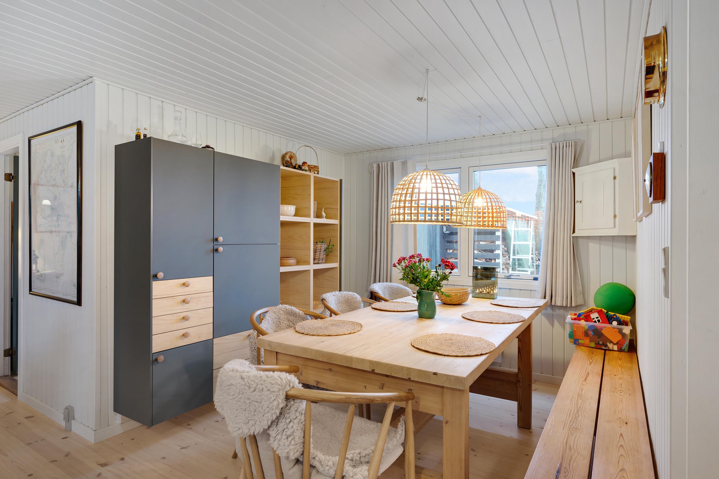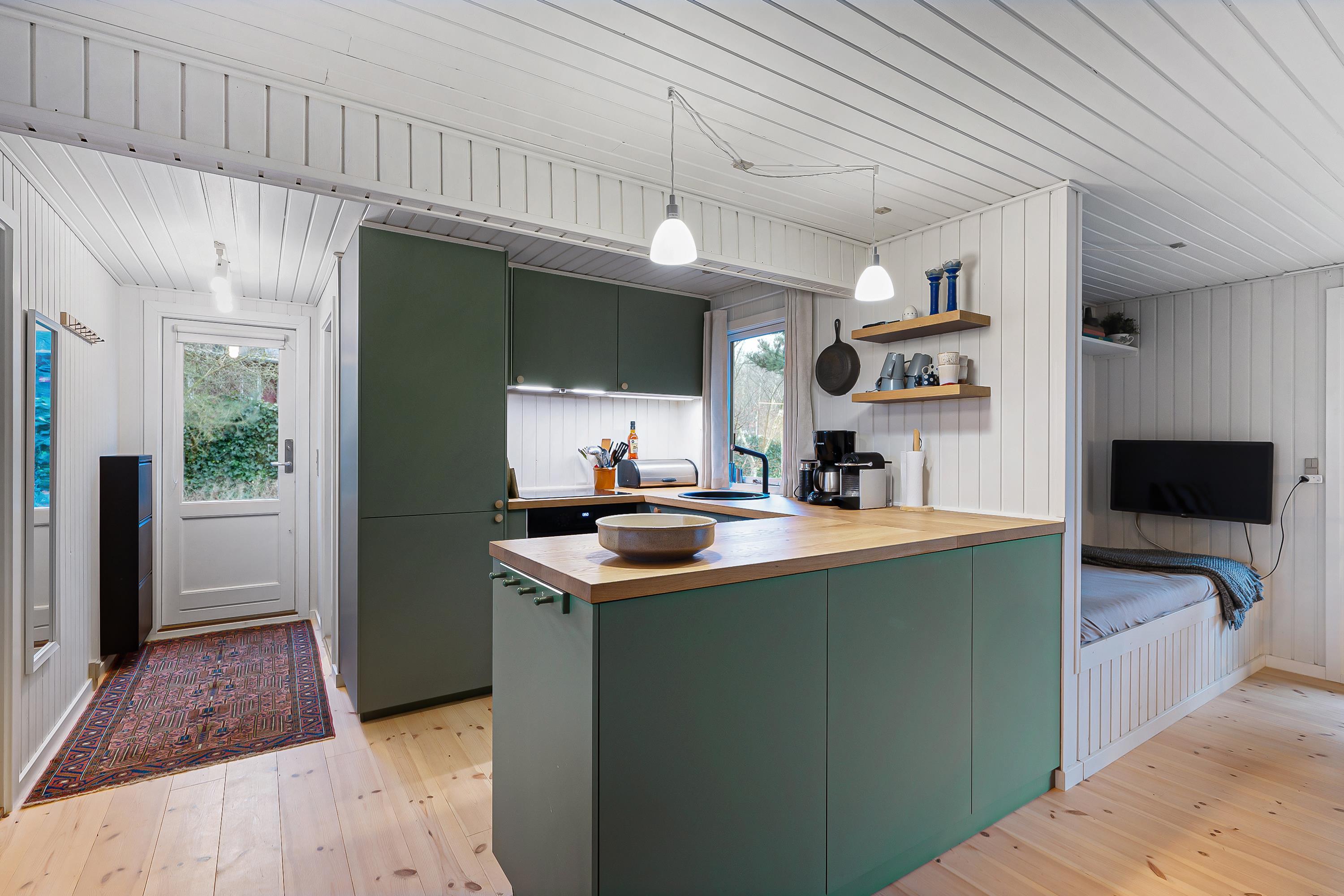 Ikke langt fra Skødshoved Strand, finder man denne naturperle, som oser af ægte sommerhusstemning og "rigtigt" sommerhus. Huset er moderniseret i 2022 og her finder man en hyggelig stue, møbleret med lækre møbler og med både brændeovn og varmepumpe. Herfra er der udgang til en skøn overdækket terrasse med havemøbler. I forbindelse med stuen finder man det flotte køkken med b.la vaskemaskine og en hyggelig spisekrog. Pænt badeværelse med bruseniche. Husets sovepladser finder man i et værelse med en køjeseng og en enkeltseng, et værelse med en dobbeltseng og den sidste soveplads i en hyggelig alkove i stuen. Der er både spil og legesager til børnene i huset som må benyttes. Tv foregår via chromecast . Udendørs er der både legehus, sandkasse og gynge til de små feriegæster, samt en stor græsplæne- velegnet til leg og boldspil og udendørs hygge.
