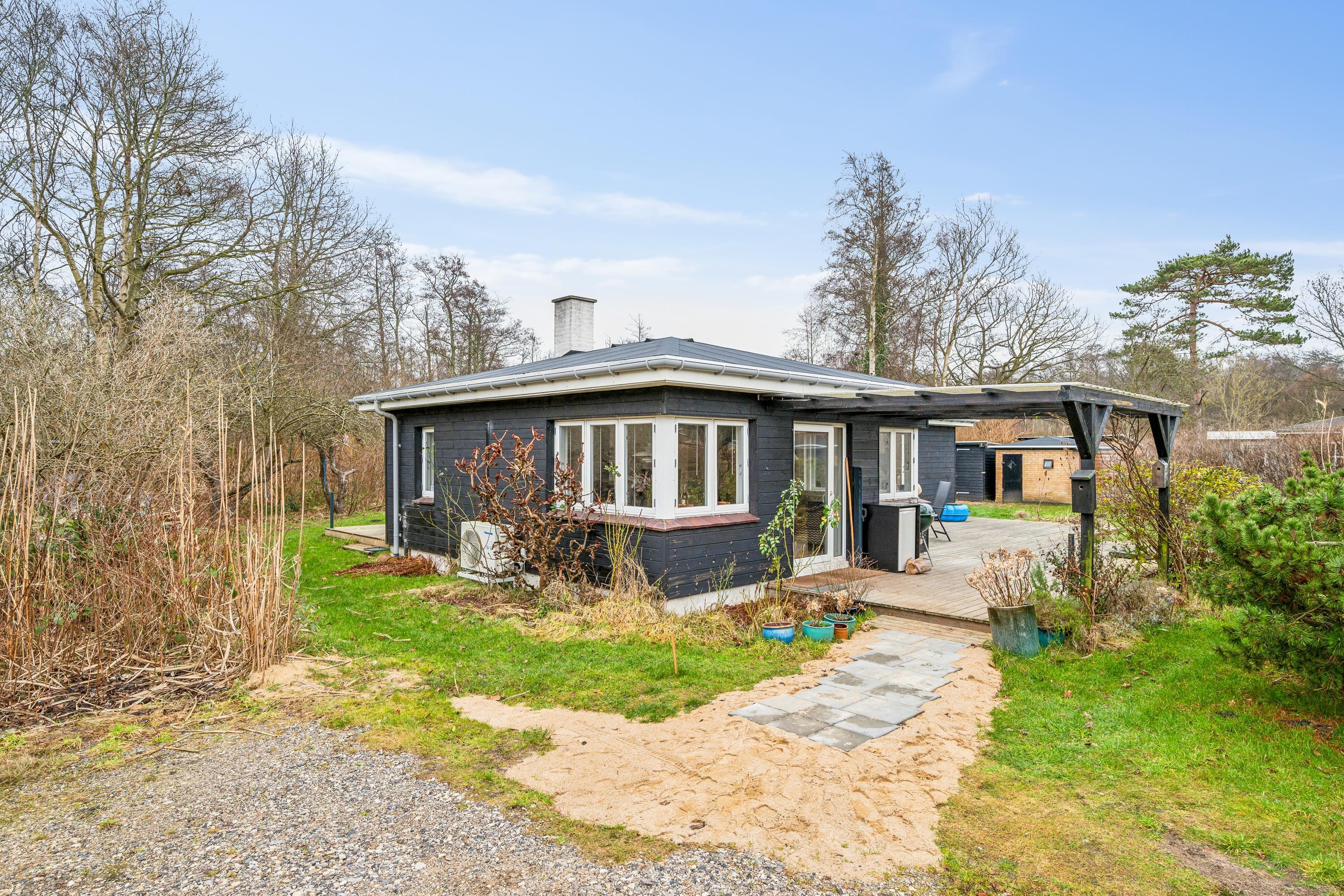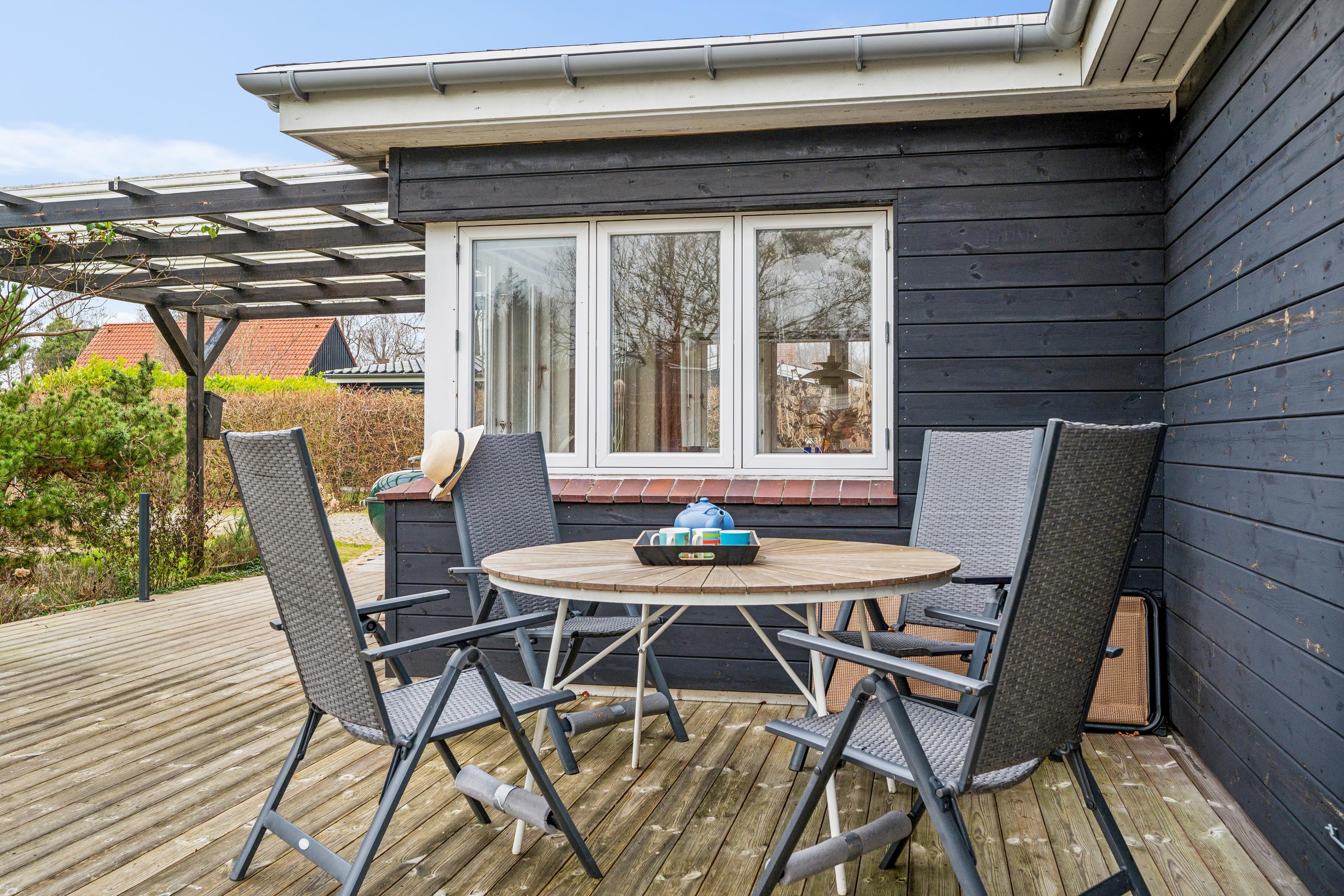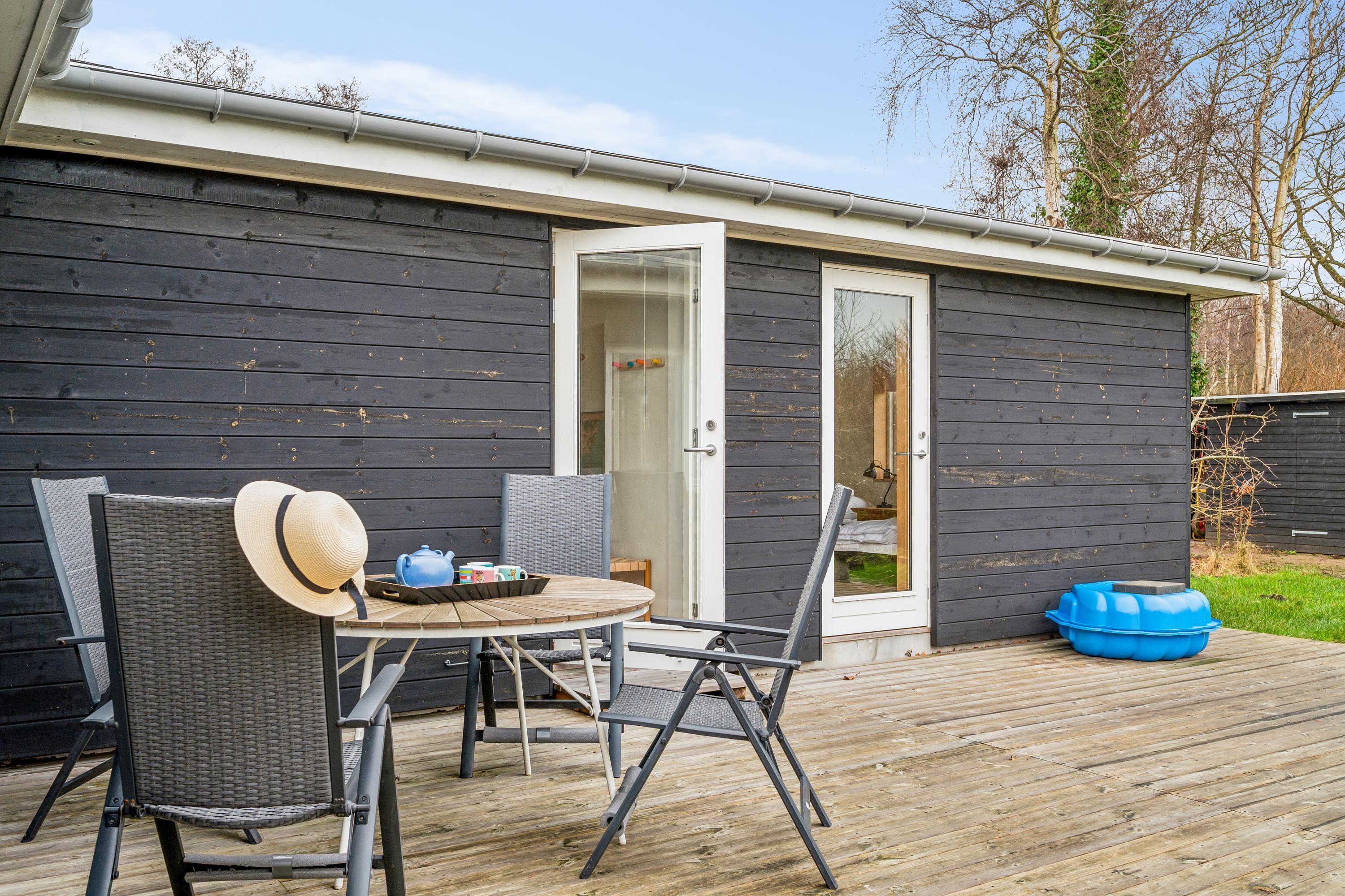 Hyggeligt sommerhus ved Skødshoved Strand med nyt køkken, 3 soveværelser og stor terrasse med grill.