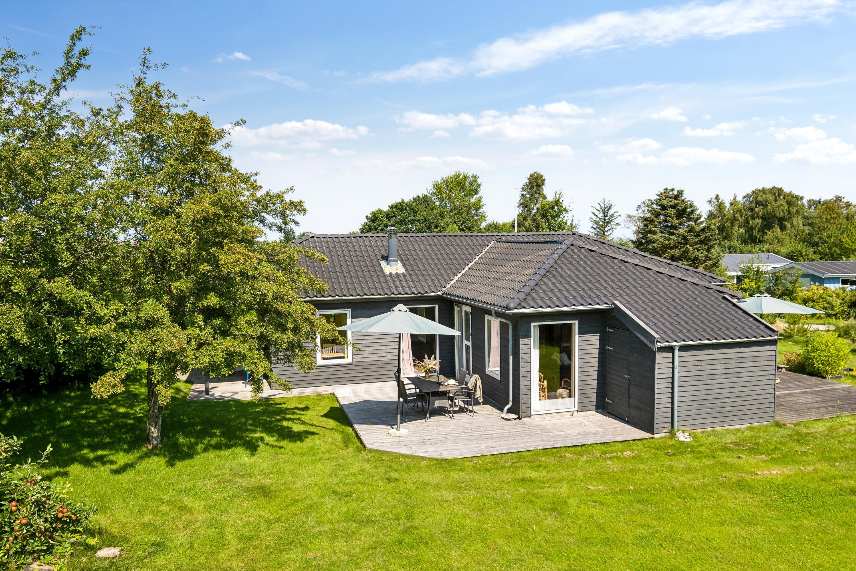I det smukkeste område på Mols, med udsigt over mark og skov og tæt på vand, finder man dette særdeles velholdte feriehus. Her finder man en lys og rummelig stue, hyggeligt møbleret med gode møbler, brændeovn og varmepumpe og med udgang til en dejlig terrasse. I forbindelse med stuen finder man det velfungerende køkken med b.la. opvaskemaskine. Huset indeholder to flotte badeværelser, hvoraf det ene er med spa-bad og adgang til sauna. Der er tre gode værelser, heraf to med dobbeltsenge og et værelse med to enkelt senge. Fra det ene soveværelse er der direkte udgang til en lille overdækket terrasse. Der er flere skønne terrassearealer, så man kan nyde både solopgang og solnedgang. Huset er beliggende på en skøn grund med stor græsplæne, velegnet til leg og udendørs hygge. Området er roligt og meget børnevenligt og af stisystemet tæt ved huset, er der 5 min gang til vandet. En god badestrand finder man ved Skødshoved ca. 5- 10 min kørsel fra huset.