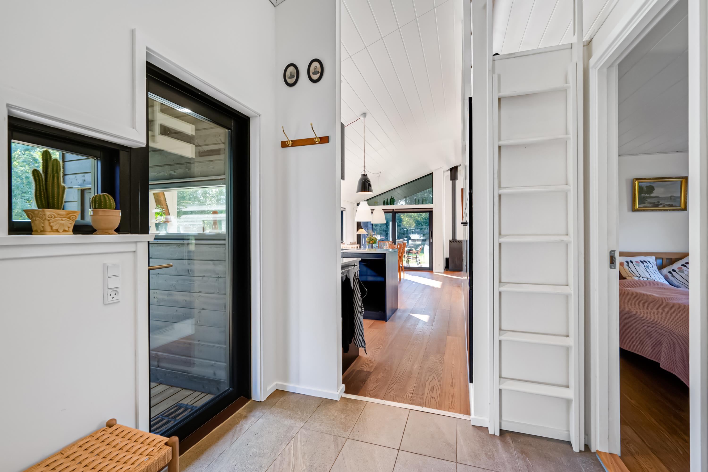 Dette nye og meget rummelige feriehus er beliggende på opvokset naturgrund i det smukke og rolige område ud til Begtrup Vig. Huset er omgivet af en træterrasse, hvis sydvendte del er overdækket, med gode havemøbler, liggestole, parasol og grill. Et virkelig skønt og velindrettet hus til den store eller flere familier. Huset er desuden energivenligt.