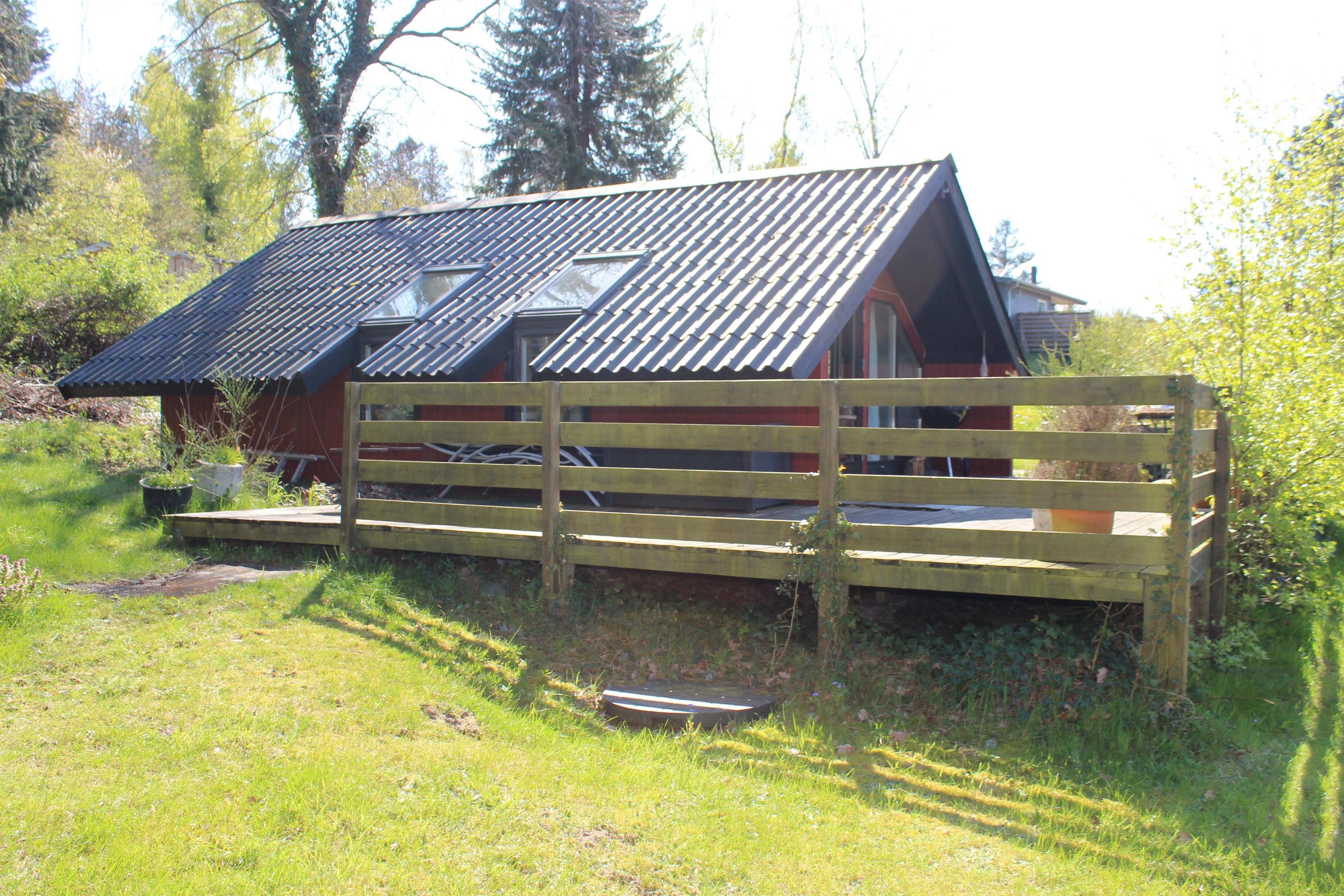 Charmerende sommerhus i 1. række til vandet med stor naturgrund, havkig og dejlig terrasse med grill og havemøbler.