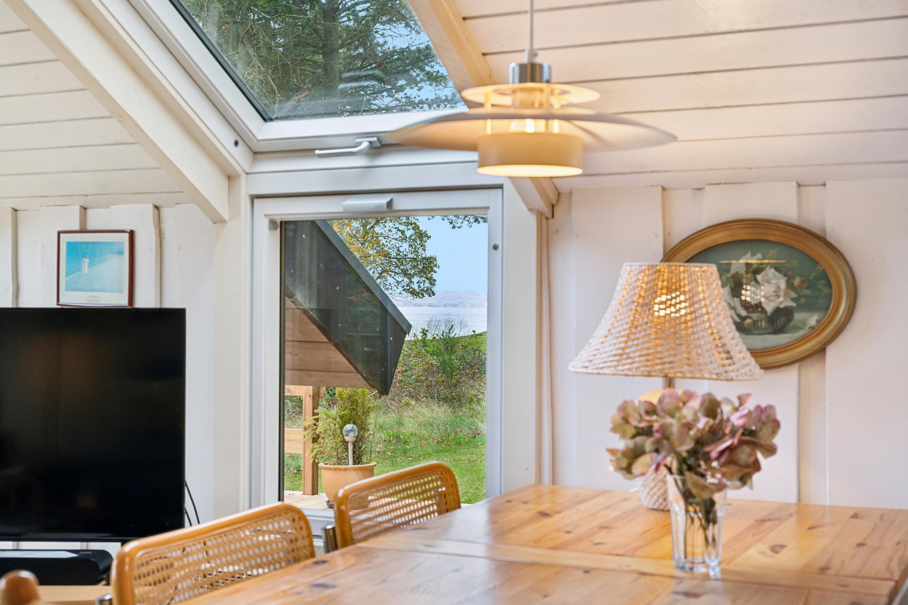 Velholdt og dejligt sommerhus beliggende på meget stor naturgrund i 1. række til vandet med havkig samt god terrasse med havemøbler og grill. Lys og venlig indretning med hyggelig opholdsstue med brændeovn, TV (gratis danske programmer og TV2), DVD samt stereoanlæg med CD. Pænt og veludstyret køkken med komfur med keramiske kogeplader, køleskab med lille fryser, mikrobølgeovn og opvaskemaskine. Nyere, flot badeværelse med bruseniche og gulvvarme. Husets sovepladser fordeler sig på 2 soverum med helt nye kvalitetssenge: 1 med dobbeltseng (280 cm bred) og 1 med 2 gode enkeltsenge. Terrassevarmer.