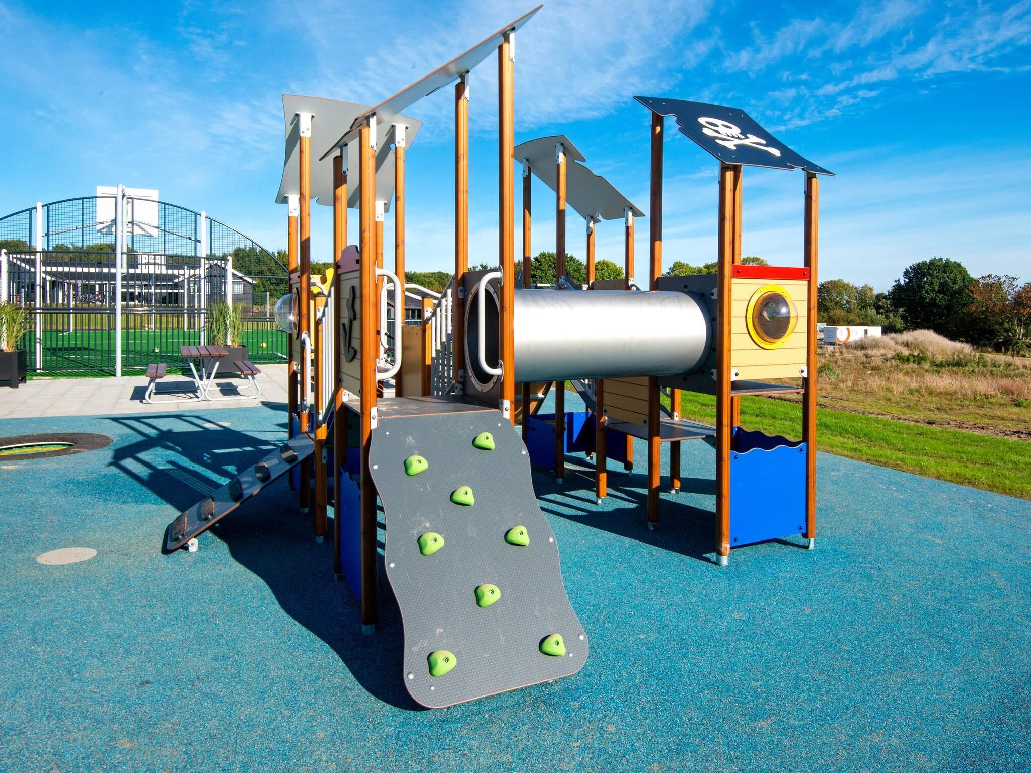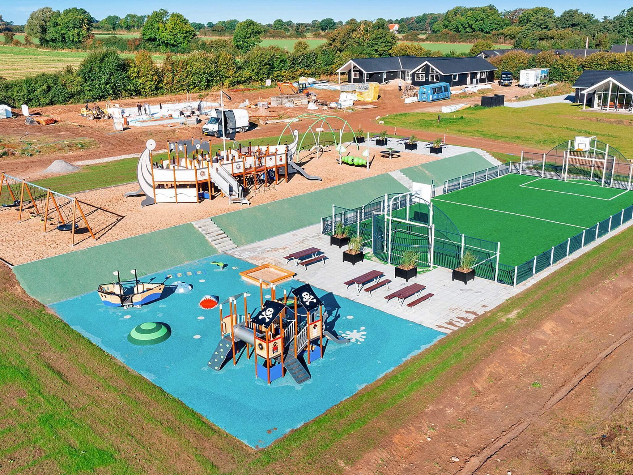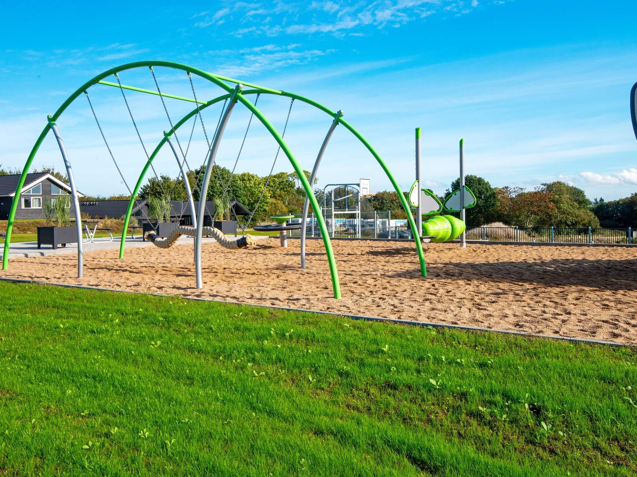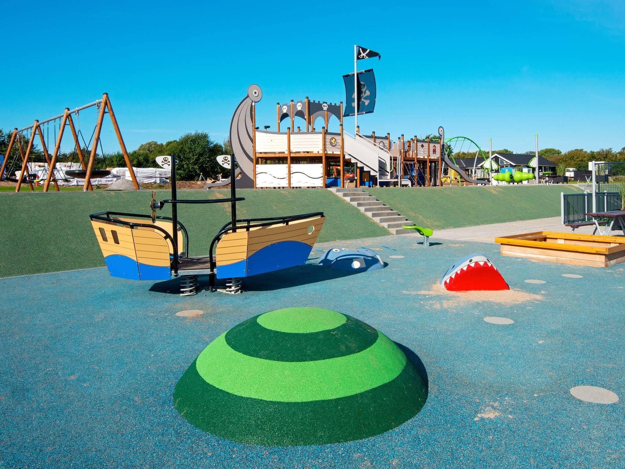 Alle luksussommerhuse i Mommark har adgang til et stort, fælles udendørs legeområde og multibane. Her kan børn og sjæleunge tilbringe deres feriedage med at lege på det store piratskib, gynge, glide og klatre på klatrestativet. Den græsdækkede multibane kan bruges til fodbold, basketball, fodtennis, volleyball og badminton. Ved siden af ??legepladsen finder du også borde og bænke, hvor voksne og andre tilskuere kan hygge sig og slappe af.