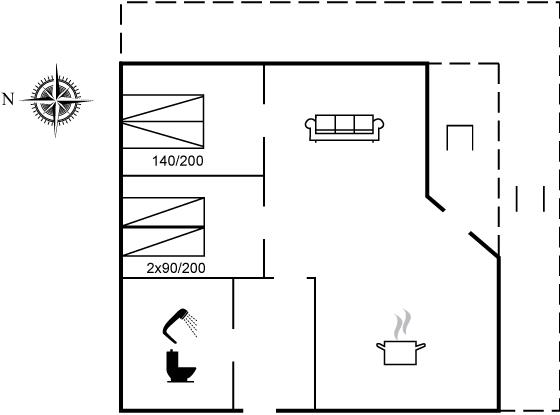 Der er i alt 2 soveværelser. Sovepladserne fordeler sig på: 4 sovepladser i dobbeltsenge. Derudover er der 1 stk. barneseng.