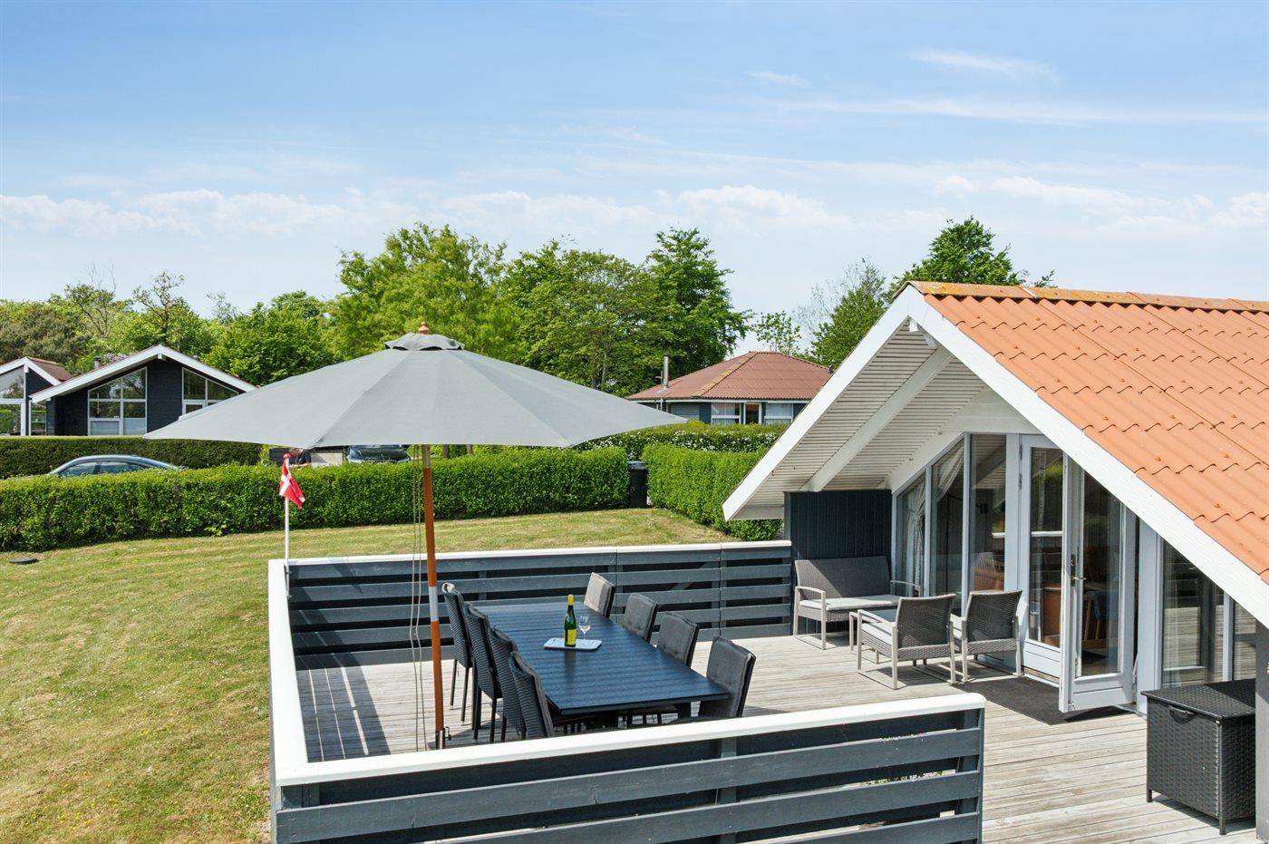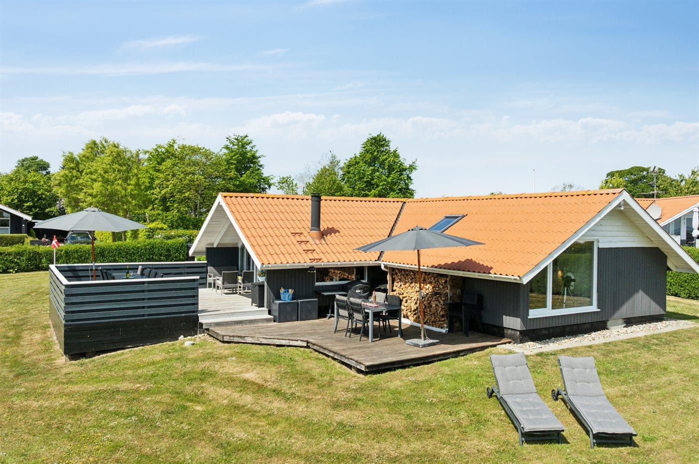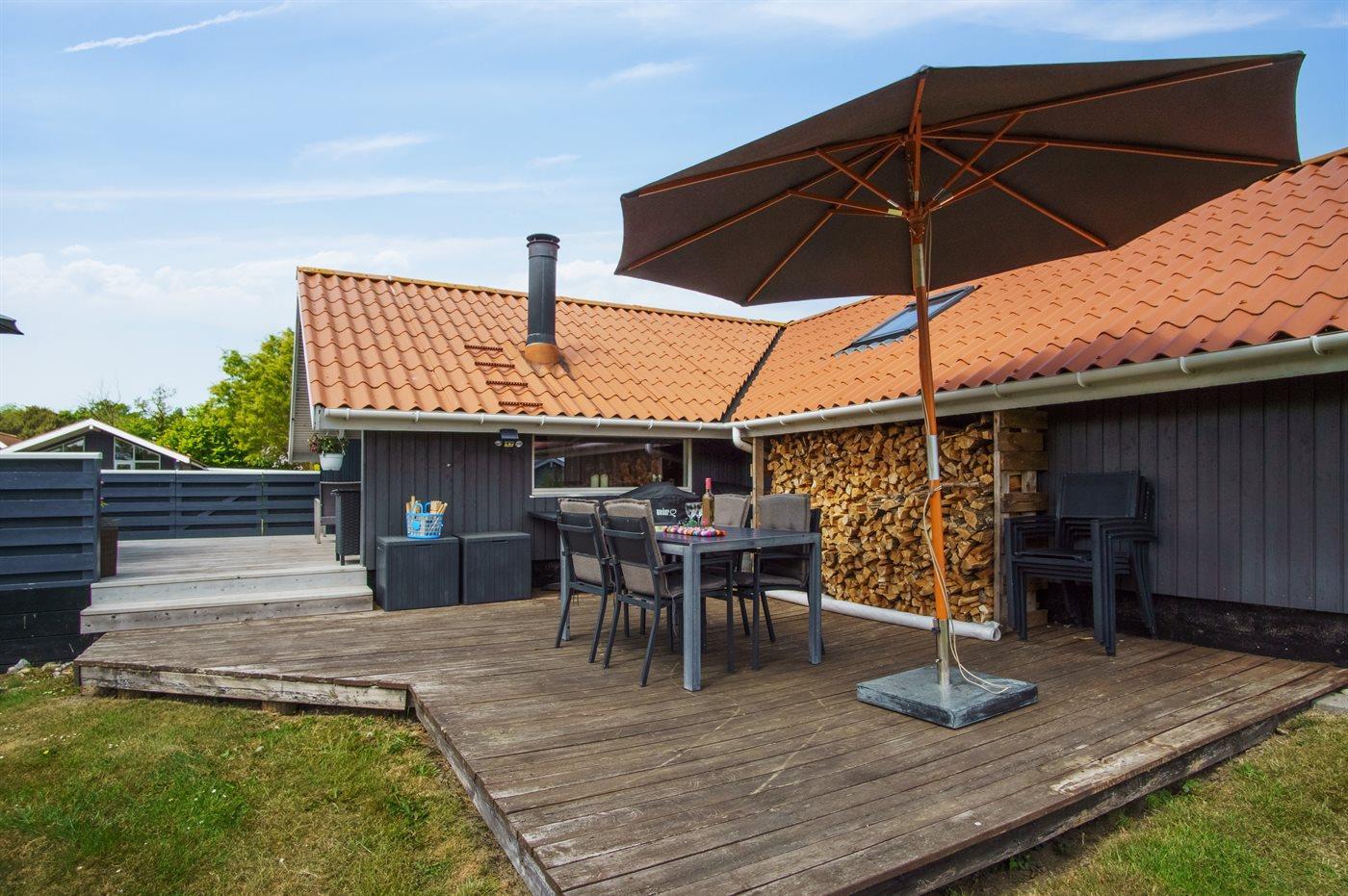 Ferieboligen er beliggende på en 1080 m² stor havegrund. Der er 200 m til havet. Nærmeste forretning er beliggende i en afstand af 4000 m. Der er en golfbane i en afstand af 12000 m. Til ferieboligen hører åbent terrasseareal. Desuden er der overdækket terrasse. Der er redskabsrum. Gynge. Sandkasse. Grill til rådighed. Der er installeret stik til opladning af elbil. CEE stik. Parkering ved ferieboligen.