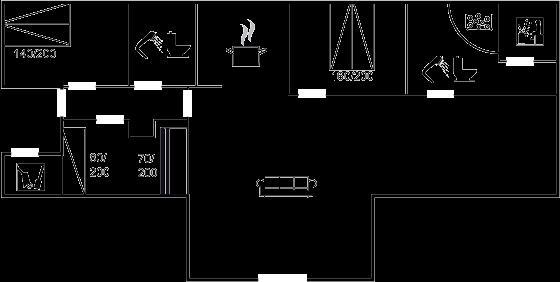 Der er 2 badeværelser med bruseniche og 2 toiletter. Der er gulvvarme på 2 badeværelser. I saunaen er der mulighed for afslapning.