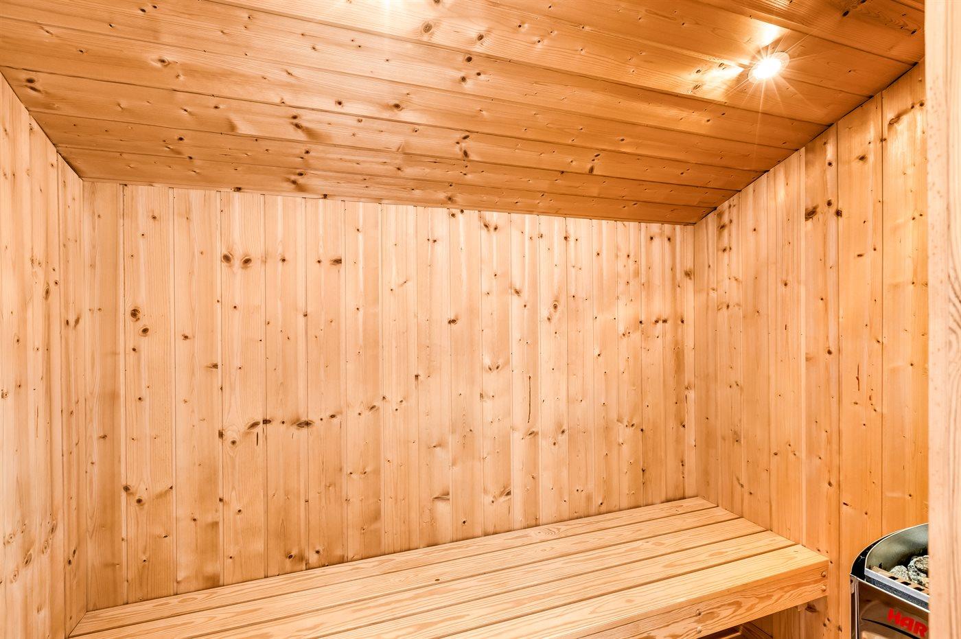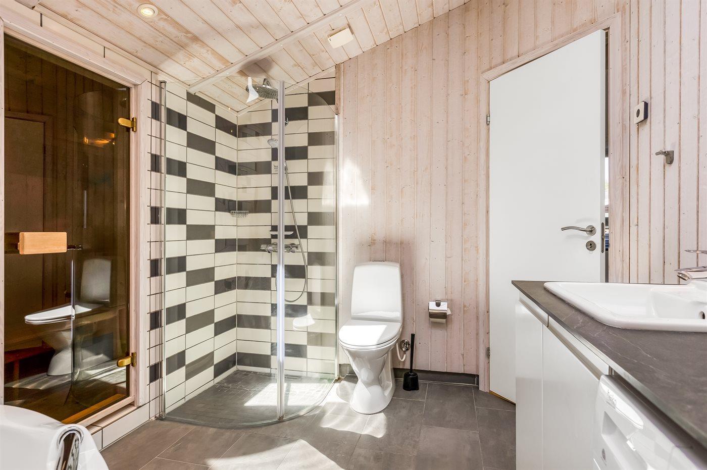 Der er 1 badeværelse med bruseniche og 1 toilet.. Der er gulvvarme på 1 badeværelse. I saunaen er der mulighed for afslapning.