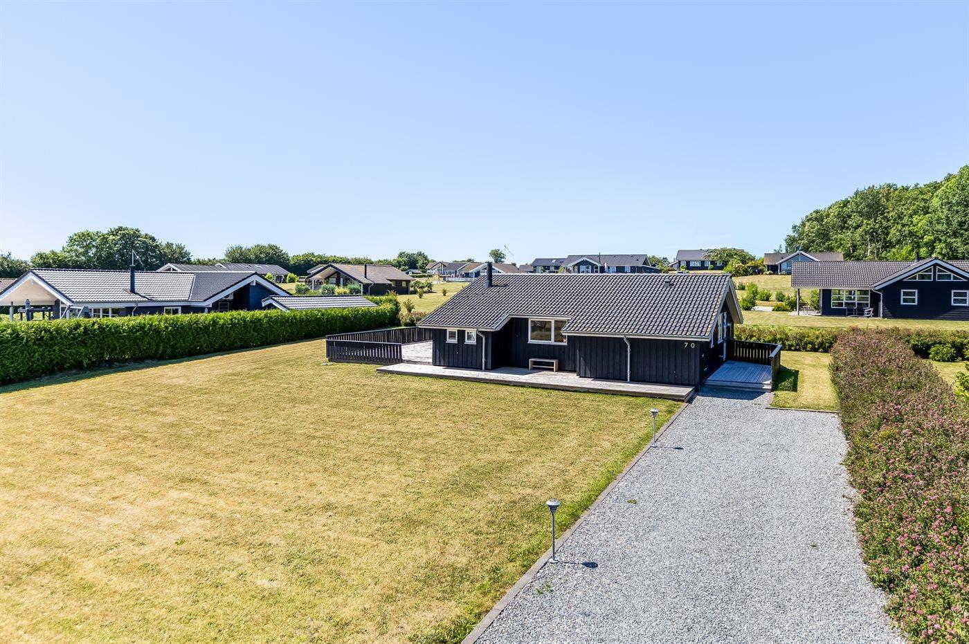 Ferieboligen er beliggende på en 1050 m² stor havegrund. Der er 400 m til havet. Der er en badebro i nærheden. Nærmeste forretning er beliggende i en afstand af 4000 m. Der er en golfbane i en afstand af 14000 m. Til ferieboligen hører åbent terrasseareal. Desuden er der overdækket terrasse. Der er redskabsrum. Der ligger en legeplads i en afstand af 500 m. Grill til rådighed. Parkering ved ferieboligen.