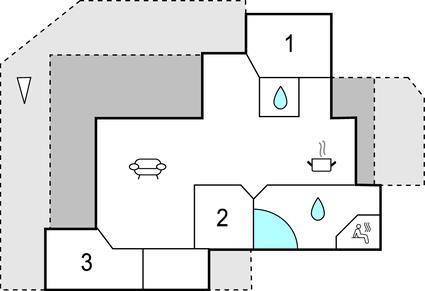 Badeværelse (nr. 1) - WC. Varmt og koldt vand. Håndbruser