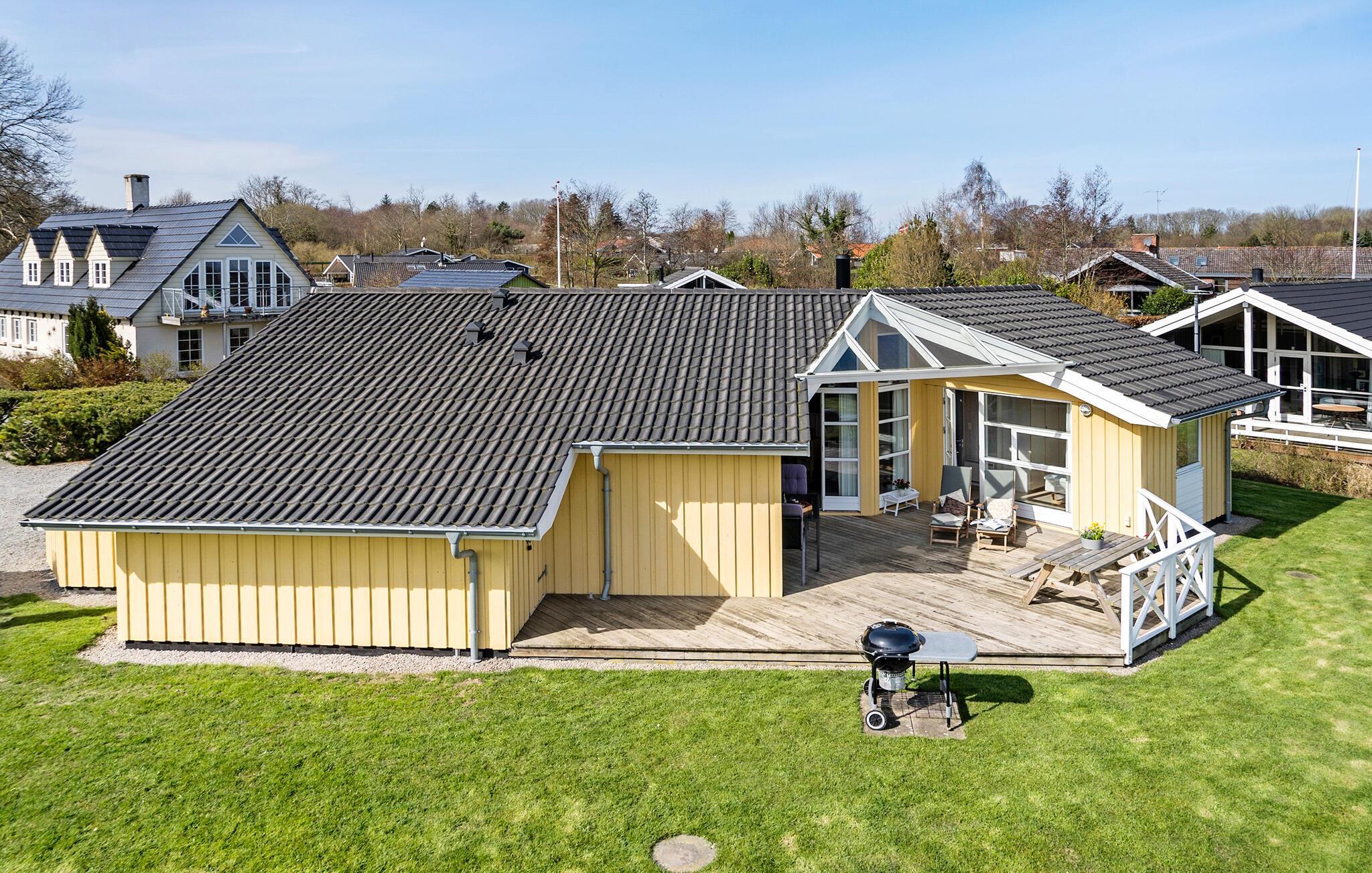 Dette flotte sommerhus ligger i det attraktive Bellevue område med panoramaudsigt over vandet. Huset ligger i et naturskønt område med kun 125 m til stranden. Det indeholder en dejlig lys stue, et pragtfuldt badeværelse med spabad og sauna, endvidere er der et gæstetoilet. Huset har to terrasser, hvoraf den ene er overdækket med glas og med varme. De fire soveværelser støder ikke op til hinanden. Mommark Marina ligger blot 1 km fra huset. Her er en hyggelig, maritim atmosfære. Marinaen har et godt spisested, der benytter lokale råvarer af høj kvalitet. Desuden er der en dejlig børnevenlig badestrand. På havnen er der mulighed for at leje joller til fiskeri i et af Danmarks bedste fiskevande. Husets beliggenhed giver muligheder for både naturoplevelser og badeliv. Endvidere er der et væld af historiske oplevelser og byliv indenfor rækkevidde. Oplevelsesparken Universe er et besøg værd, hvilket er en oplevelse for både store og små. Det er vigtigt at afsætte god tid til af besøge oplevelsesparken.