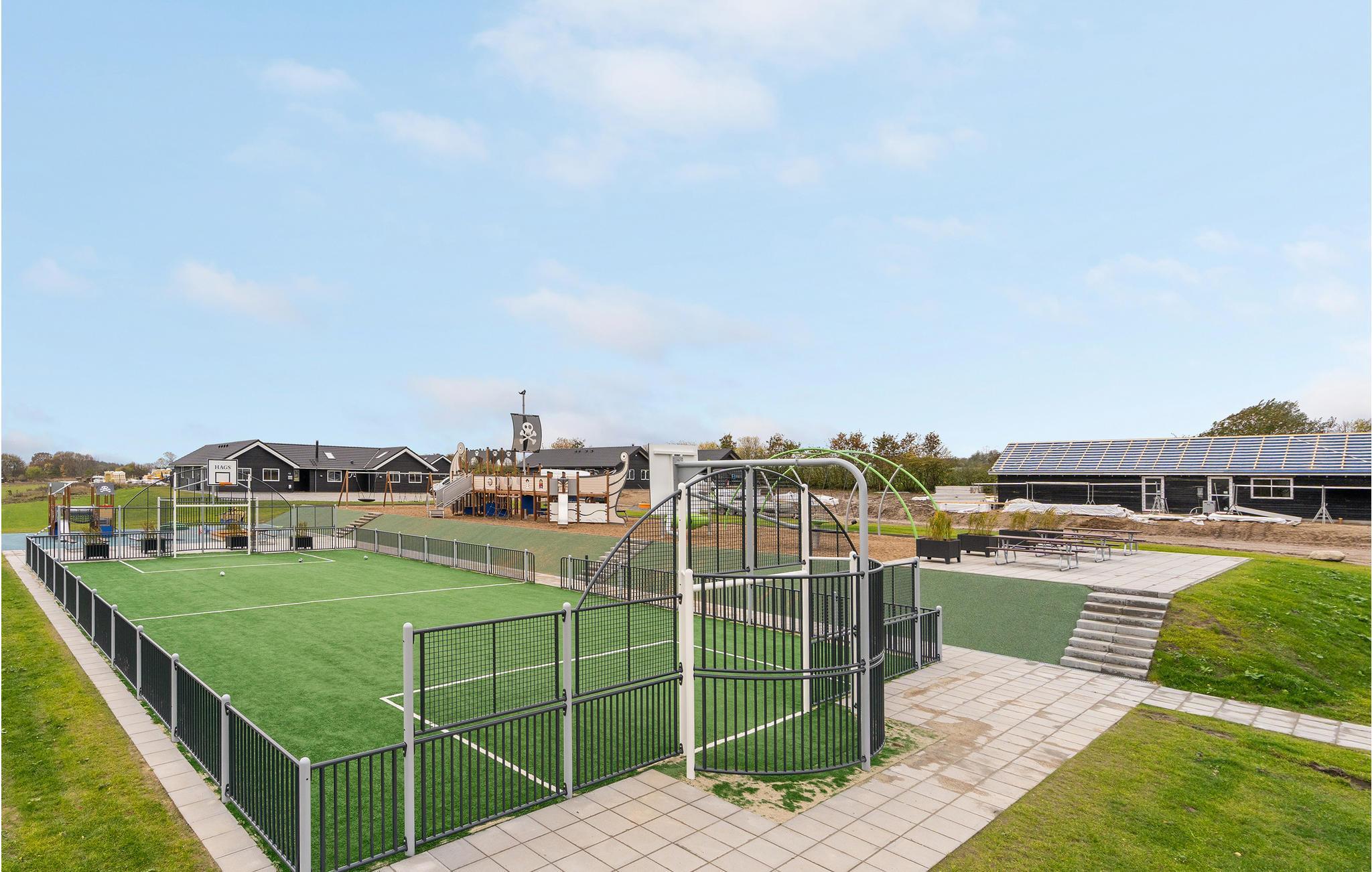 Stort moderne feriehus med indendørs pool, sauna og legeplads, kun 600 m fra stranden ved Mommark Strand.