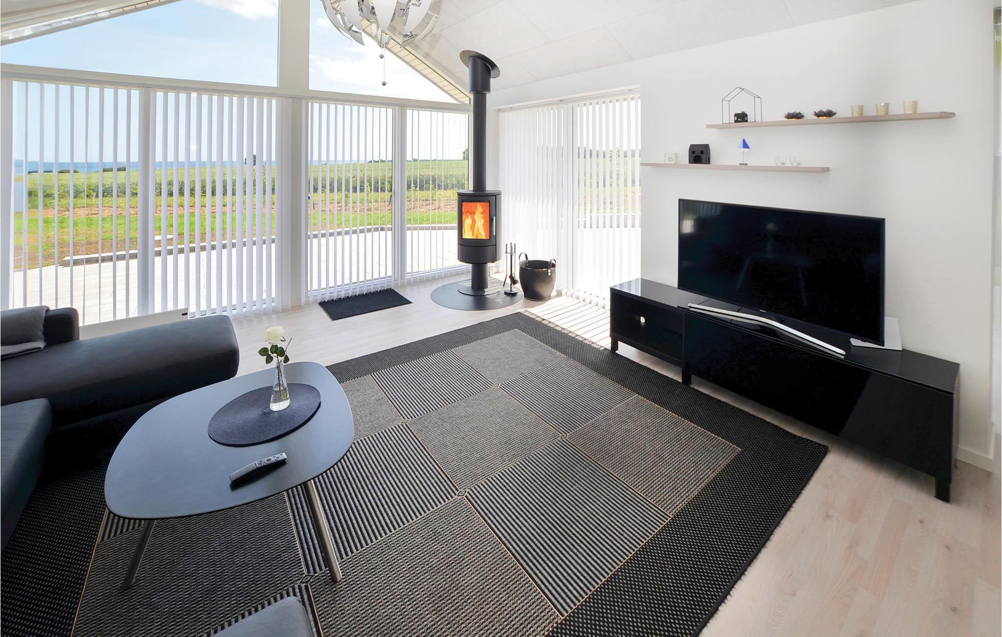 Dejligt feriehus med panoramaudsigt over havet og markerne ved Mommark Strand, perfekt til afslapning og naturoplevelser.