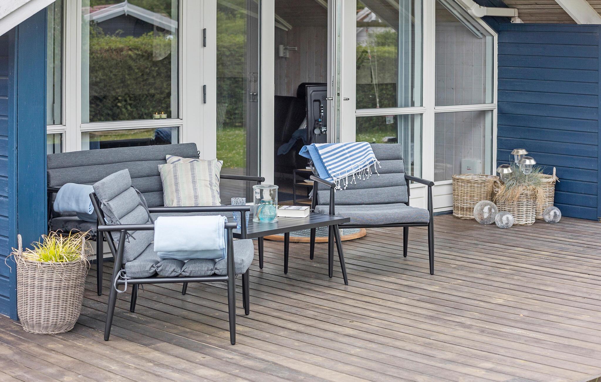 Udenfor er en del af den store terrasse overdækket, så I kan nyde den friske luft selv i skiftende vejr. Hold grillaftener for hele familien og lad børnene lege i haven.