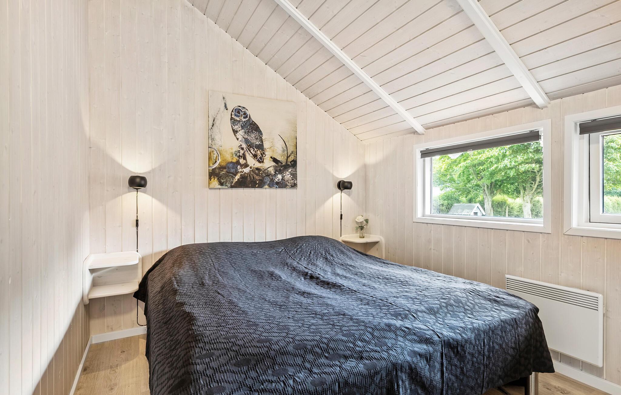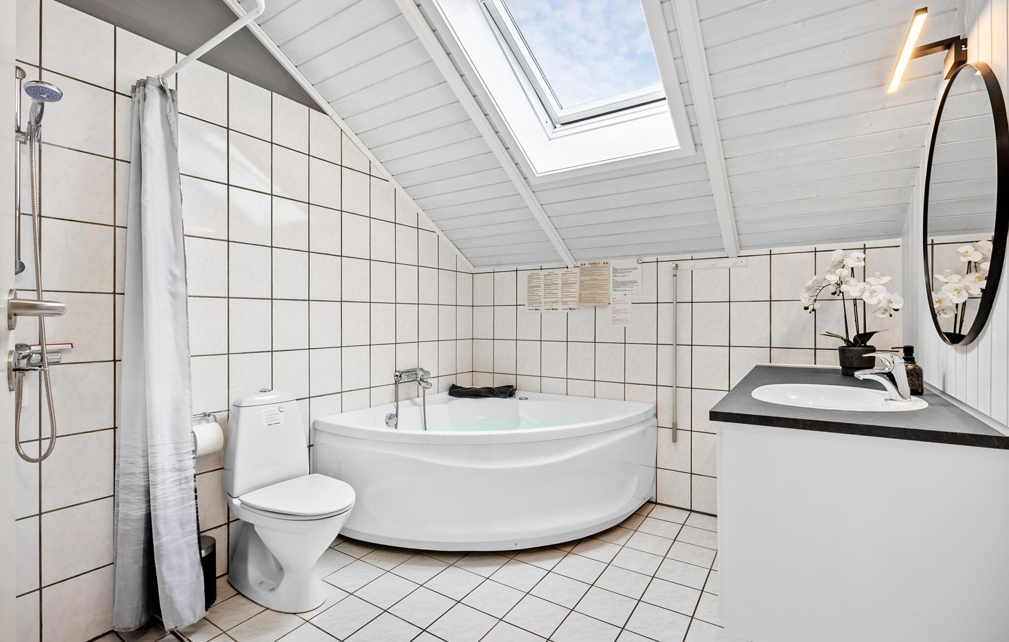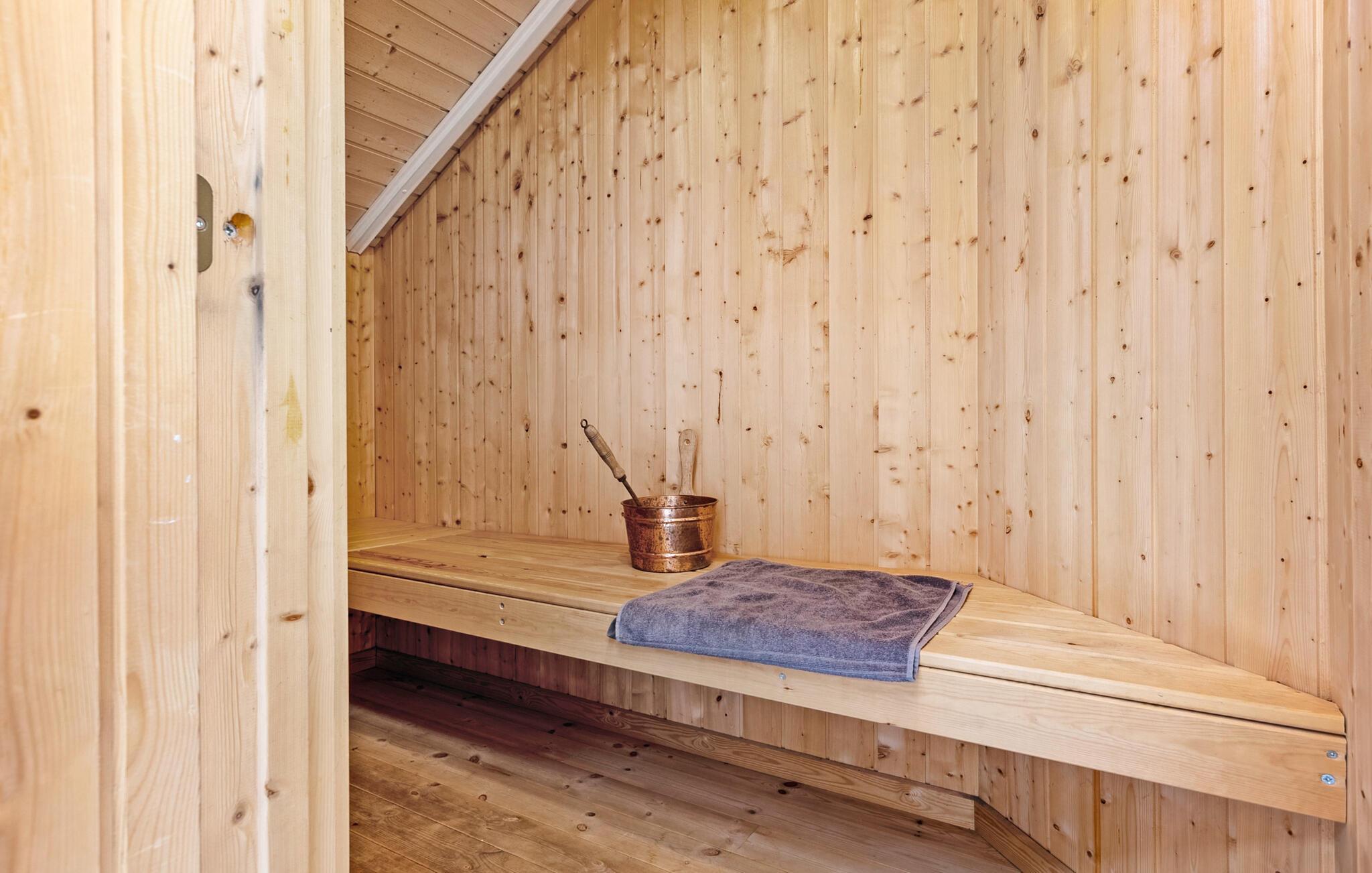Dette smagfulde feriehus venter på jer i rolige omgivelser i Syddanmark. Den hyggelige atmosfære lægger op til at starte dagen i fred, måske med en afslappet morgenmad ved det rummelige spisebord. Stuen med brændeovn, TV, spisebord og komfortabelt sofahjørne er det perfekte sted at tilbringe hyggelige timer. Se en film, lyt til musik eller nyd blot den blafrende ild. Efter en dag ved vandet eller i naturen kan I slappe af i saunaen eller det afslappende spabad.