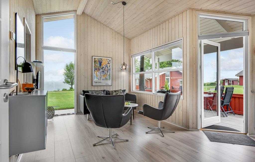 Hyggeligt sommerhus ved Mommark Strand med panoramaudsigt over vandet og tæt på strand, havn og natur.