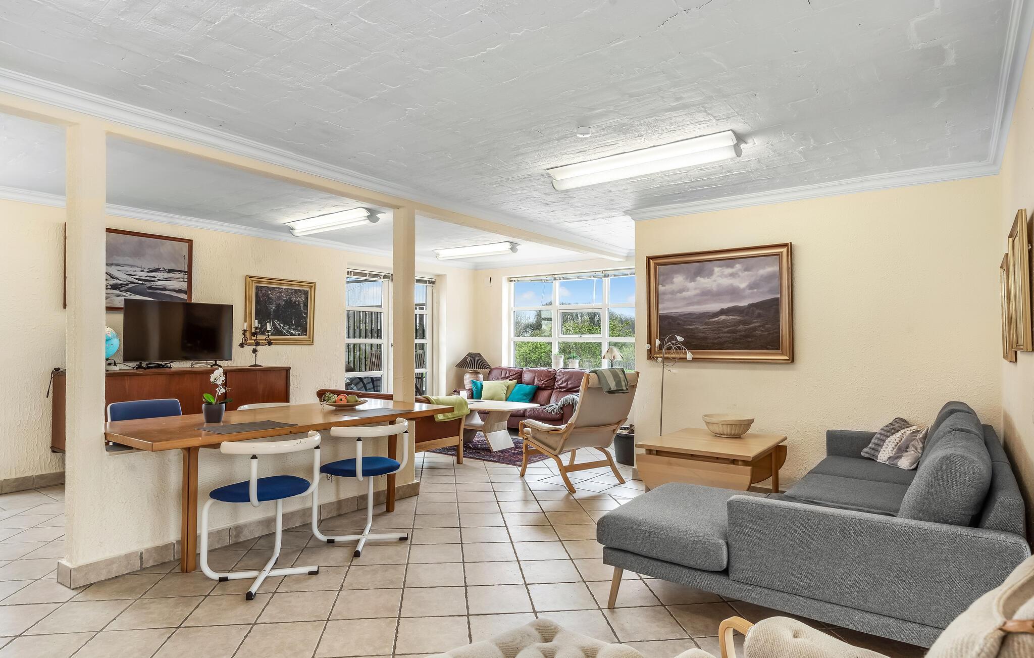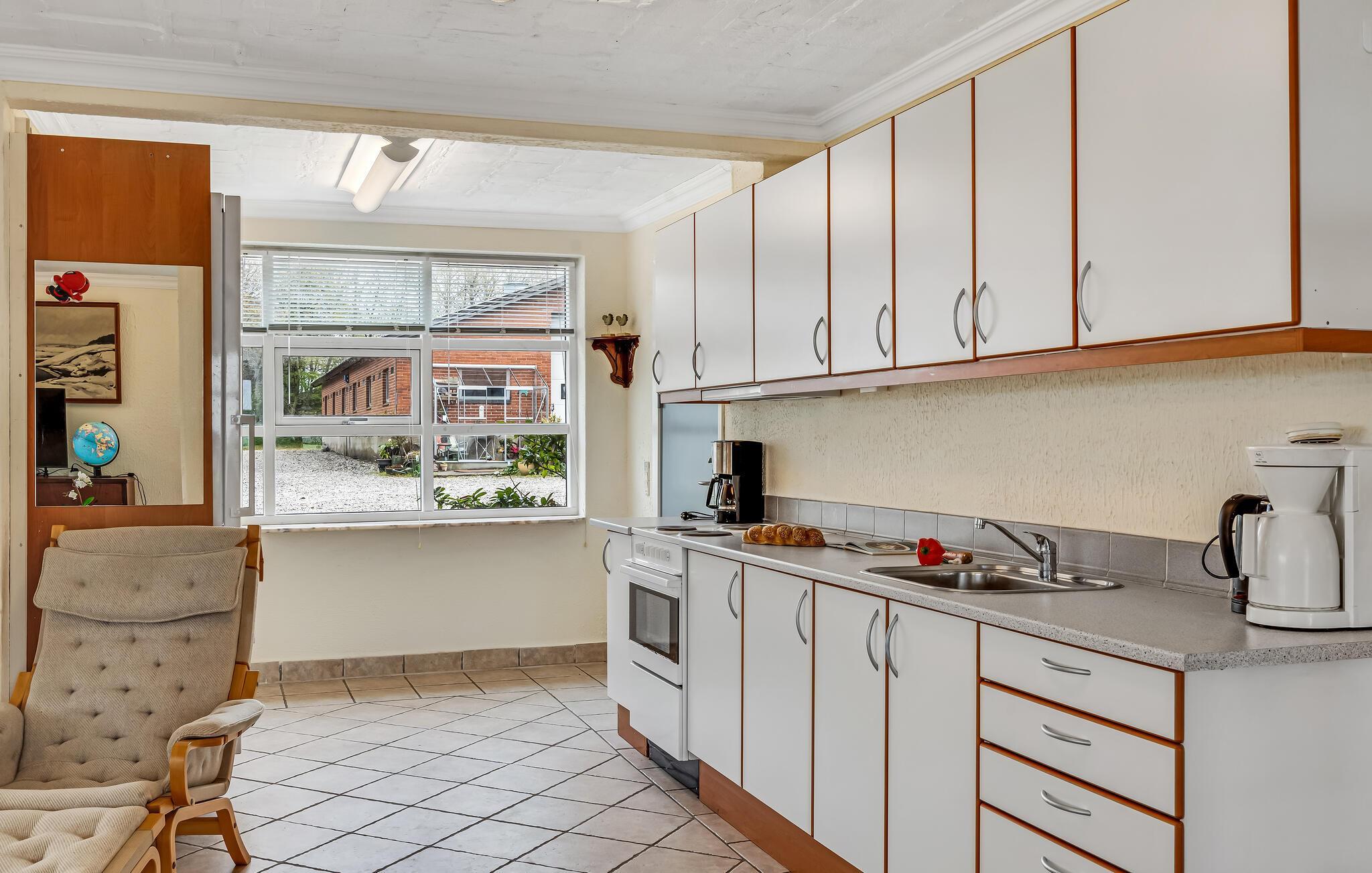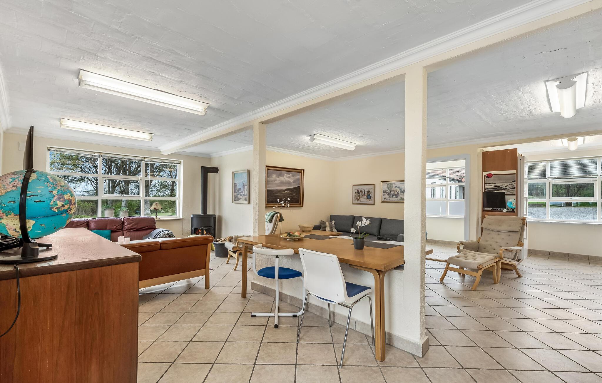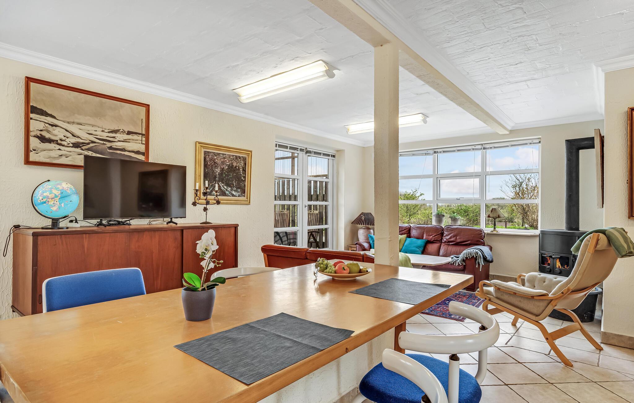 Med sine lyse rum, karakteristiske loftsbjælker og smukke klinkegulve indbyder lejligheden til afslapning i et roligt miljø tæt på naturen. Her inviterer flere hyggelige siddegrupper til at slå sig ned og nyde tiden sammen. Tænd op i brændeovnen, som spreder hygge, og planlæg næste dags udflugter, for omgivelserne har meget at byde på.