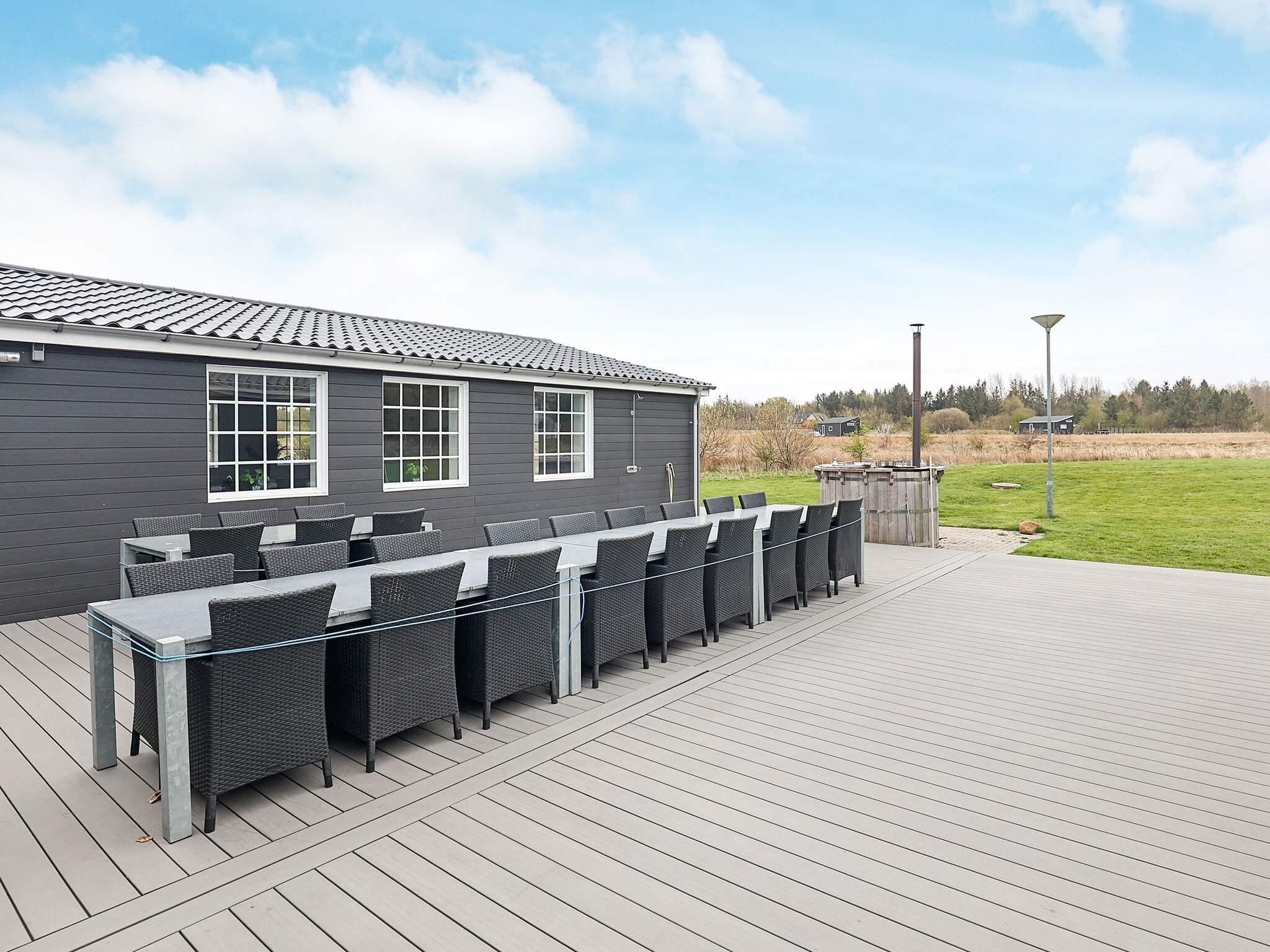 På den store grund er der rigelig plads til at udfolde sig med boldspil eller lignende. Desuden er der to store terrasser med gasgrill, tre terrassevarmere, udendørs bruser og renseplads til fisk. Der er god plads til solbadning samt afslapning.