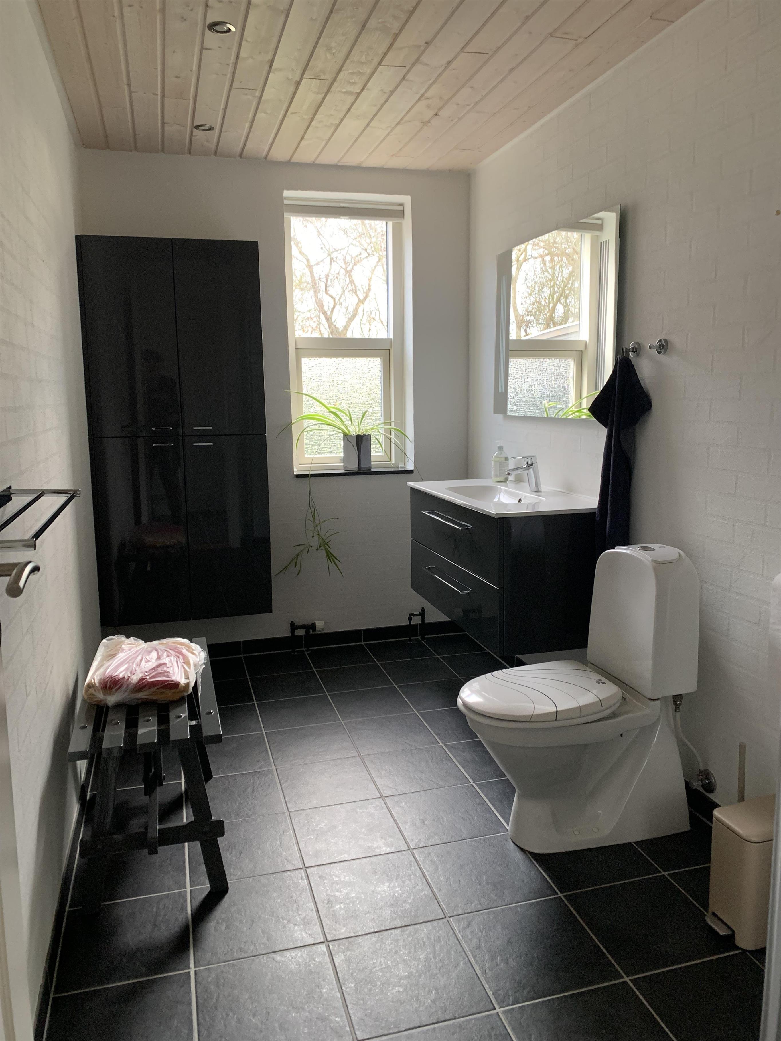Badeværelset er udstyret med bruser og gulvvarme, så komforten er i top.