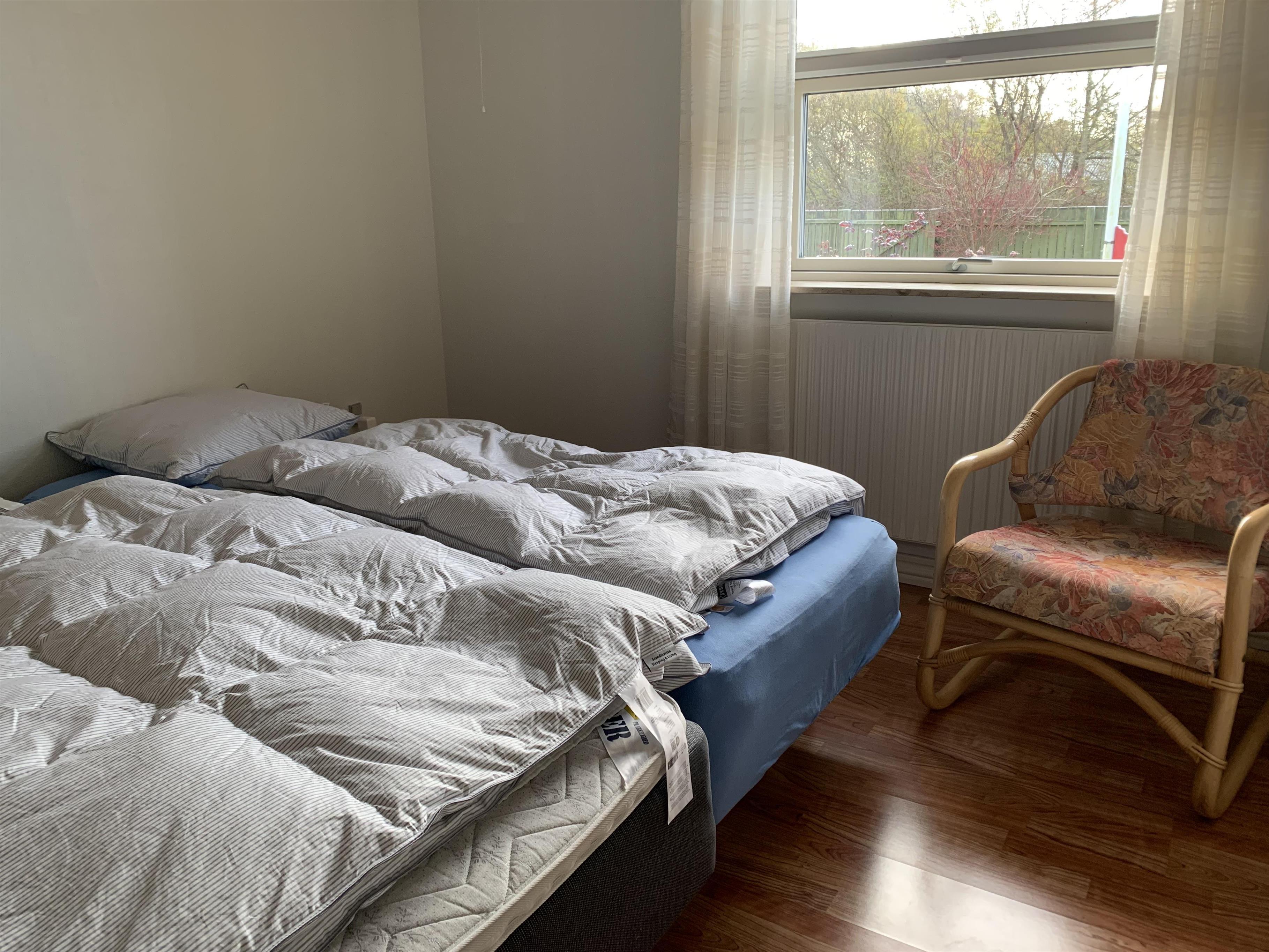 Huset rummer tre soveværelser: ét med dobbeltseng, ét med to enkeltsenge og ét med en enkeltseng. Derudover finder du en hyggelig stue, hvor familien kan samles, samt et lyst køkken med spiseplads.