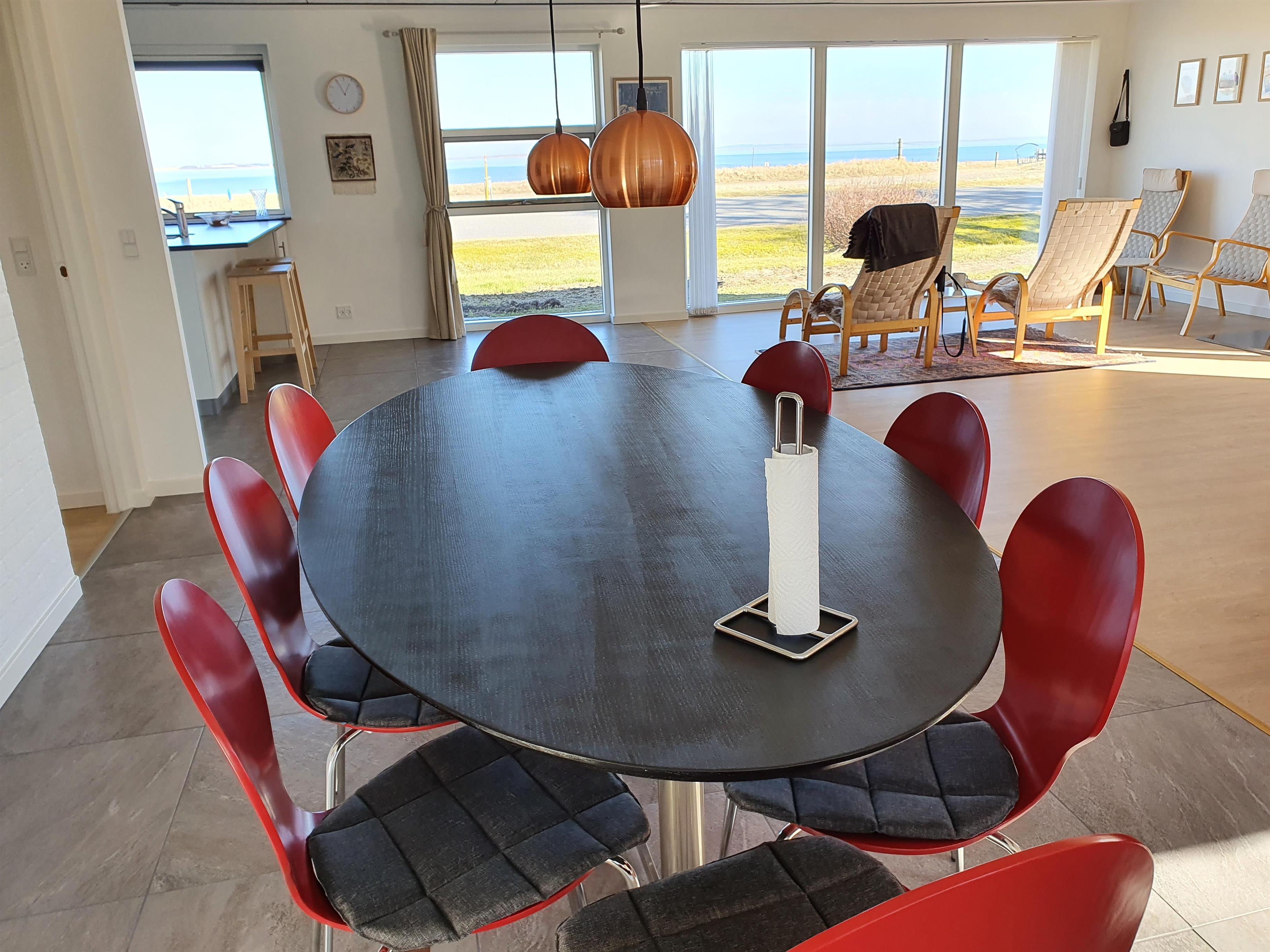 Dejligt hus på 150m2 tæt på fjorden og med panoramaudsigt over fjorden. Huset er nyrenoveret i 2020 og 2021 og fremstår lyst og venligt. Kombineret køkken og stue med brændeovn og her kan man nyde udsigten i fulde drag. Der er 3 værelser, 2 med hver deres db. seng og 1 værelse med 1 db. seng og 1 bred køjeseng, så der er plads til 8 personer. Der er gæstetoilet i huset. Stor skøn naturgrund med 2 terrasser med havemøbler. Der er tv i stuen med chrome cast.