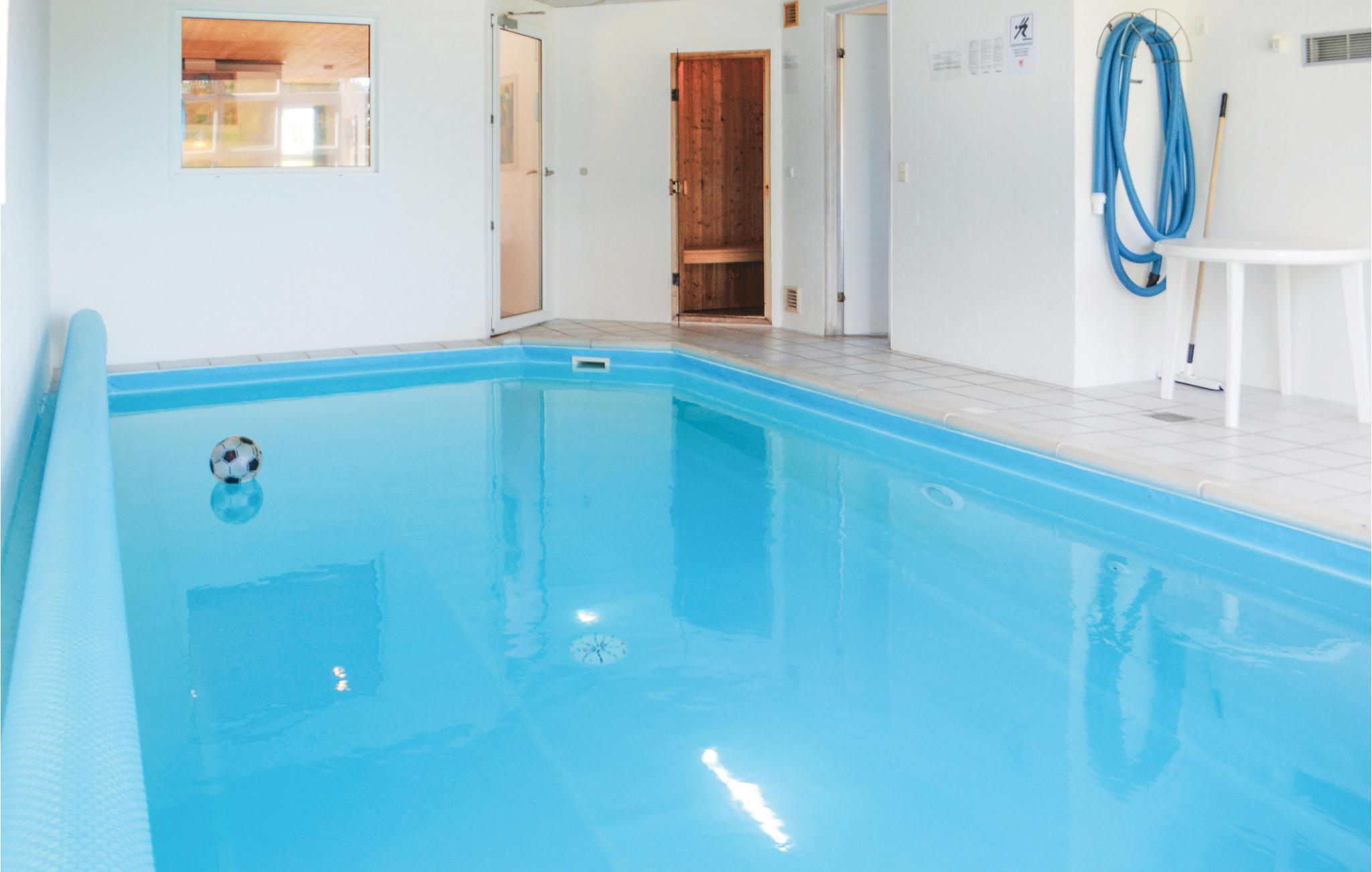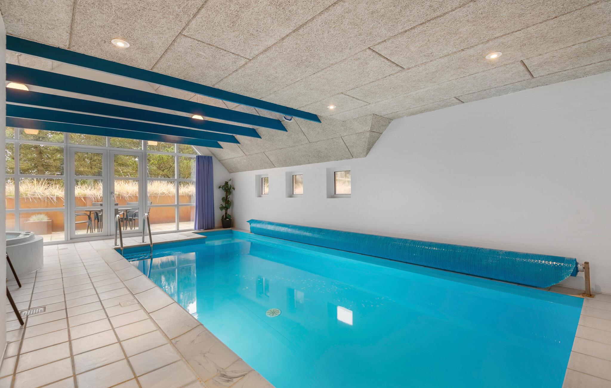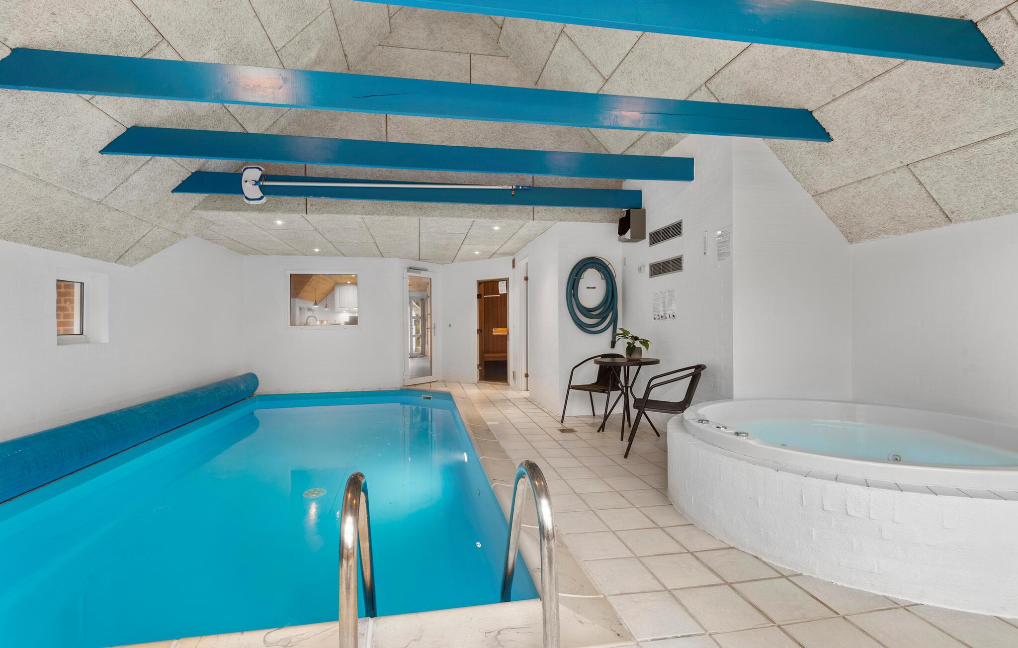 Lækkert sommerhus i Mosevrå med pool, spabad, sauna og aktivitetsrum tæt på Blåvand Strand.