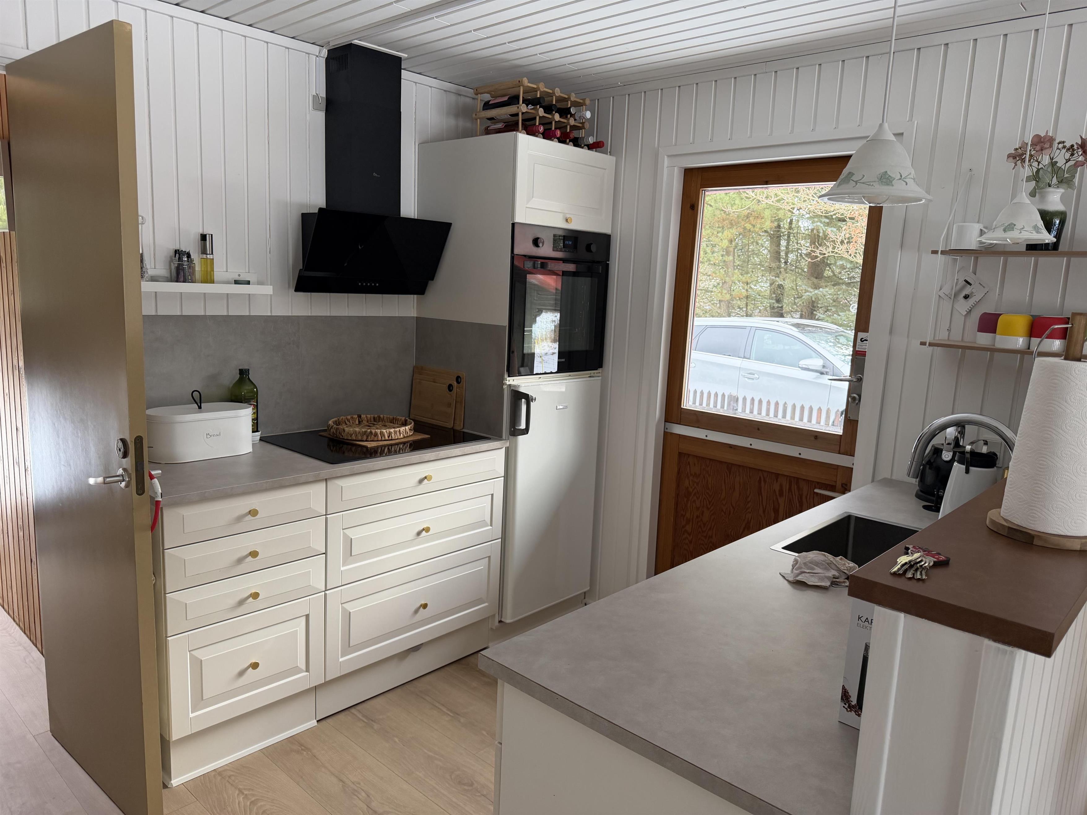 Hjerterummet er den dejlige stue med spiseplads og det lyse åbne køkken. Her kan I lave jeres yndlingsretter, som I sammen kan nyde ved spisebordet, og opvasken klarer opvaskemaskinen. Rummet er indrettet i varme, rolige nuancer, der sammen med den smukke brændeovn, skaber den rette hyggelige ferieatmosfære. Her er plads til nærværet, hyggelige spilleaftner eller put jer i sofaen med kaffe og en god bog.
