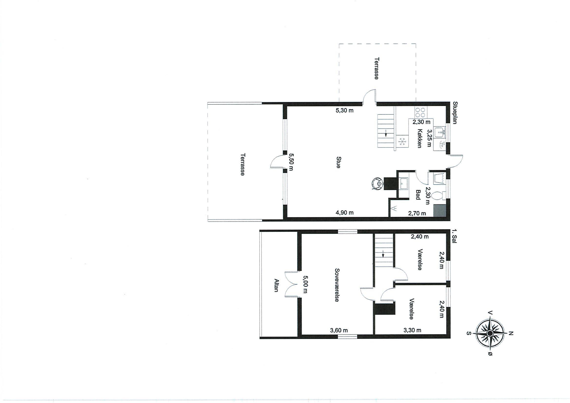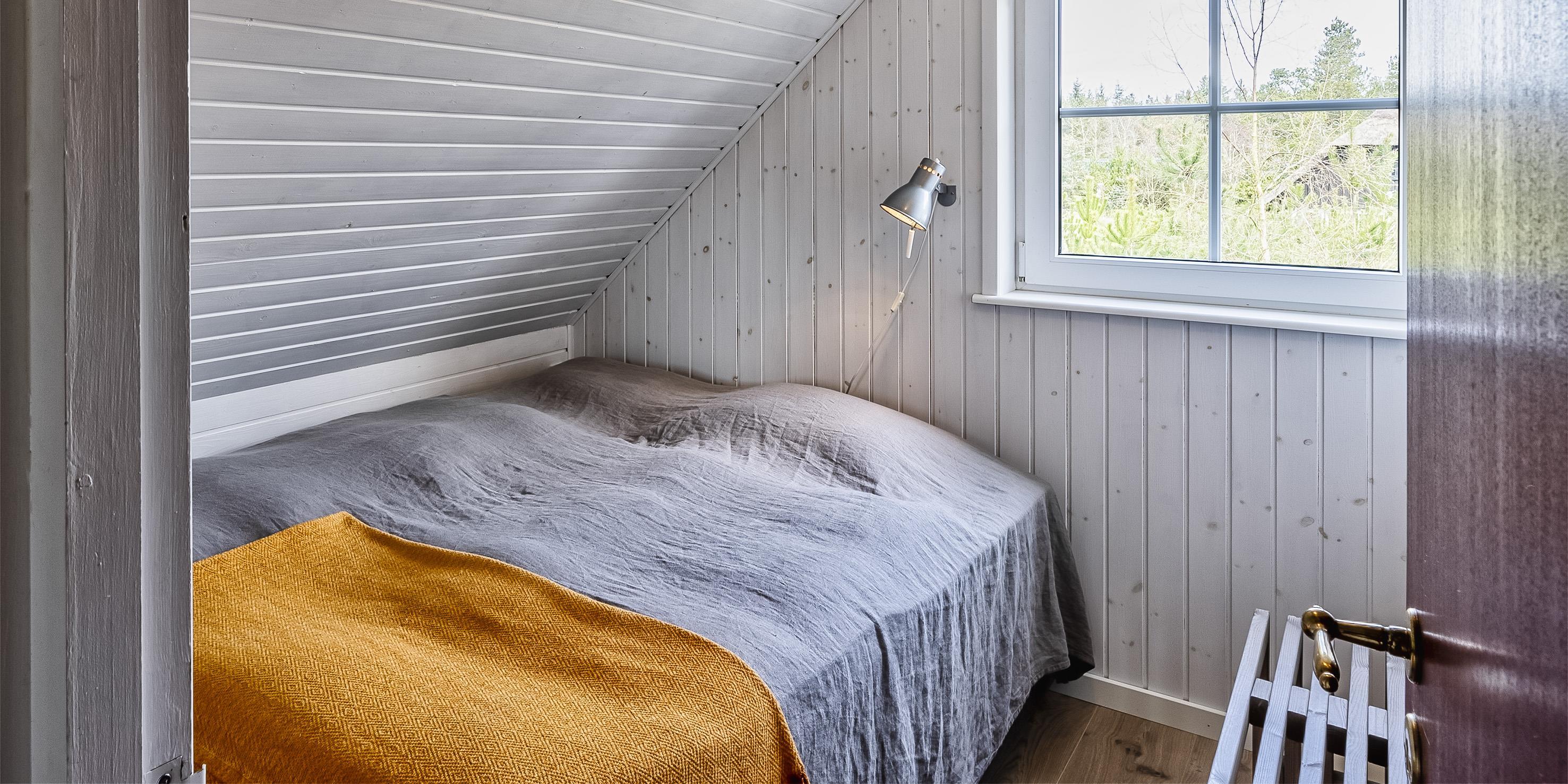Husets første sal råder over 3 gode soveværelser: DS + DS + DS, hvoraf 2 er med hver en ¾ dobbeltseng (140x200) og et soveværelse med én dobbeltseng (180 x 200). På første sal er der en balkon mod syd med hav kig over Ho bugt.