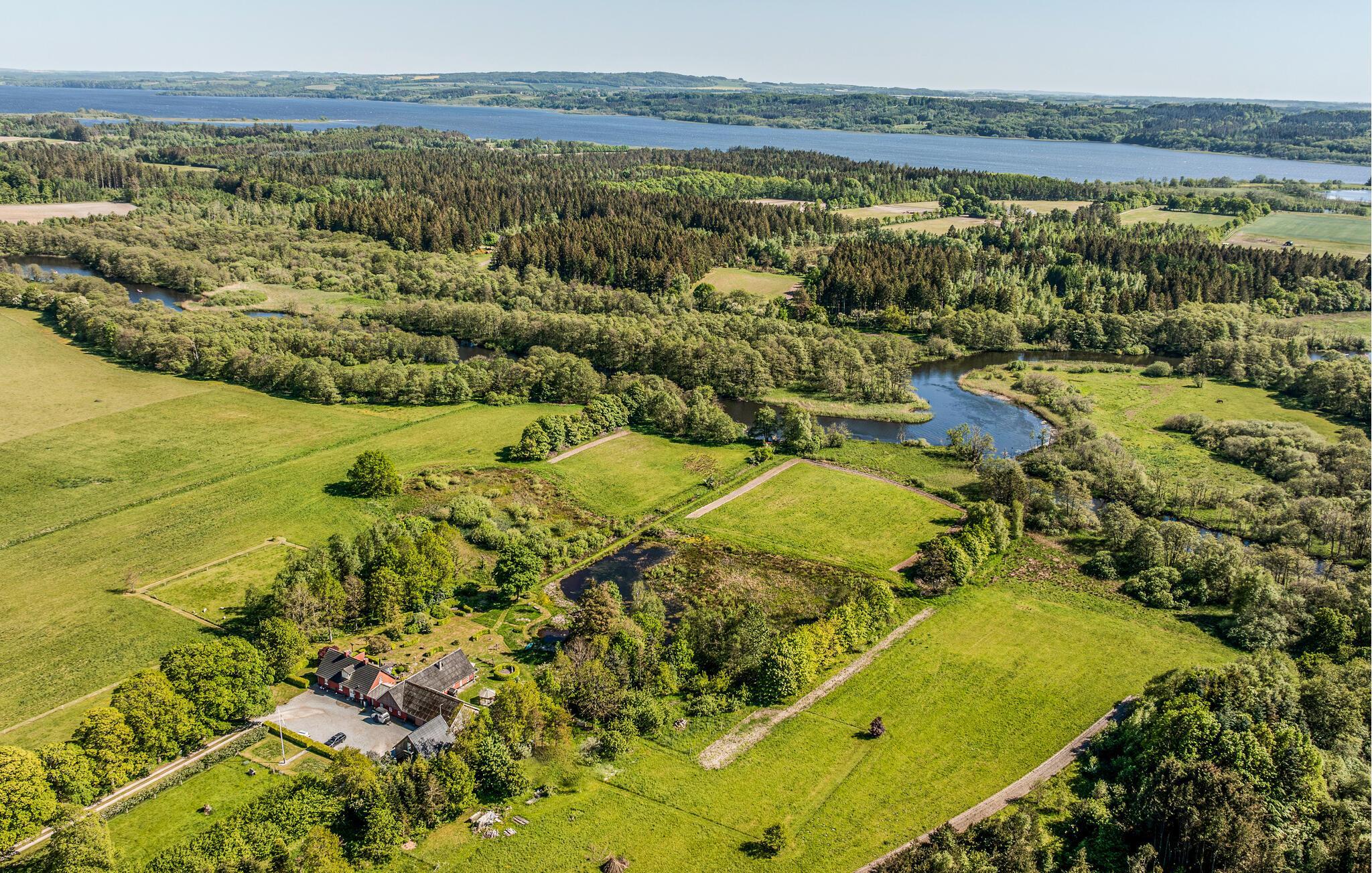 Oplev en charmerende tidligere landejendom ved Mossø med egen båd og stor have til afslapning og leg.