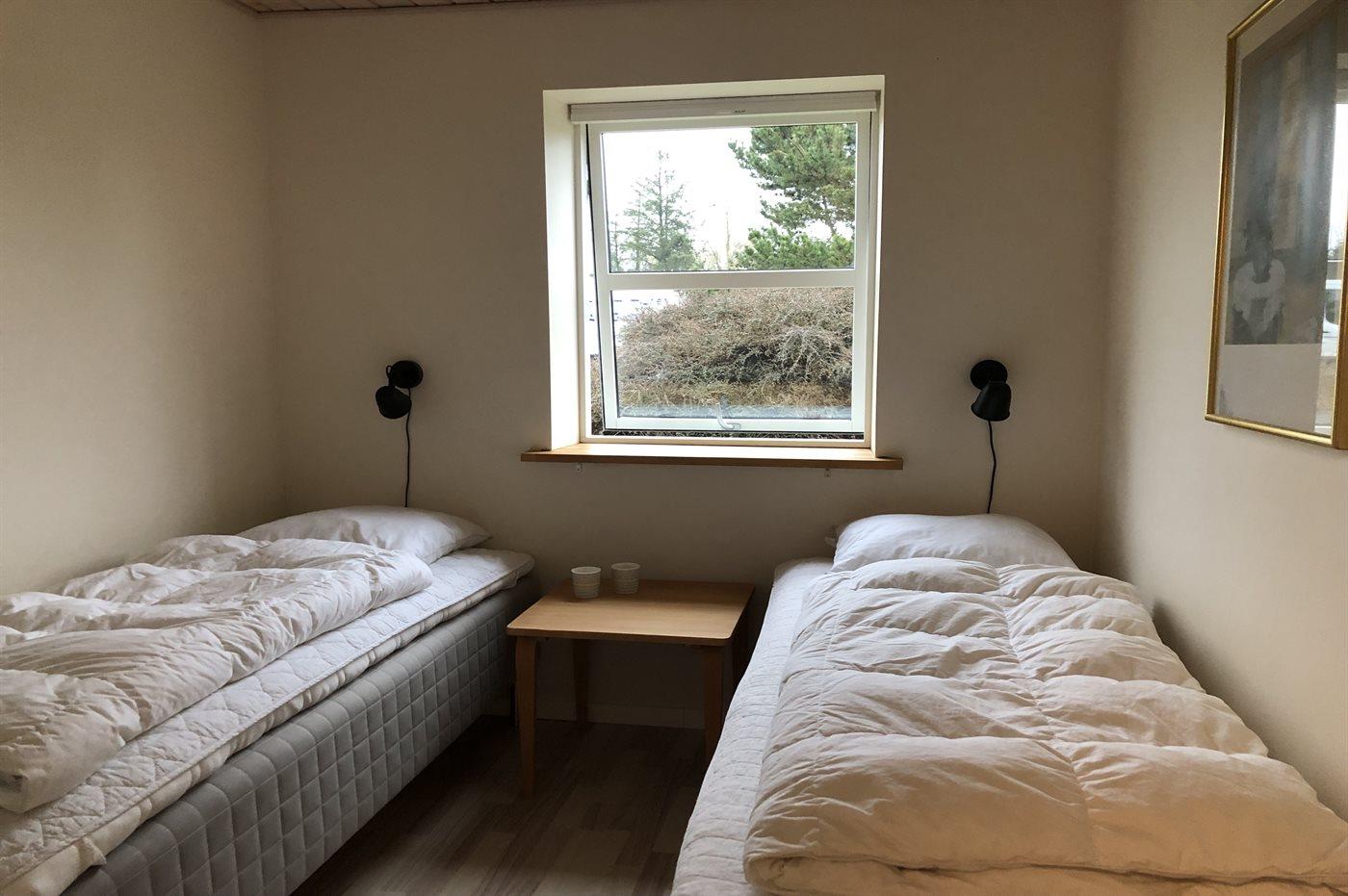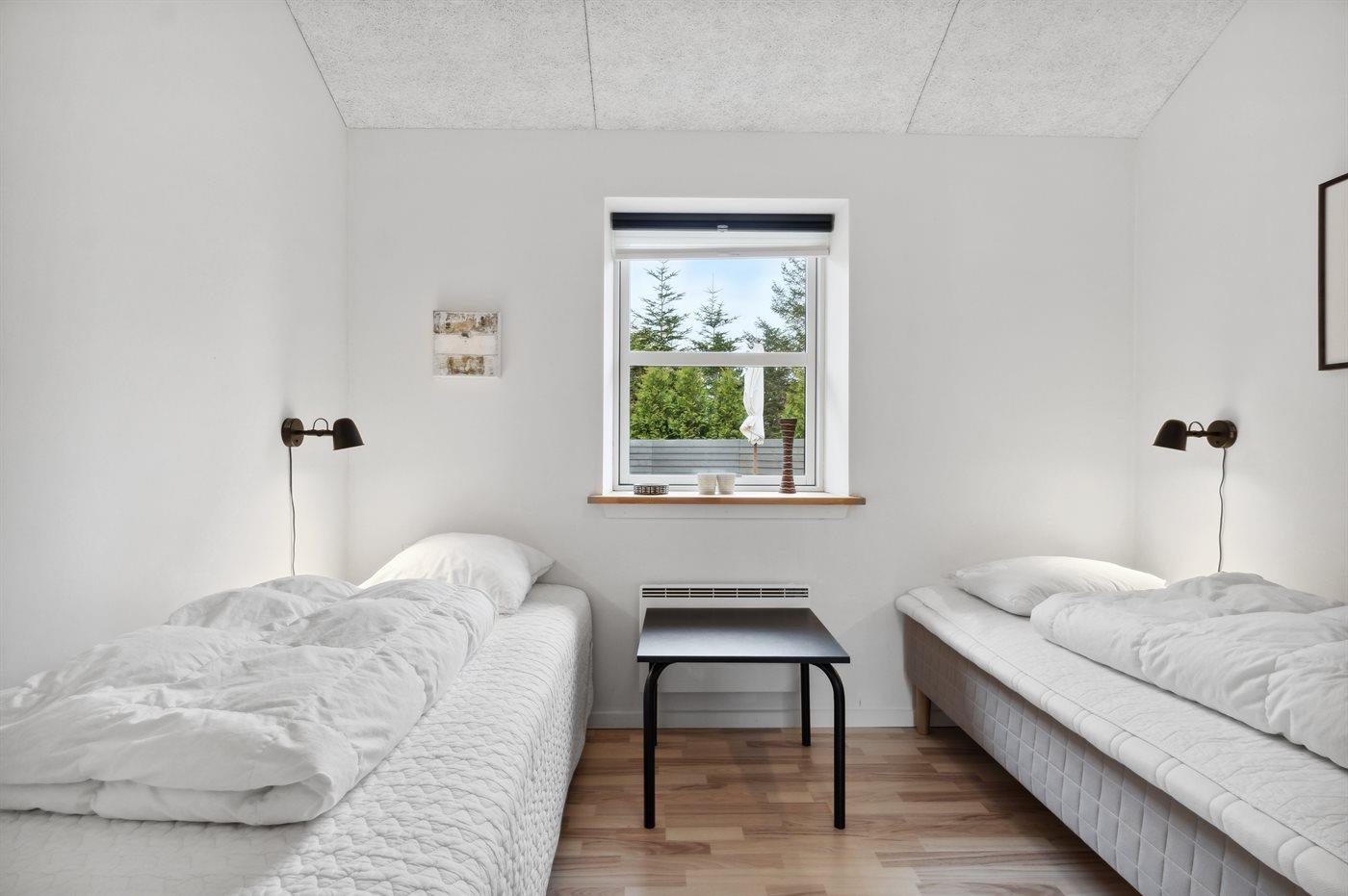 Der er i alt 4 soveværelser. Sovepladserne fordeler sig på: 2 sovepladser i dobbeltseng. 4 sovepladser i enkeltsenge. 2 sovepladser i sovesofa (dobbelt). Derudover er der 1 stk. barneseng.
