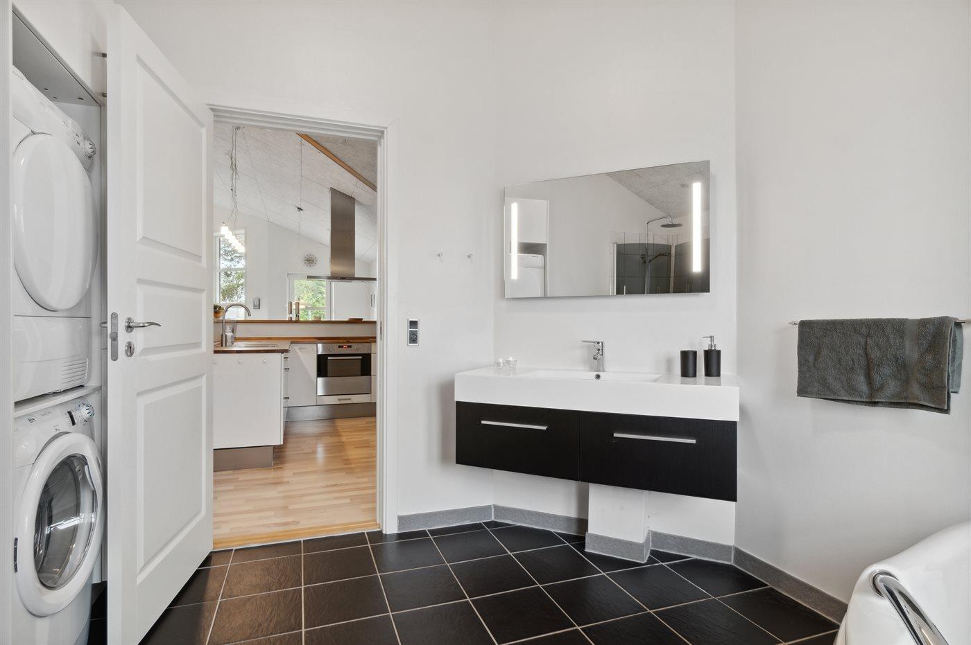 Der er 2 badeværelser med bruseniche og 2 toiletter. Der er gulvvarme på 2 badeværelser.