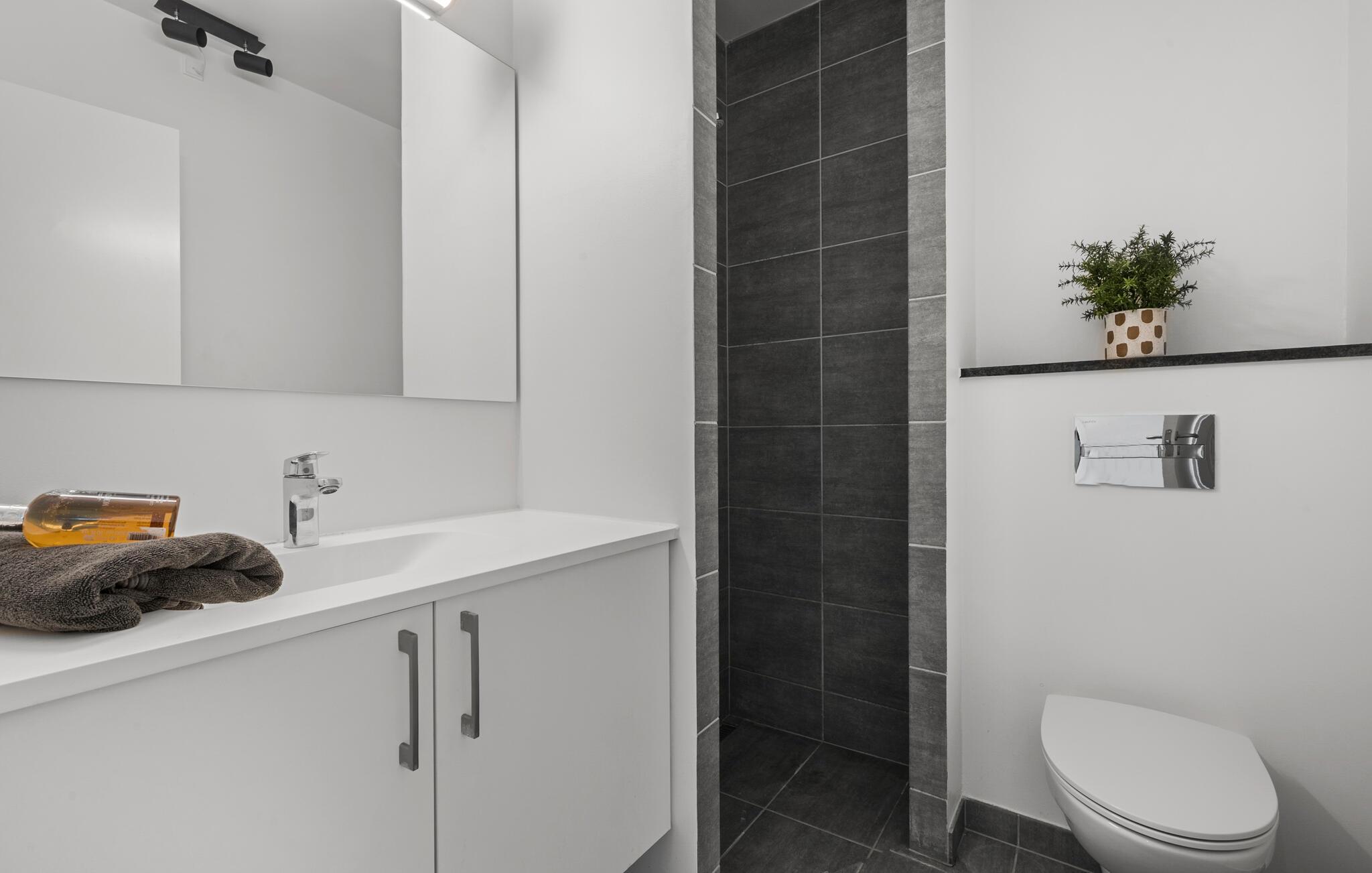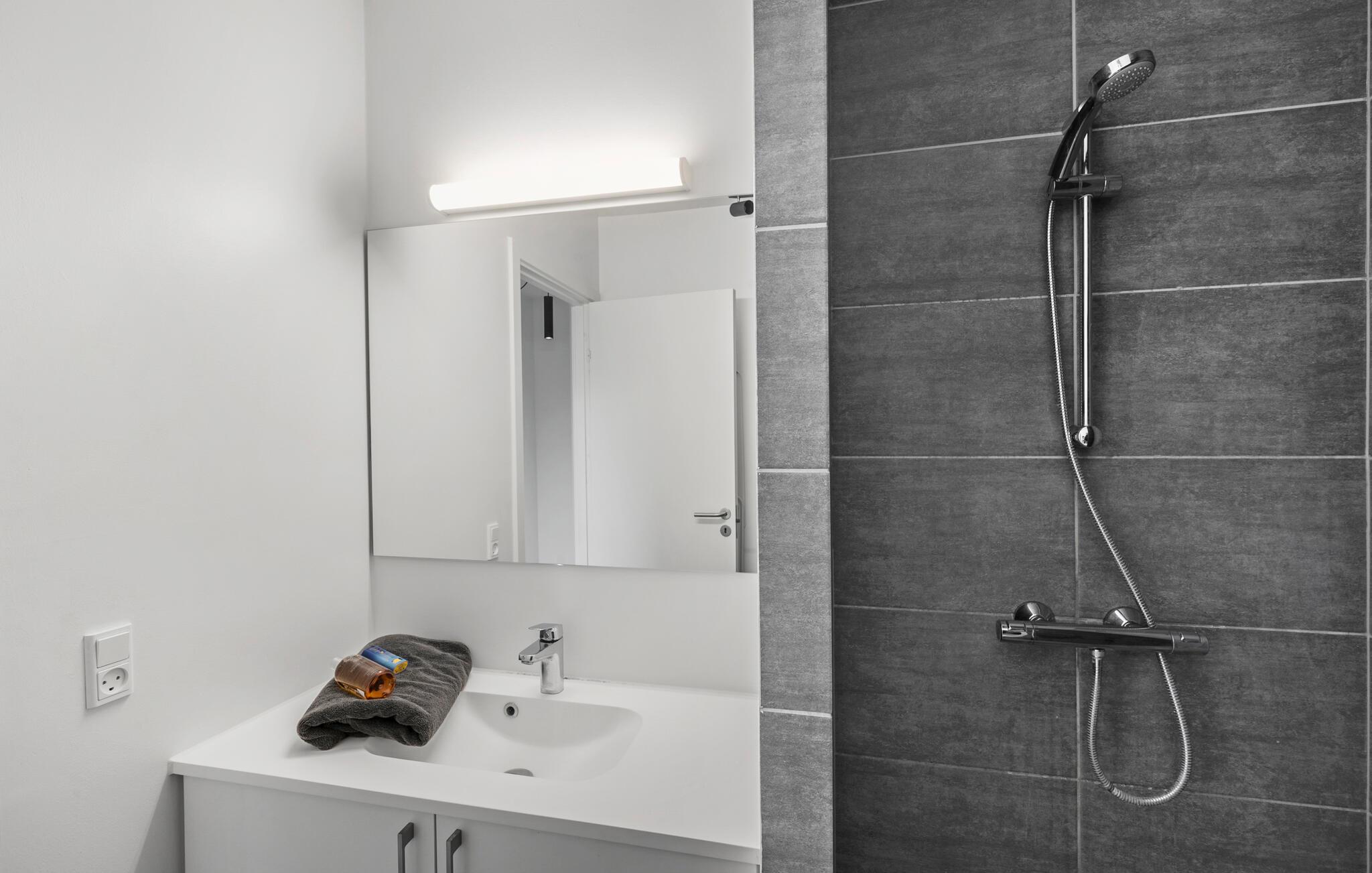 Tilbring jeres næste ferie direkte ved vandet i denne komfortable og moderne ferielejlighed.