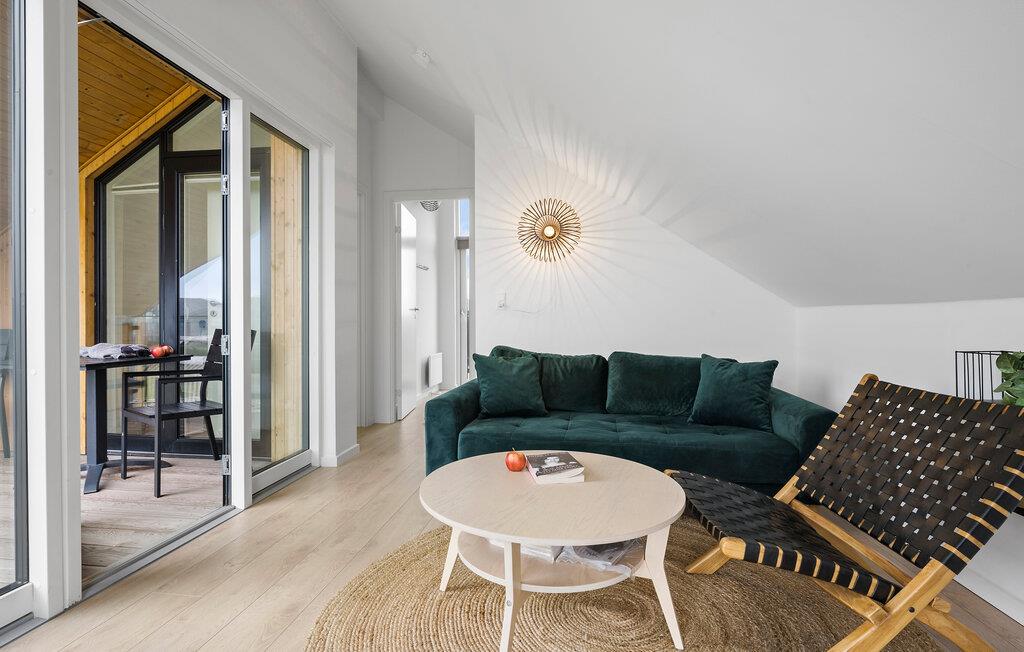 Glæd jer til en særlig ferie i Vestsjælland, hvor denne førsteklasses ferielejlighed venter på jer. Den strækker sig over to etager og byder på en smuk udsigt over Storebælt. Ud over en god planløsning med elegante soveværelser og indbydende fællesområder finder I en veludstyret bolig, der lader jer føle jer hjemme. Nyd den lyse atmosfære, læn jer tilbage, og slap af.