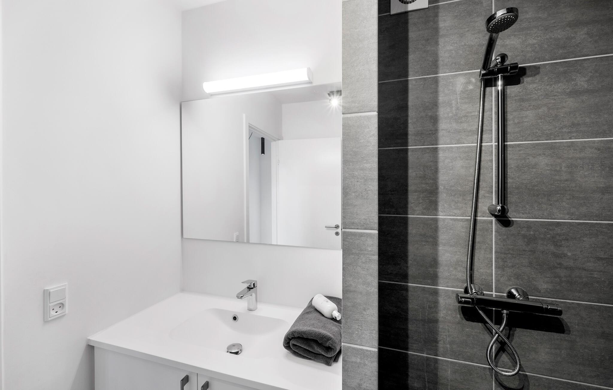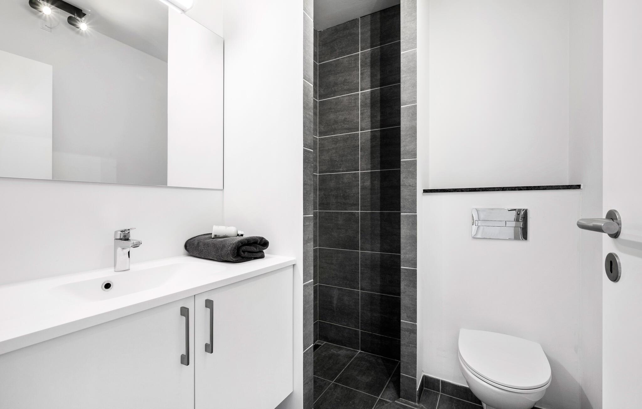 Tilbring jeres næste ferie direkte ved vandet i denne komfortable og moderne ferielejlighed.