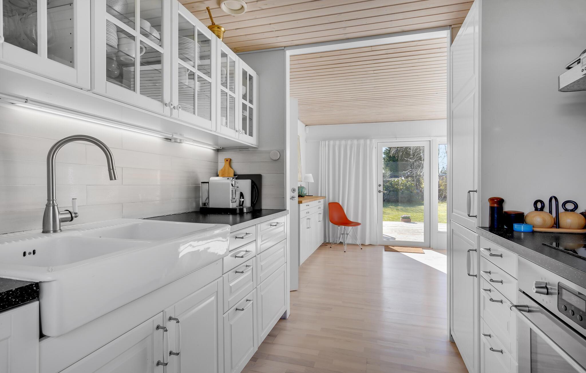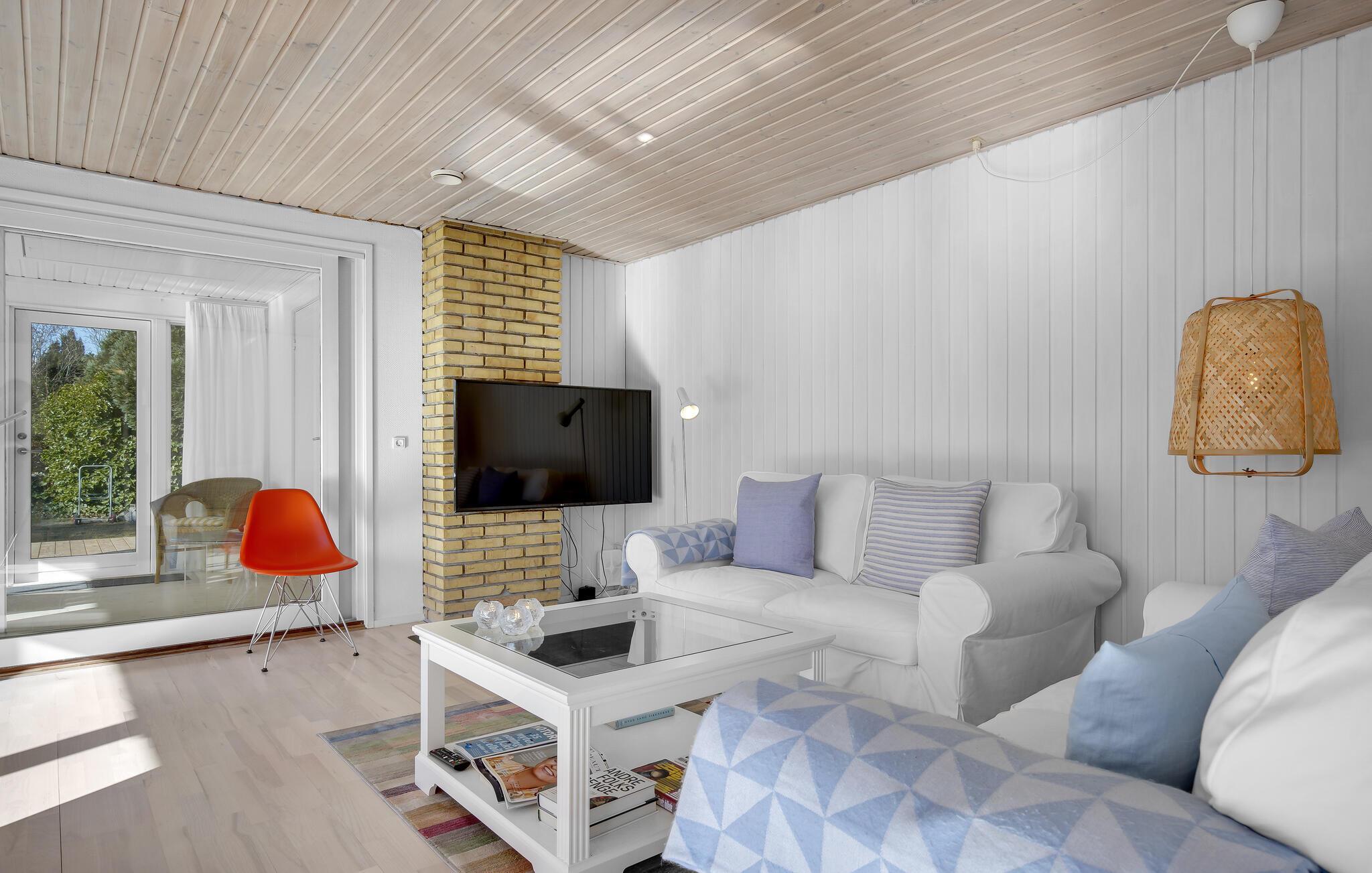 Træd indenfor og føl jer straks hjemme i de lyse, træbeklædte rum i jeres indbydende feriehus nær den lange sandstrand ved Munkerup. Tilbered jeres yndlingsretter i det veludstyrede køkken, og nyd dem i den hyggelige spisestue med udsigt til den grønne have. Slap af om aftenen på den rummelige sofa foran den knitrende brændeovn, og tilbring hyggelige stunder med brætspil eller en spændende film.