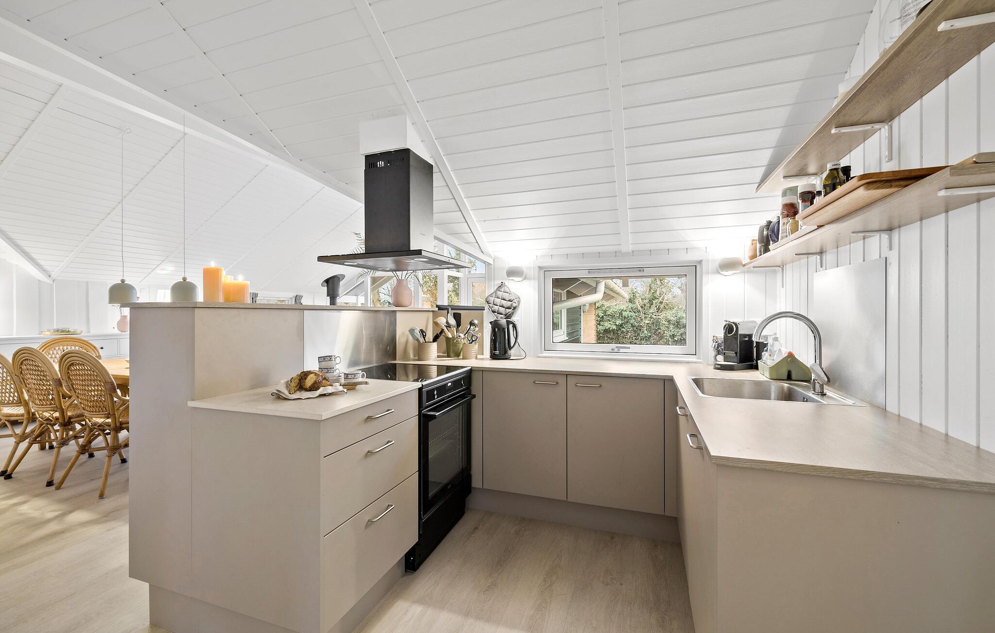 Dette indbydende sommerhus ved Munkerup Strand er et perfekt udgangspunkt for en afslappende ferie i Nordsjælland. Her får I en dejlig base med plads til hele familien og kun en kort gåtur fra stranden. Indenfor venter en stilfuld og komfortabel bolig. Læn jer tilbage i den hyggelige stue efter nogle gode timer i den friske luft. Det veludstyrede køkken gør det nemt at tilberede feriens måltider, og når retterne er klar, kan I samles ved spisebordet og planlægge morgendagens eventyr. Læn jer godt tilbage i saunaen efter en lang dag på farten.