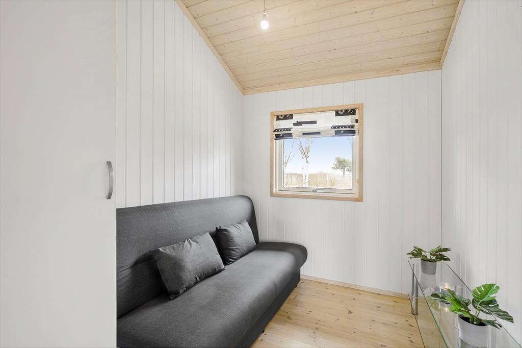 Feriehuset indeholder kombineret køkken og opholdsstue. Køkken med indbygget ovn, kogeplader, opvaskemaskine, mikroovn, køleskab med fryser og gulvvarme. Opholdsstue med udgang til stor terrasse, god spiseplads, brændeovn og tv med Waoo fritidshus tv pakke. Badeværelse med bruseniche og gulvvarme, Bryggers med vaskemaskine. Tre soveværelser, to med dobbeltsenge og et med en dobbelt sovesofa. Huset opvarmes med varmepumpe, brændeovn og elvarme.