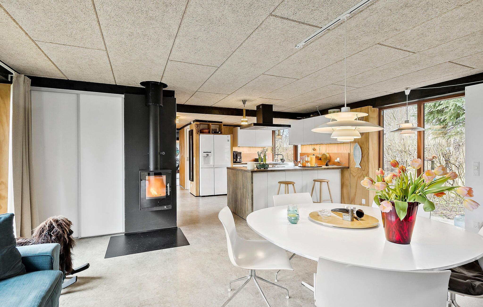 Tag en pause fra hverdagens hektik og rejs med familien til Nordsjælland, hvor I tæt på kysten finder dette skønne hus til en ferie med fred, ro og masser kvalitetstid med dem, I holder af. Indretningen fremtræder yderst charmerende og indbydende med markante træpaneler, varme farver og komfortable møbler, der gør det nemt at komme ned i tempo og bare slappe af. Den åbne stue får et dejligt lysindfald og en god udsigt gennem de store vinduespartier, og i det veludstyrede køkken kan I tage jer god tid til madlavningen, inden I dækker op til den store middag ved spisebordet. Tænd op i brændeovnen og nyd dens varme og knitren, inden I runder aftenen af i sofaen med hver jeres bog eller en god film på tv'et.